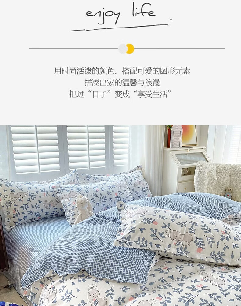 雅鹿小清新秋冬四件套被套ins田园风水洗磨毛被套学生宿舍床上三件套 甜茶萌宠 四件套 床单款 (被套200*230cm)