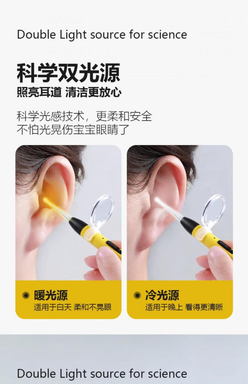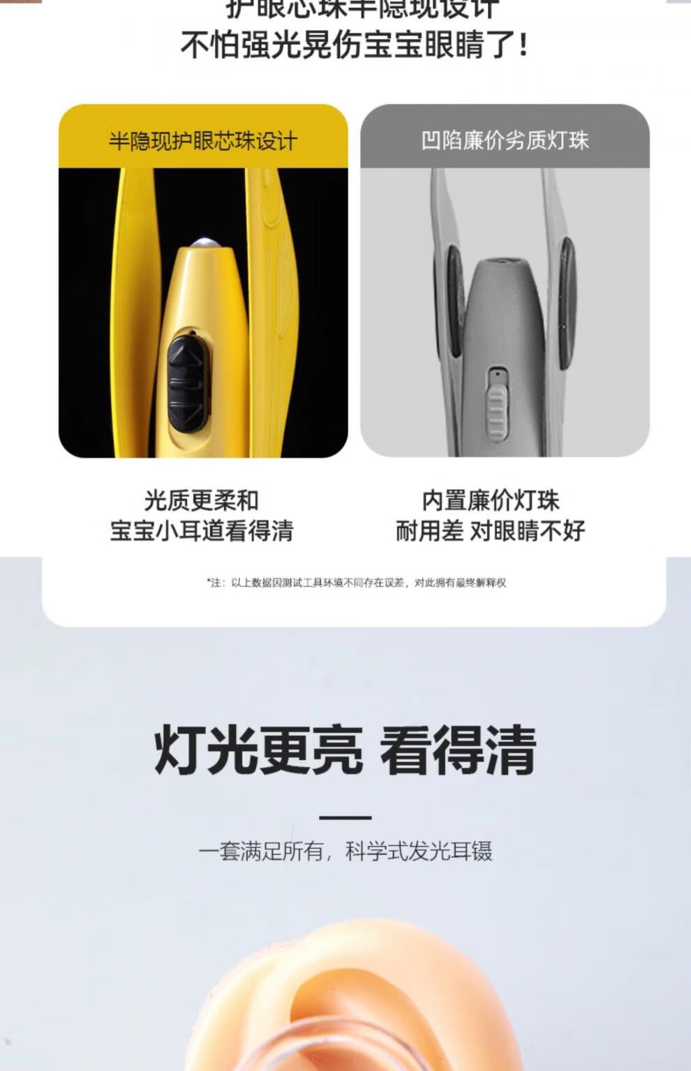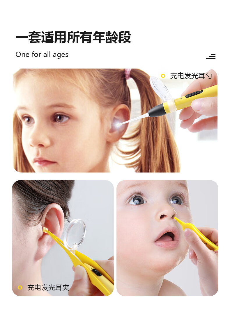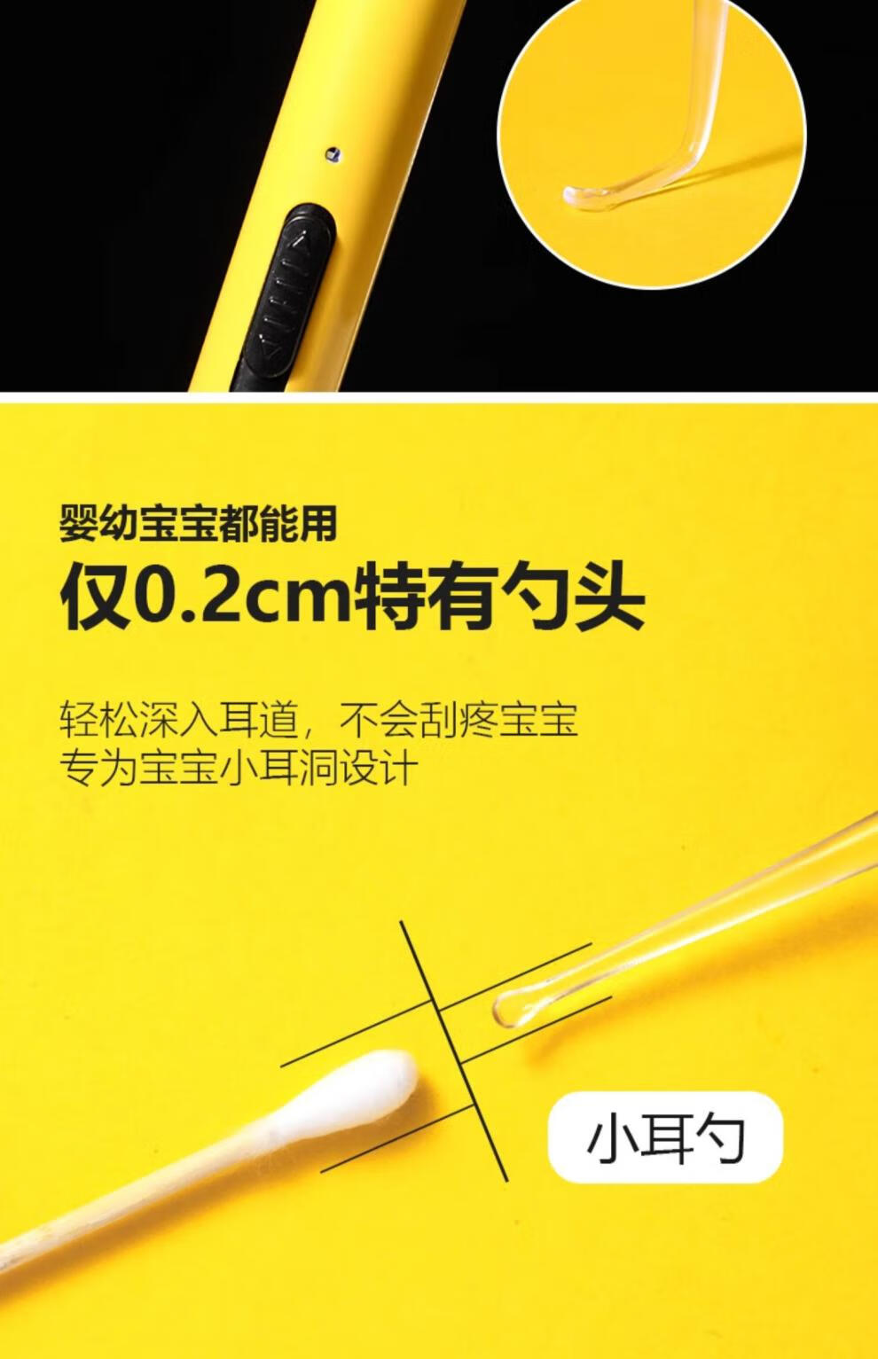 兮儿掏耳勺挖耳勺发光带灯软头宝宝耳屎儿童用挖耳朵安全镊子可视套装 电池款发光耳勺塑料盒【两件套】