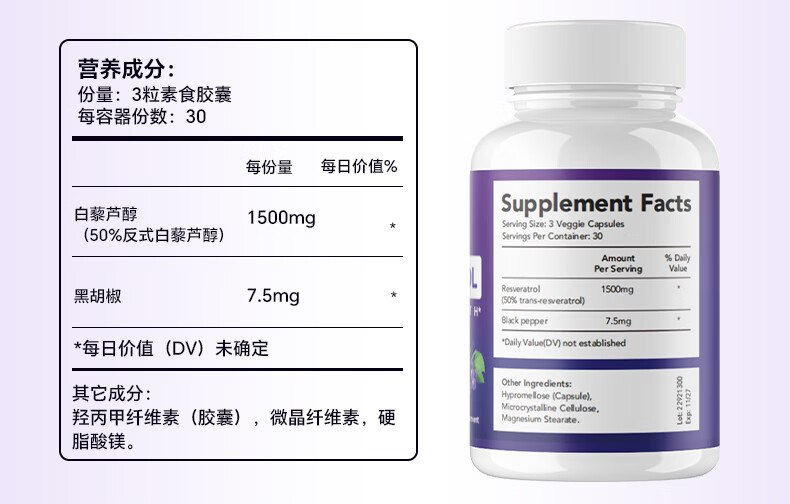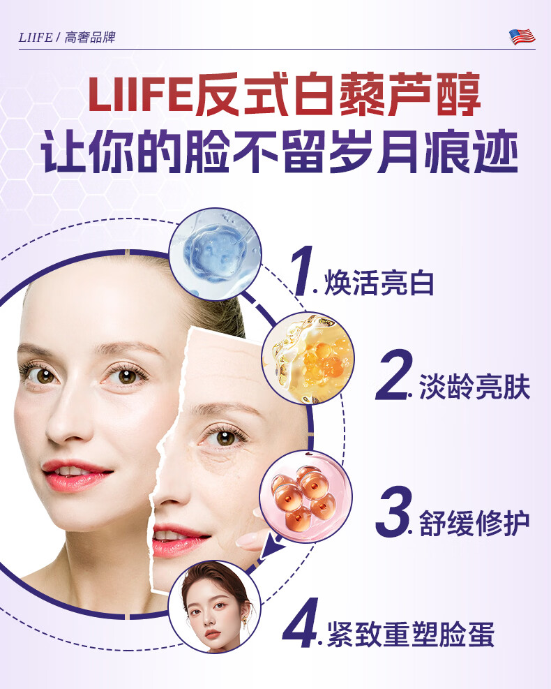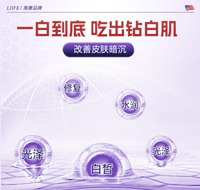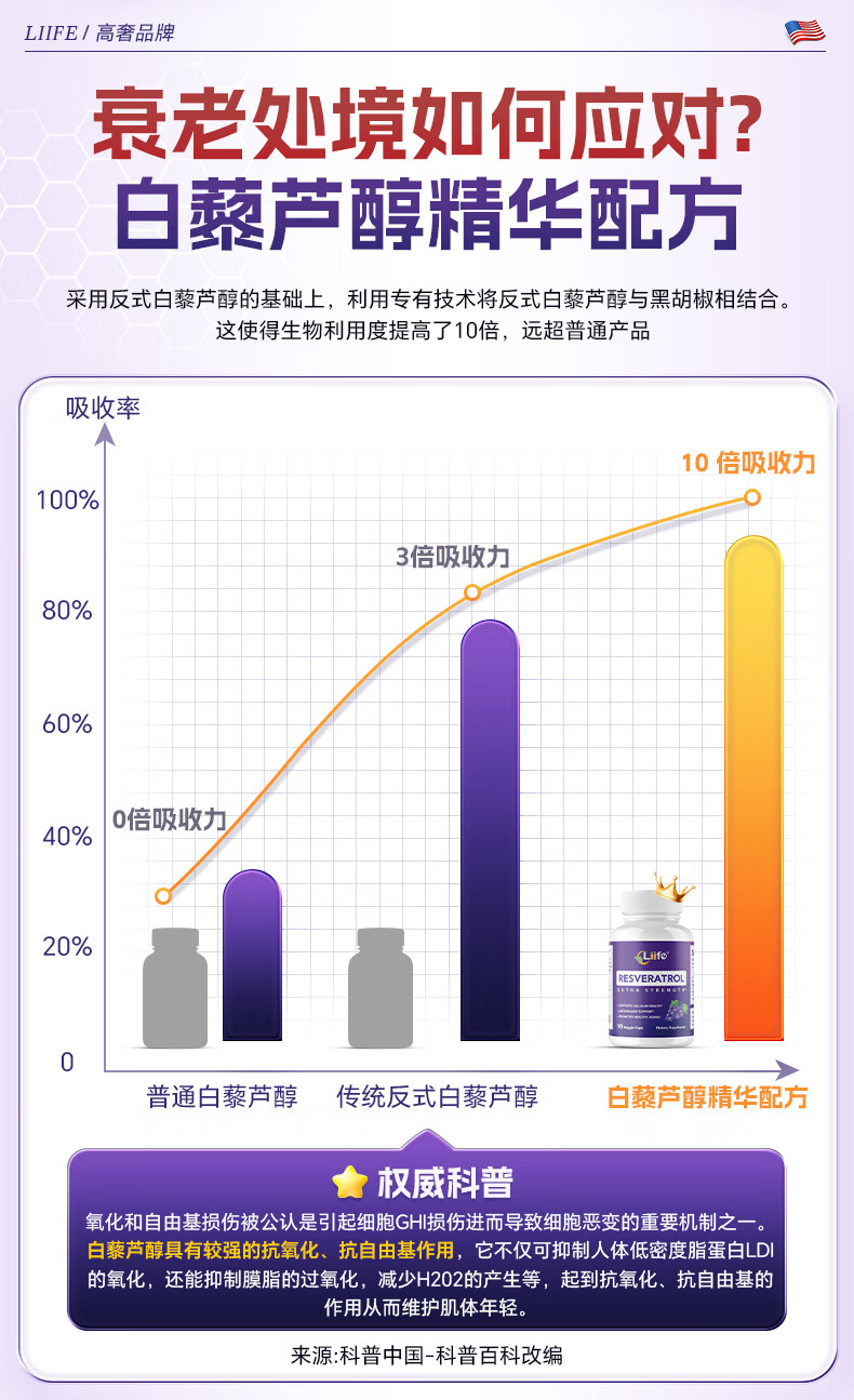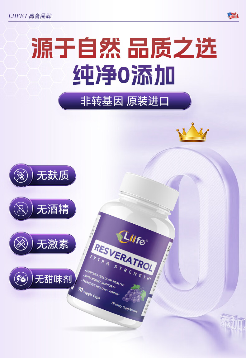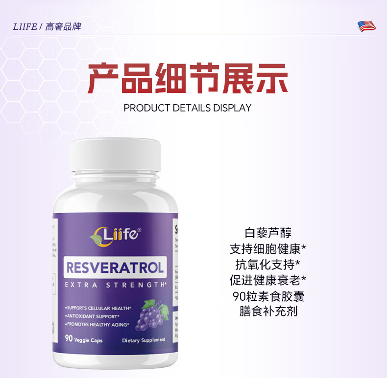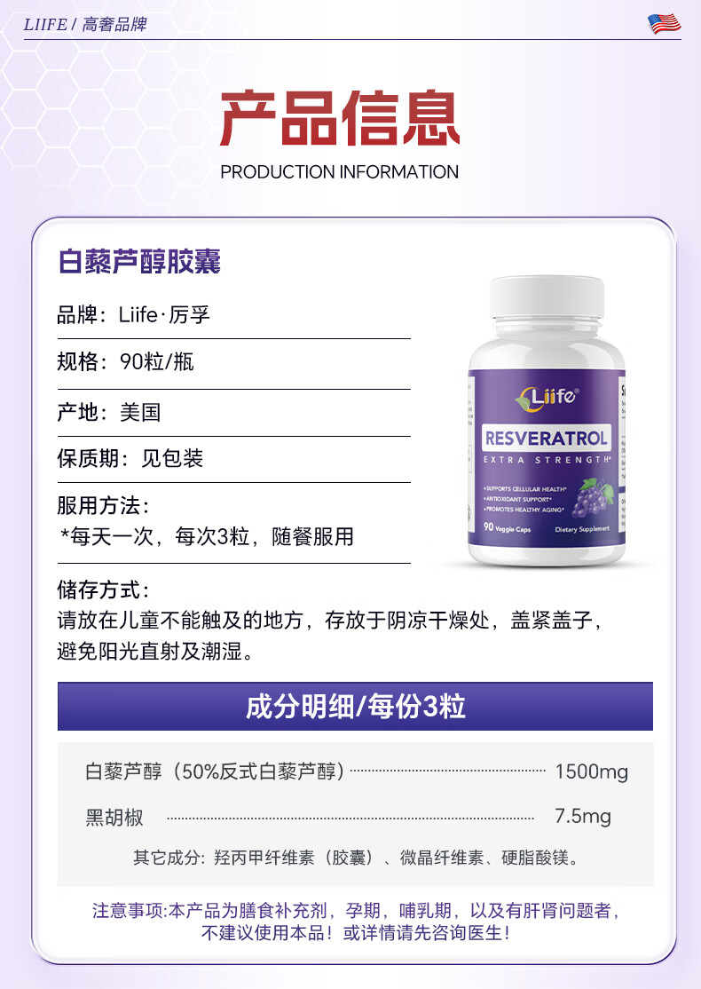 Liife厉孚白藜芦醇美白丸葡萄籽精华成人女淡斑去黄抗衰老氧化提亮肌肤 【吃出冷白皮】白藜芦醇 90粒*2瓶