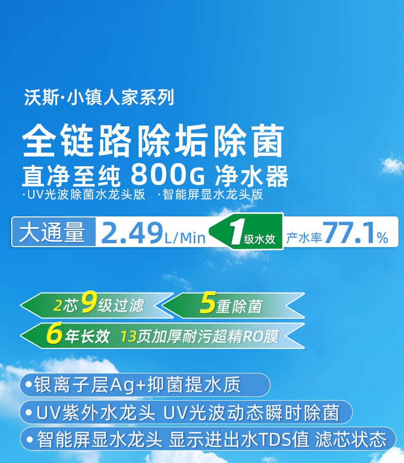 乐喝25新款净水器家用母婴直饮厨房自来水RO反渗透厨下无桶大流量纯水机9级过滤5重除菌1级水效净水机 包安装=智能屏显TDS水龙头版