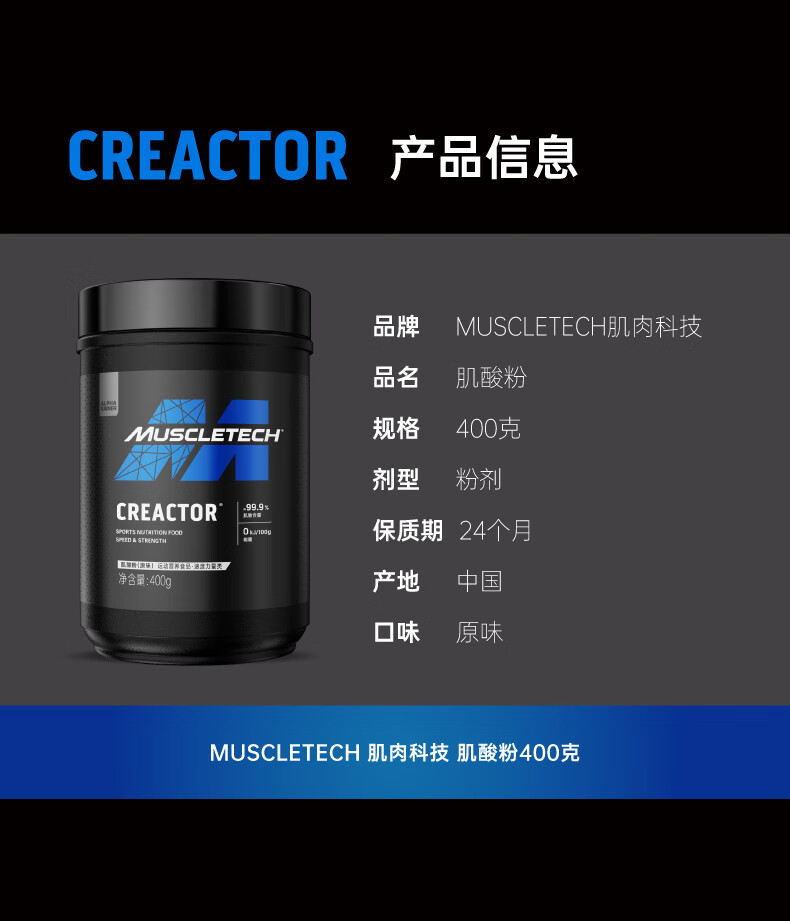 肌肉科技【肌肉科技官旗】一水肌酸粉高纯度健身营养补剂耐力训练运动男女 【原装进口】锌镁肌酸 300g*1桶