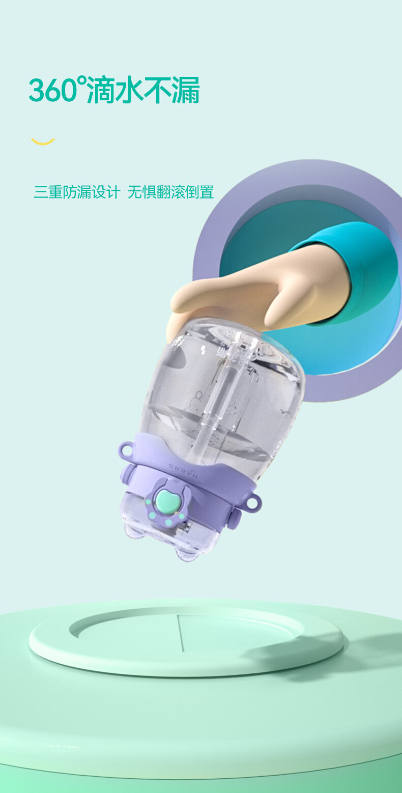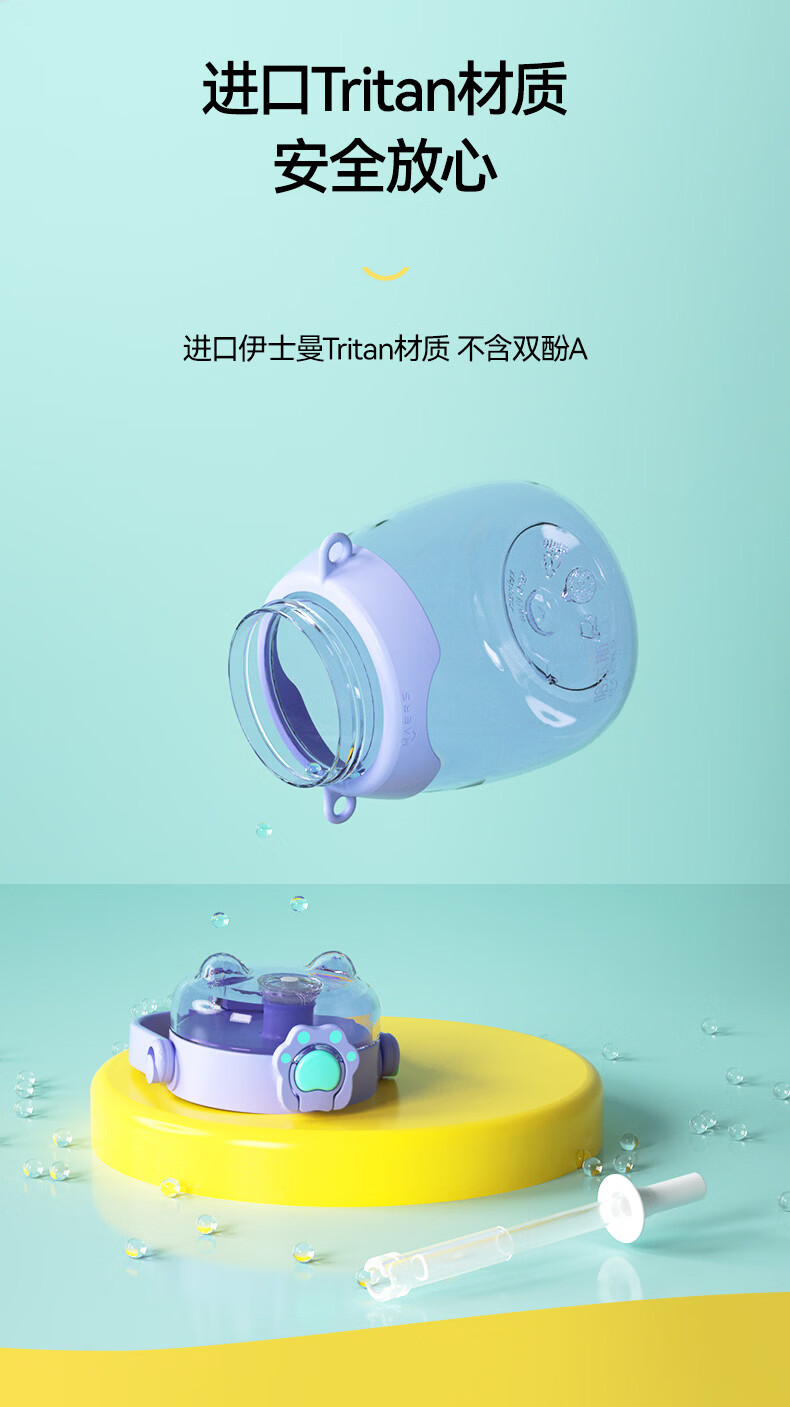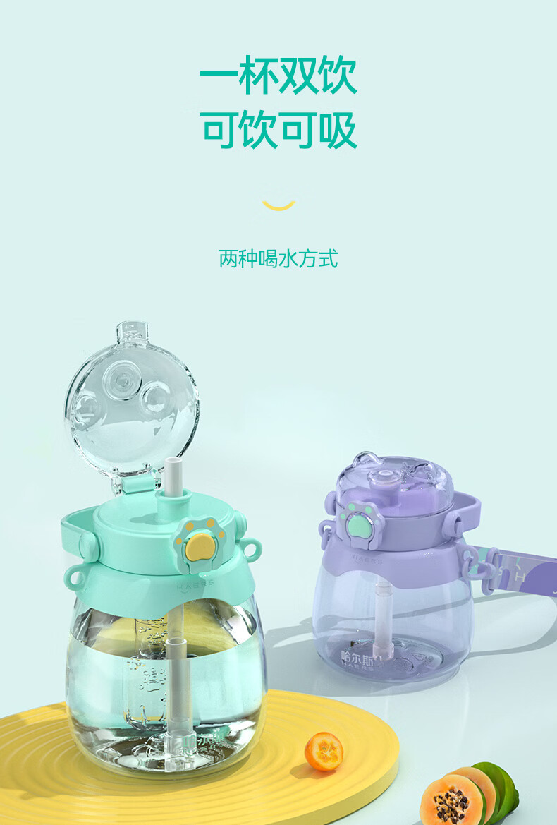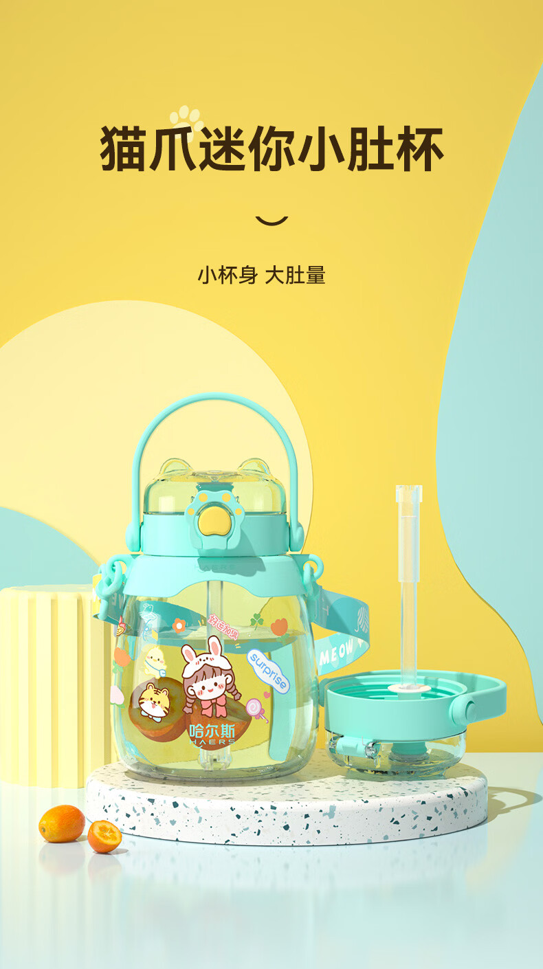 哈尔斯(HAERS)猫爪大肚杯大容量水杯塑料吸管杯夏季女学生儿童运动户外水壶杯子 HTR-950-109藤紫 950ml