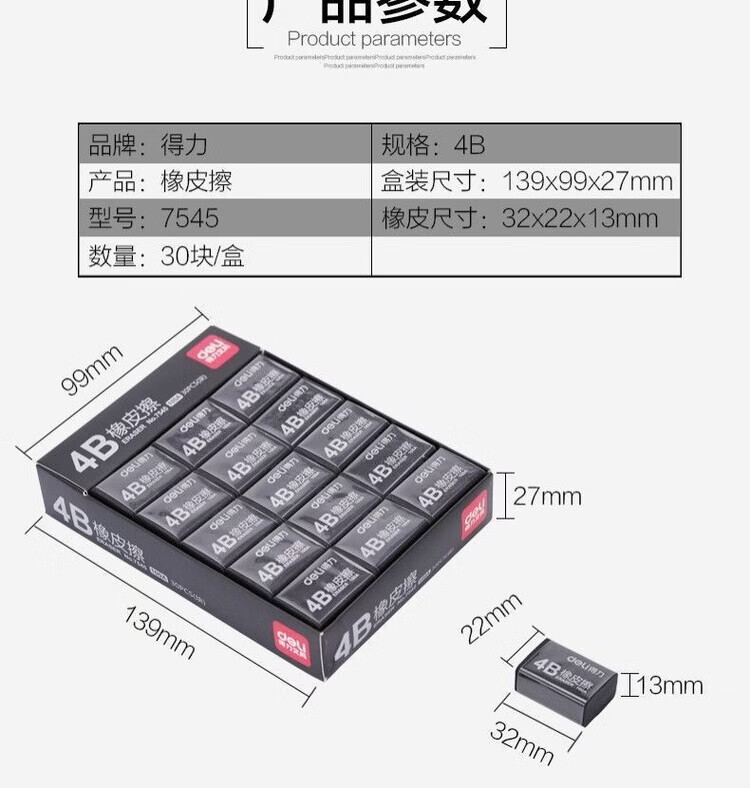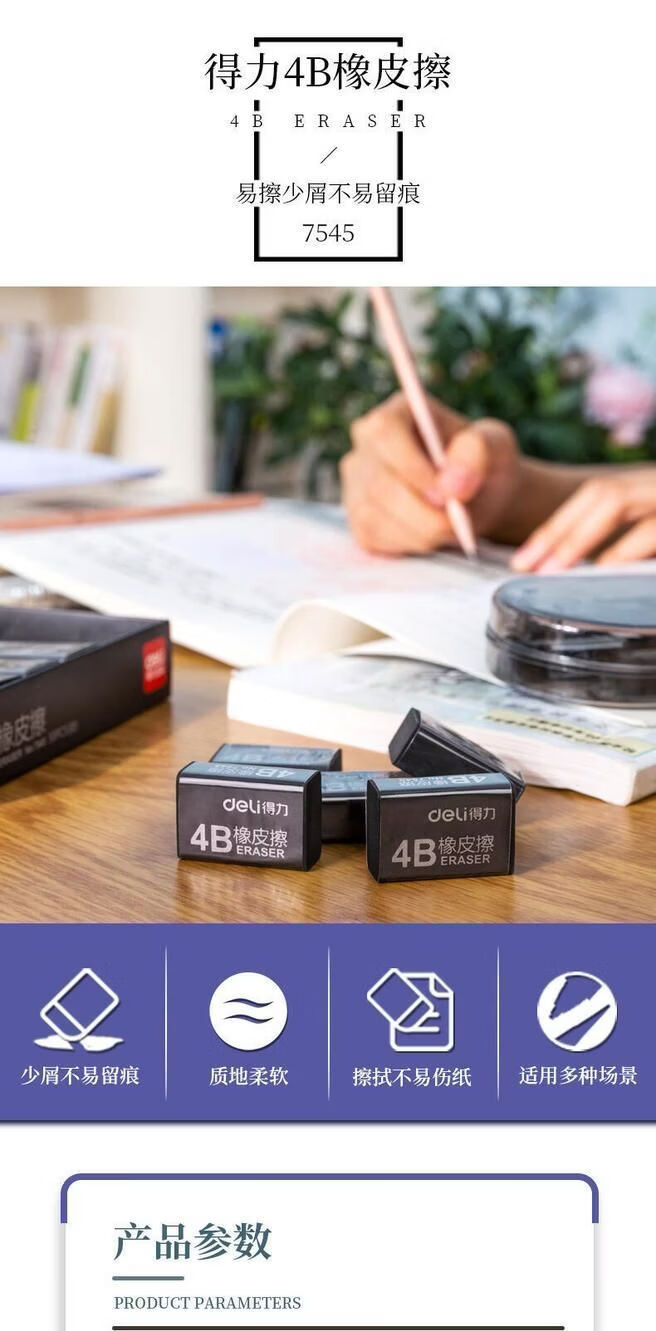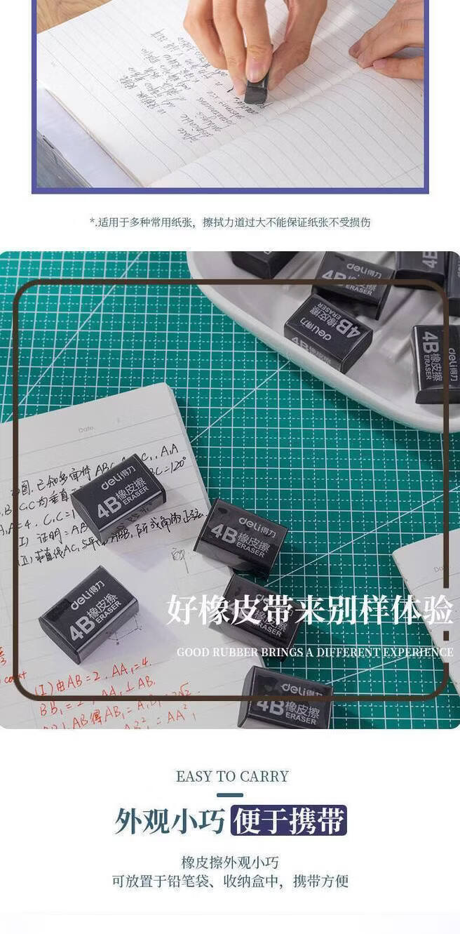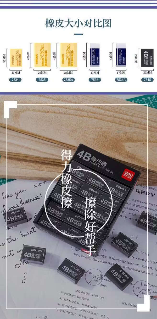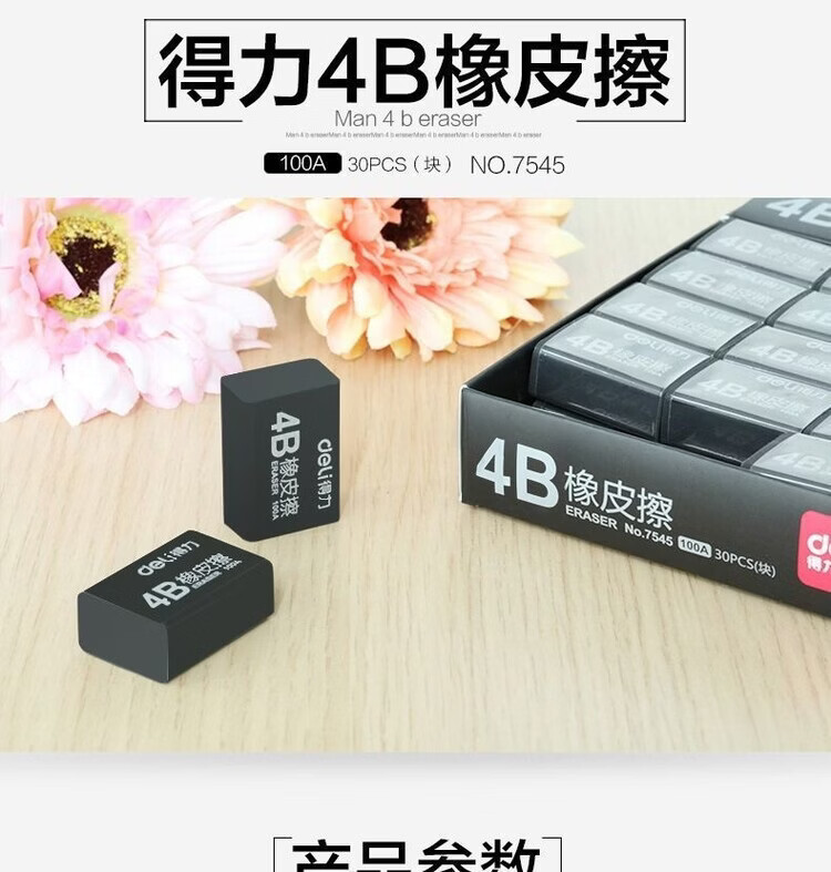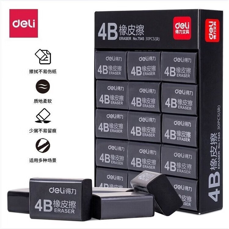 得力(deli)7545橡皮 4B橡皮擦 黑色易檫美术考试橡皮擦生橡皮擦小号橡皮 7545橡皮5块【买一赠一到手10块】