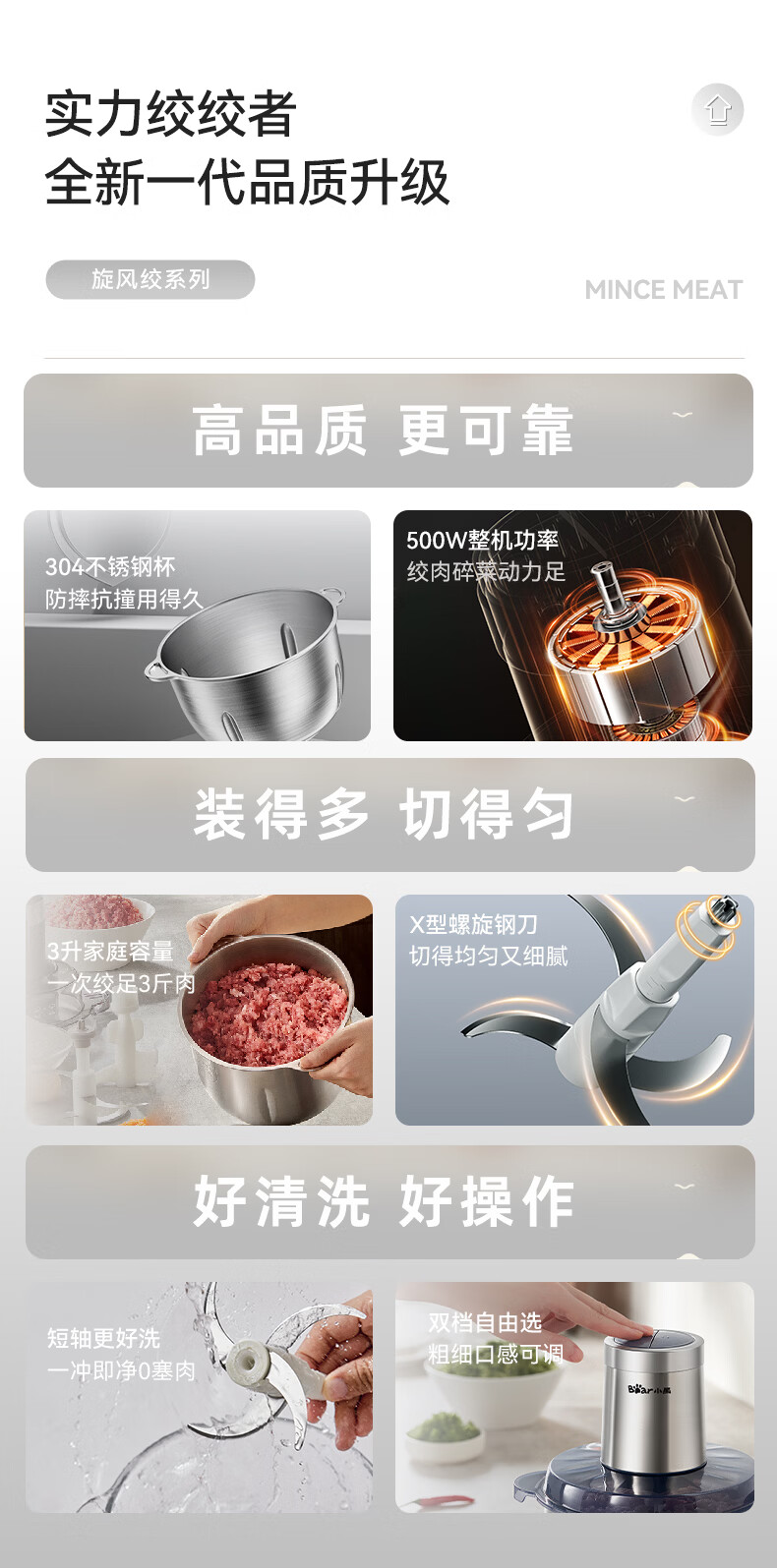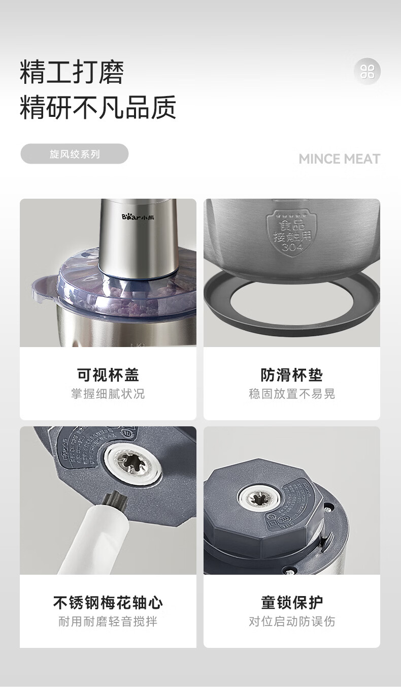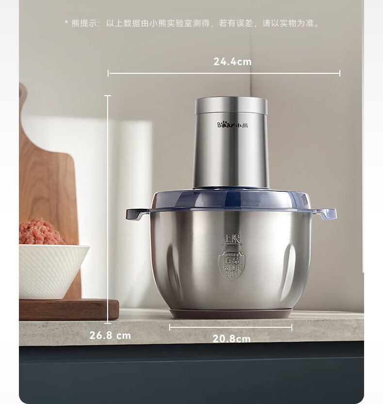 小熊(Bear)绞肉机家用 碎肉机电动搅拌机饺子肉馅蒜蓉机 搅肉机 绞肉绞菜多功能一体机 3L全钢杯 QSJ-P05E3