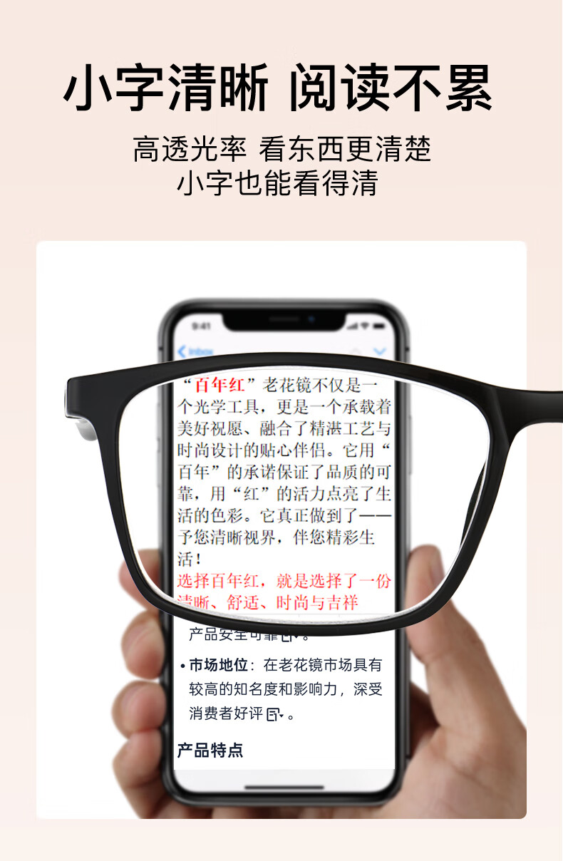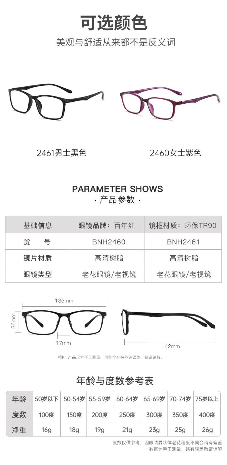 百年红老花镜2025新款男士正品花镜高清晰耐磨老人眼镜2461-200