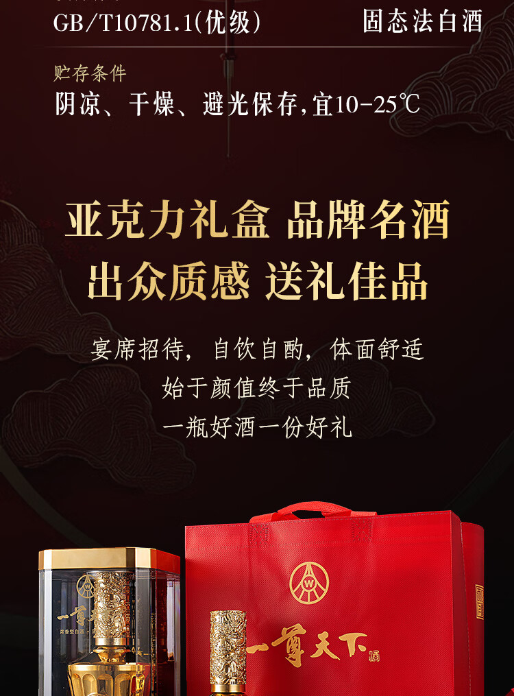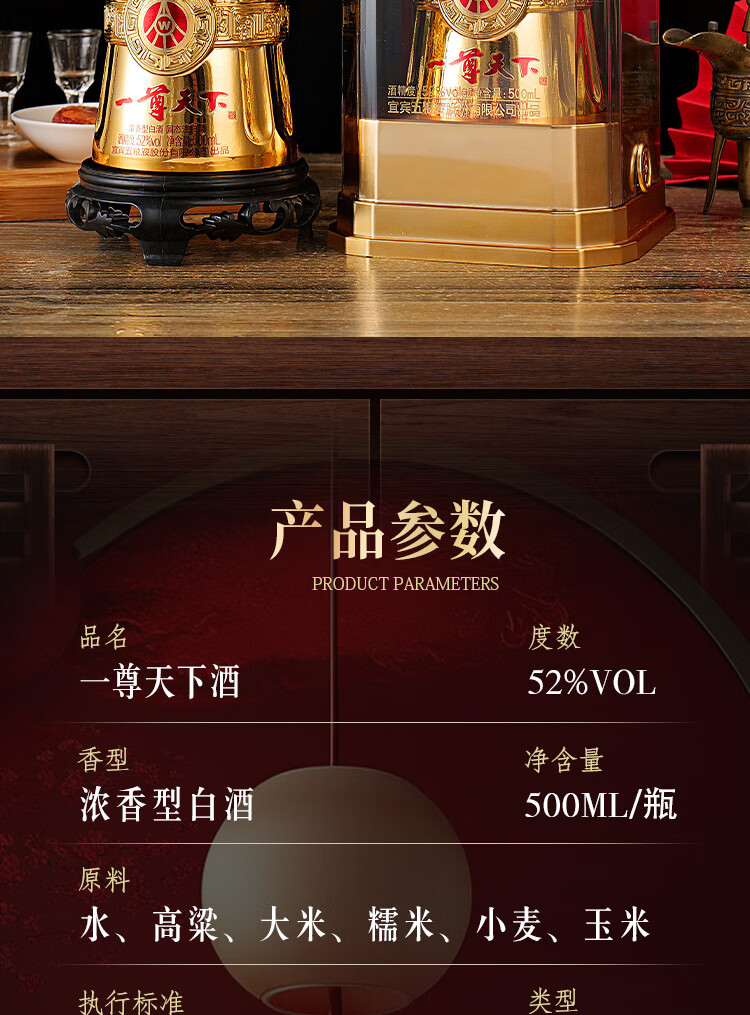 一尊天下金尊 浓香型白酒 52度 500ml*2瓶 赠精美礼袋 商务宴请过节送礼 52度 500mL 2瓶 赠礼袋