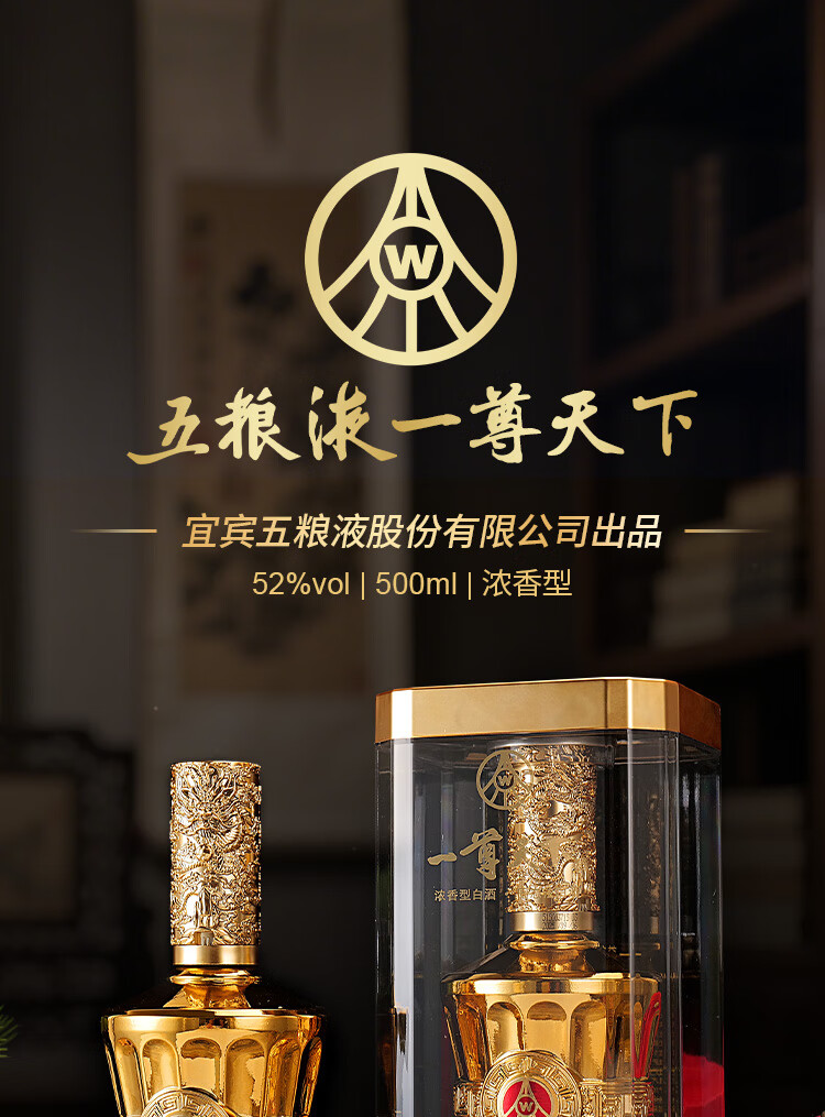 五粮液股份出品 一尊天下 浓香型白酒礼盒52度 中秋礼品礼盒 52度 500mL 2瓶 礼盒