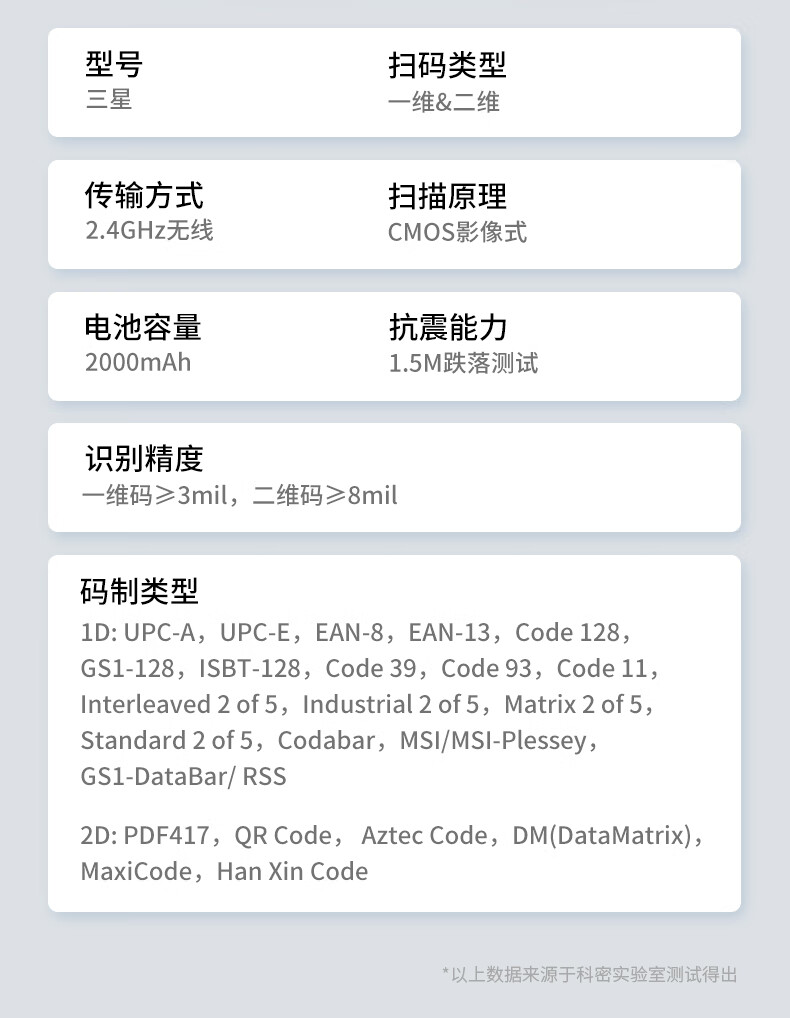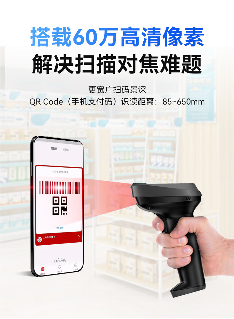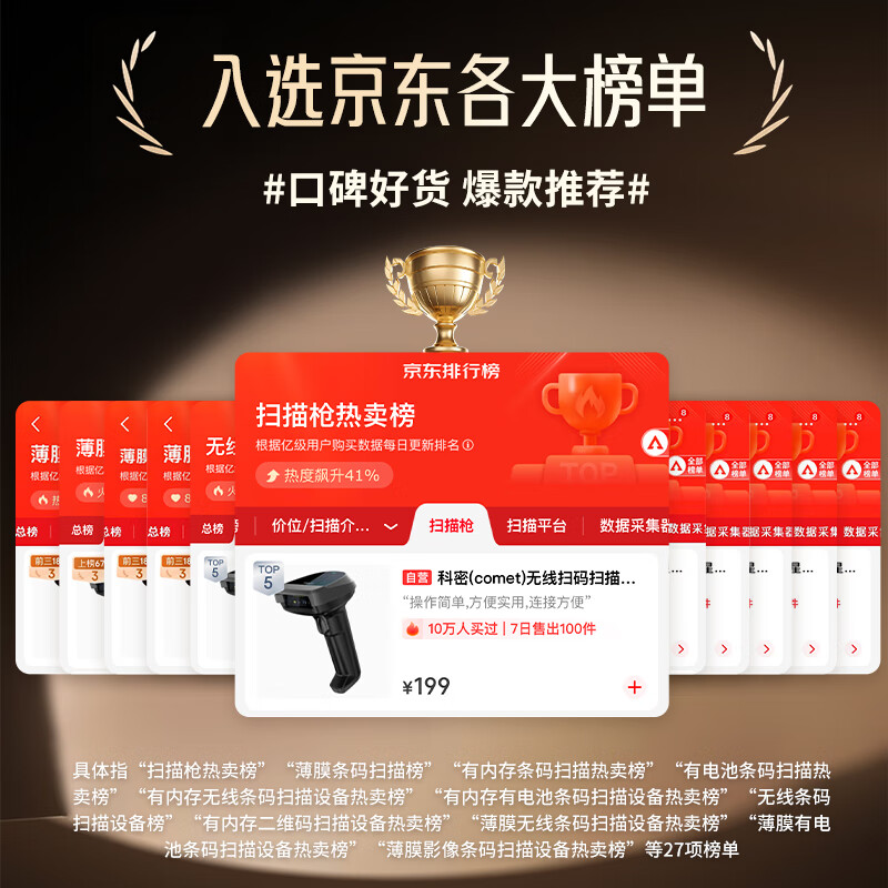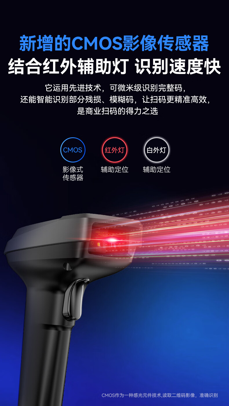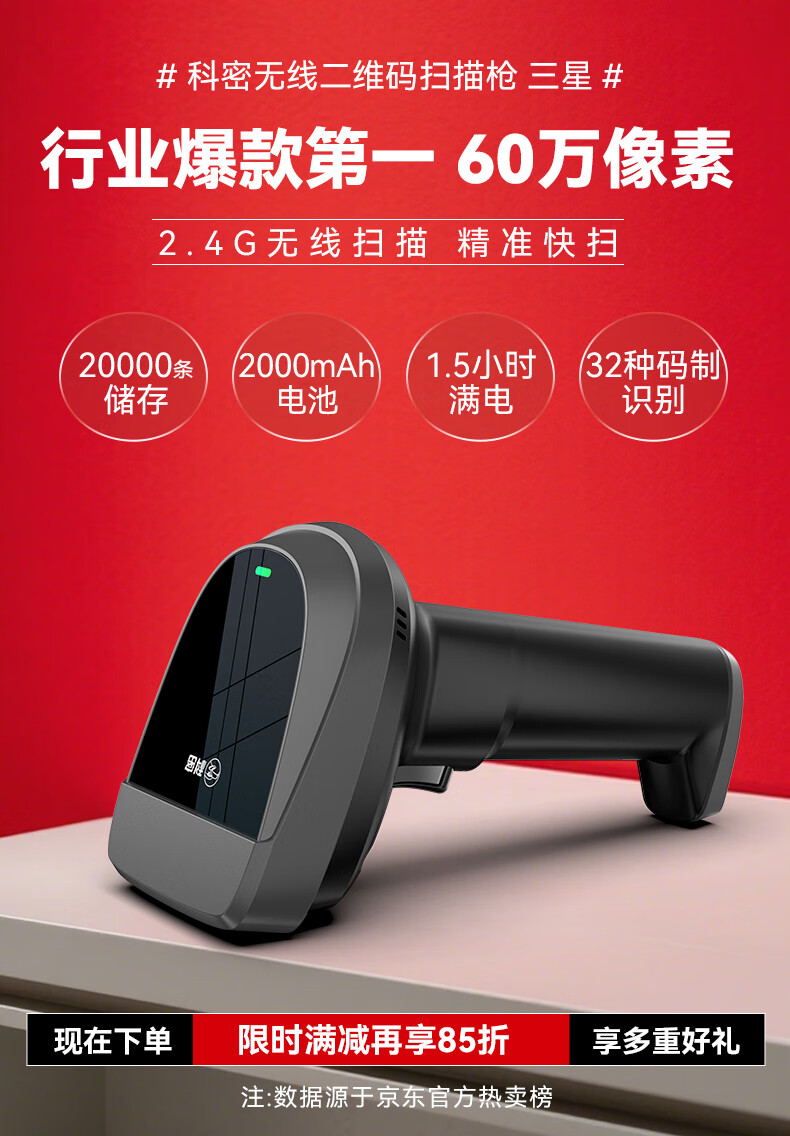 科密(comet)无线扫码扫描枪 一二维码条码扫描器 药品追溯UDI码收银医保仓库快递物流盘点 三星
