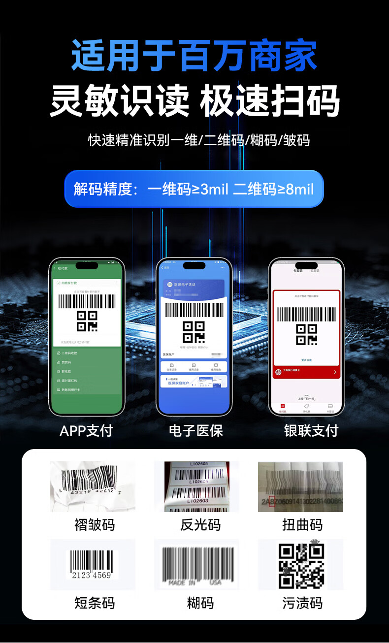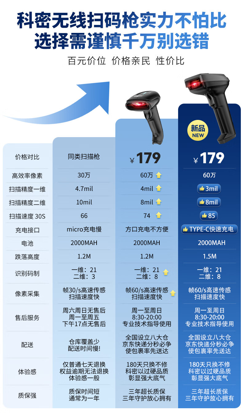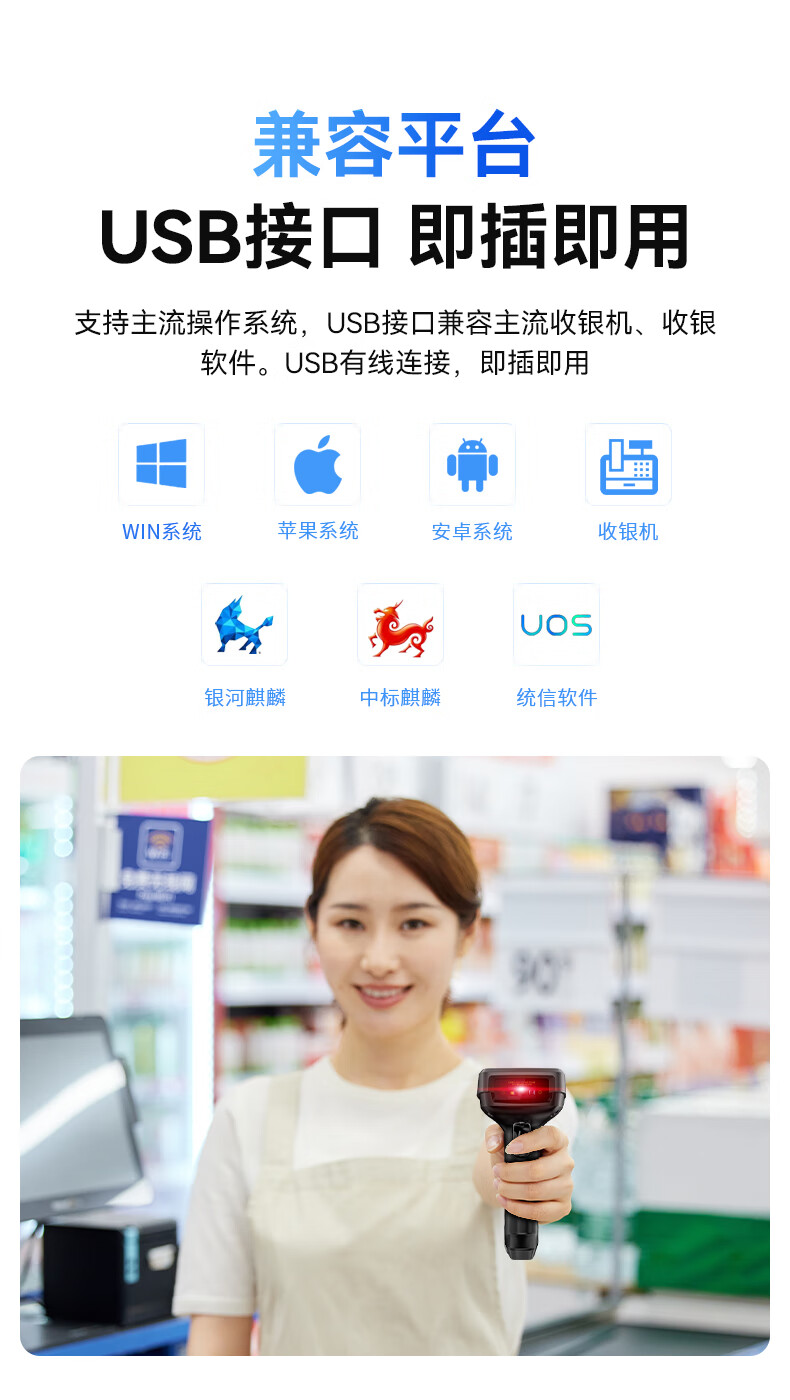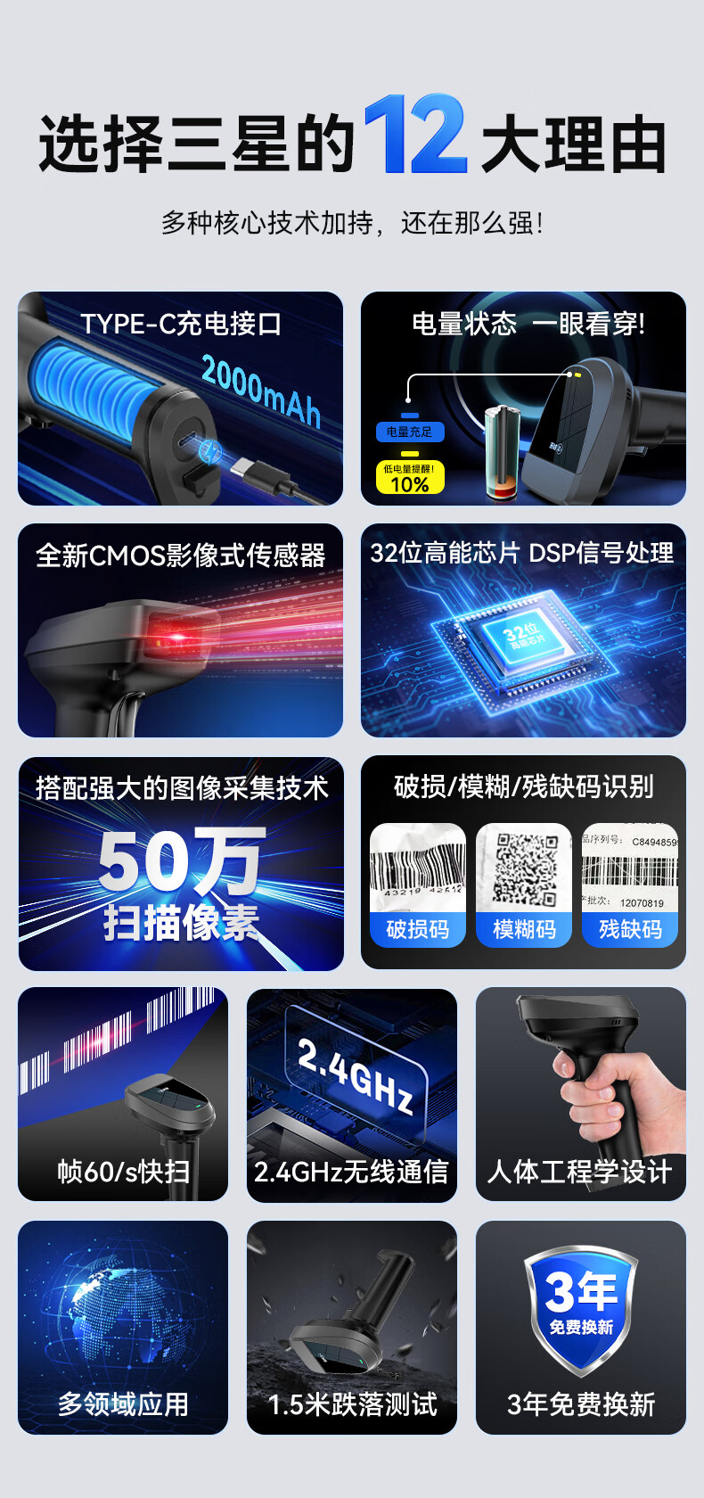 科密(comet)无线扫码扫描枪 一二维码条码扫描器 药品追溯UDI码收银医保仓库快递物流盘点 三星