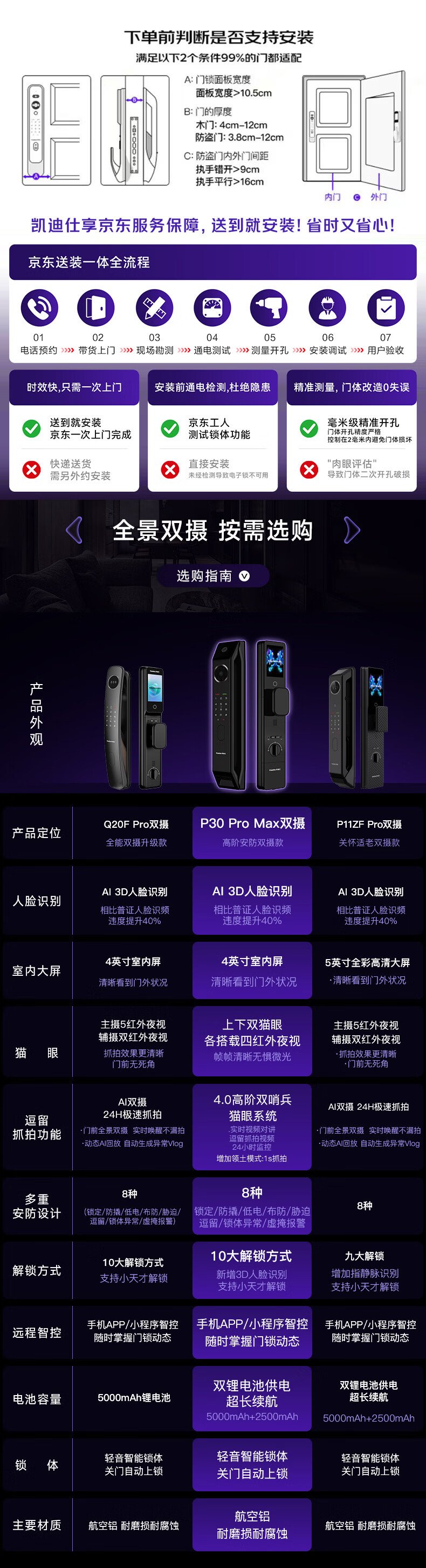 凯迪仕(KAADAS)智能门锁 双摄人脸识别可视猫眼大屏指纹锁 金刚P30 Pro Max双摄