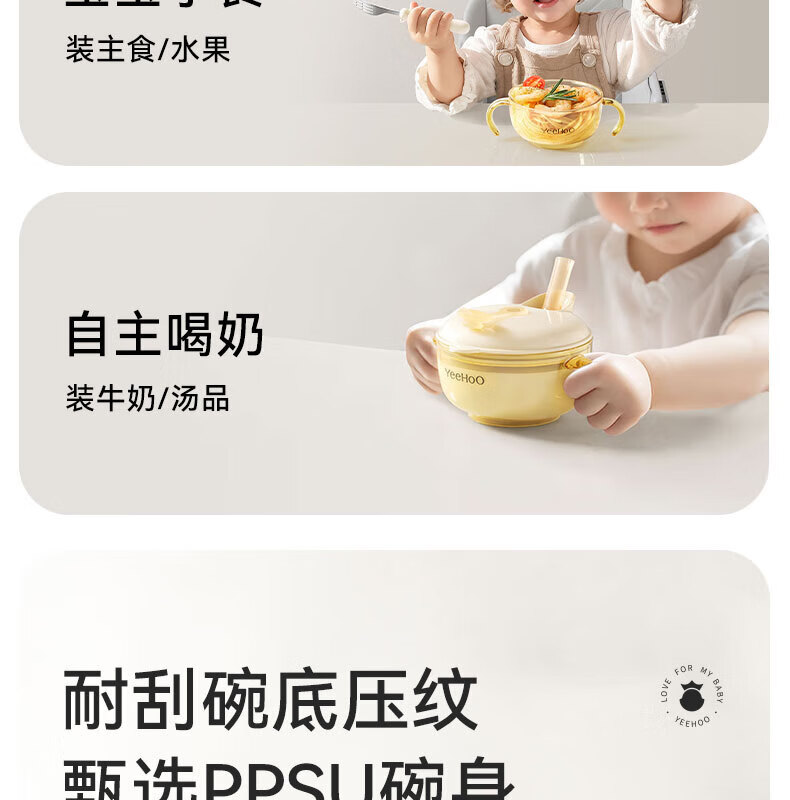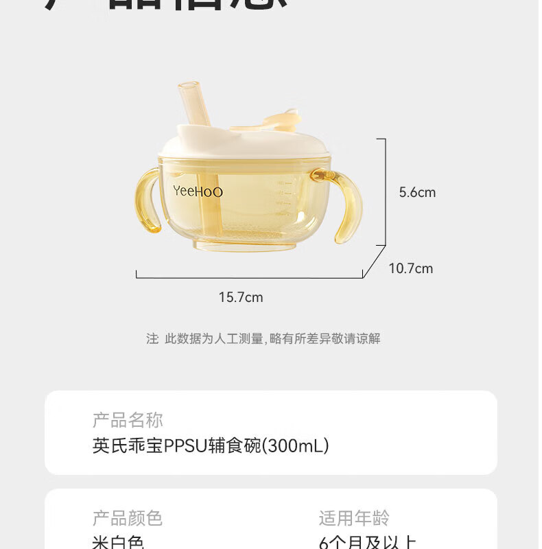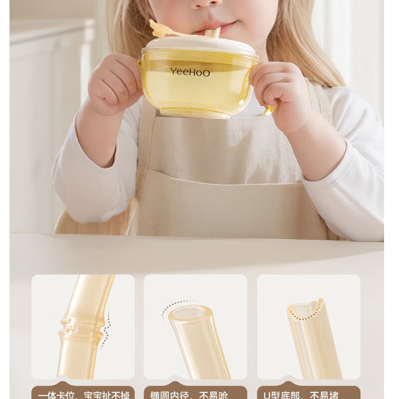英氏(YEEHOO)宝宝喝汤吸管碗米糊杯婴幼儿鹰嘴辅食碗喝粥喂水PPSU专用餐具