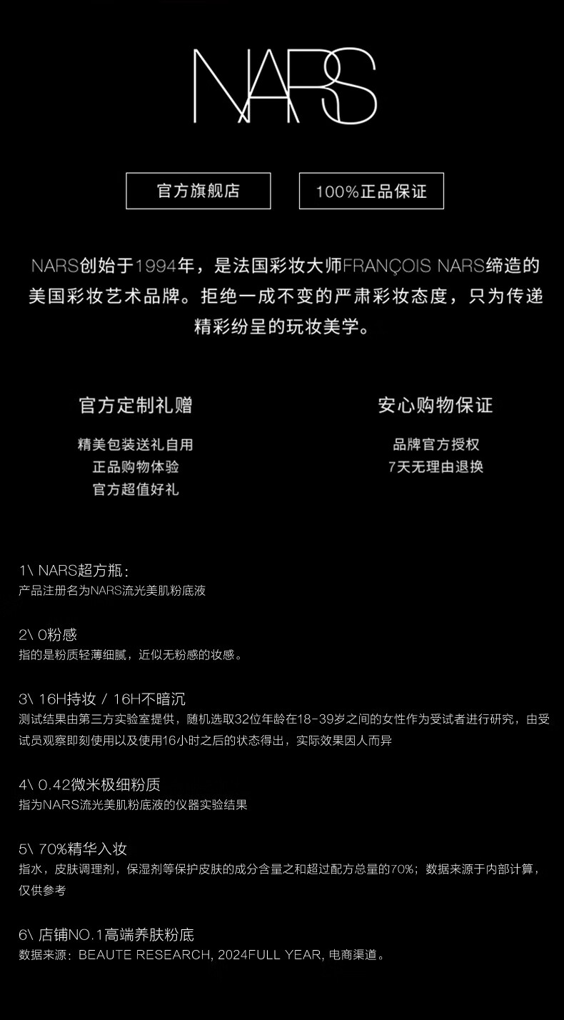 NARS【唯一官方正品】超方瓶粉底液L1.5 30ml持妆不卡粉干皮新年礼物