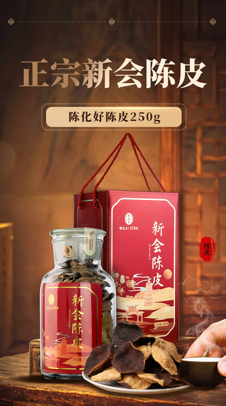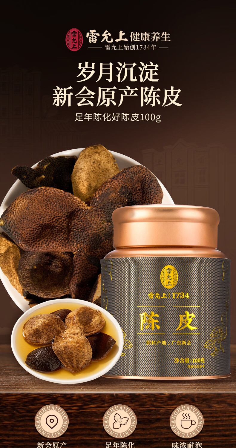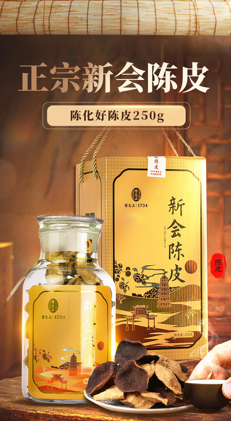 雷允上【官方】陈皮新会原产老陈皮 泡水花草茶精致礼盒装年货节礼盒 新会陈皮 125g*1罐