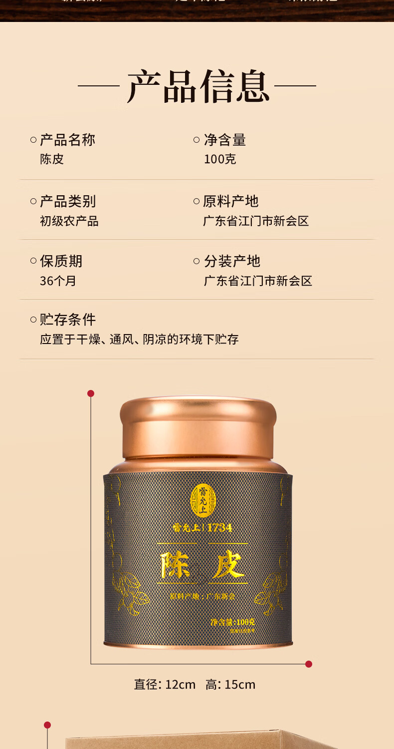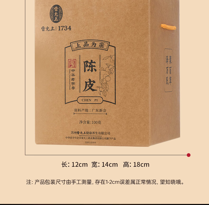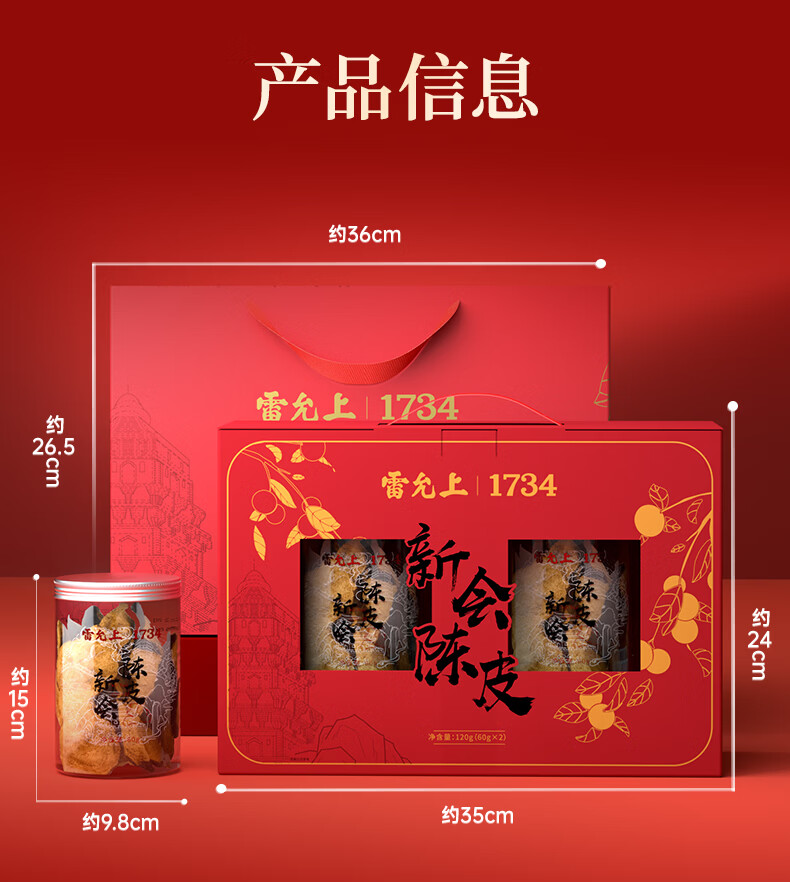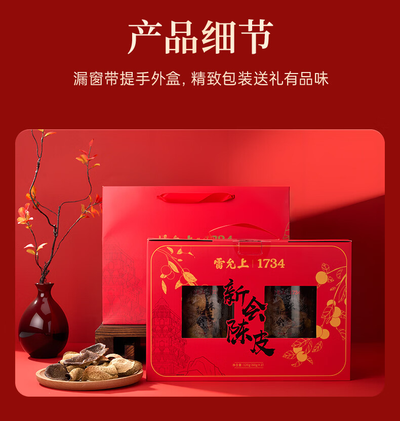 雷允上【官方】陈皮新会原产老陈皮 泡水花草茶精致礼盒装年货节礼盒 新会陈皮 125g*1罐