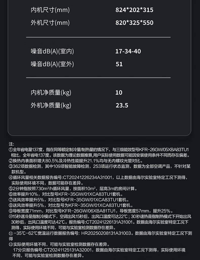 海尔出品统帅空调 超省电 大1匹超一级能效 AI变频冷暖空调挂机挂式 国家补贴以旧换新KFR-26GW/LA1-1