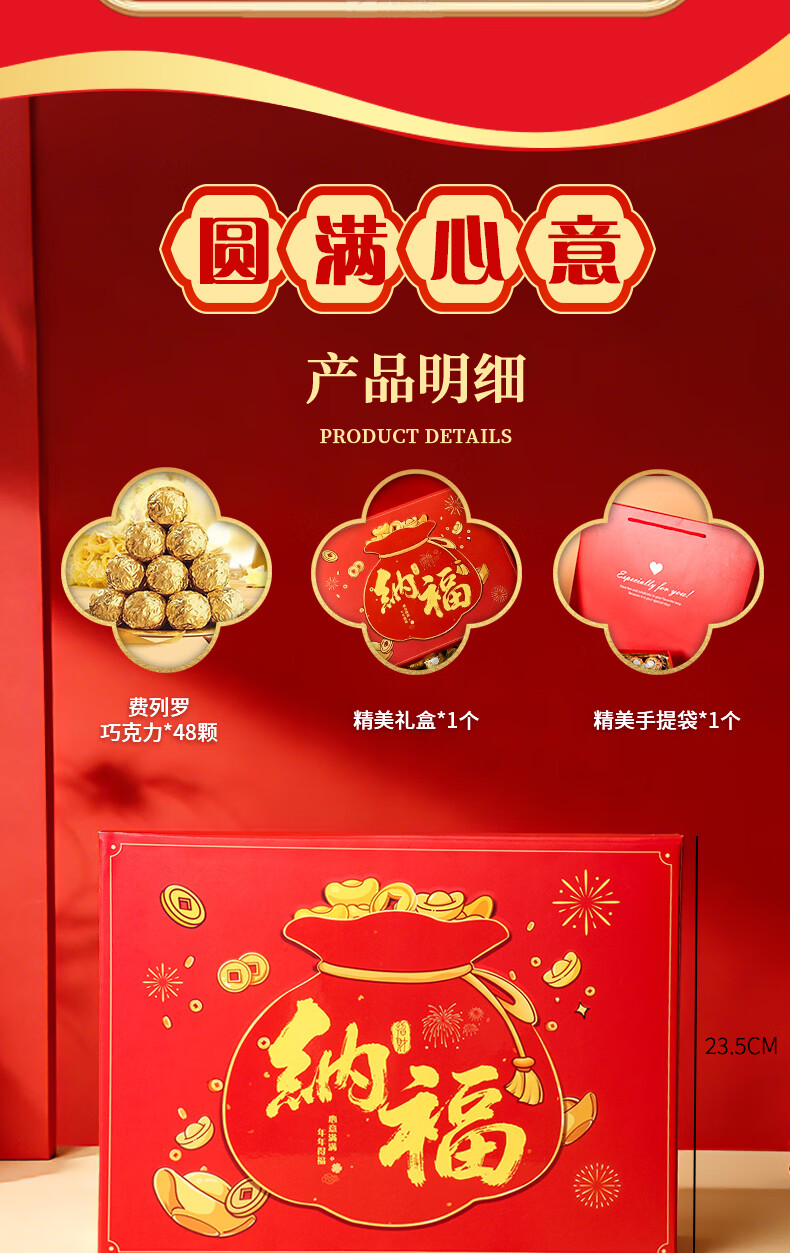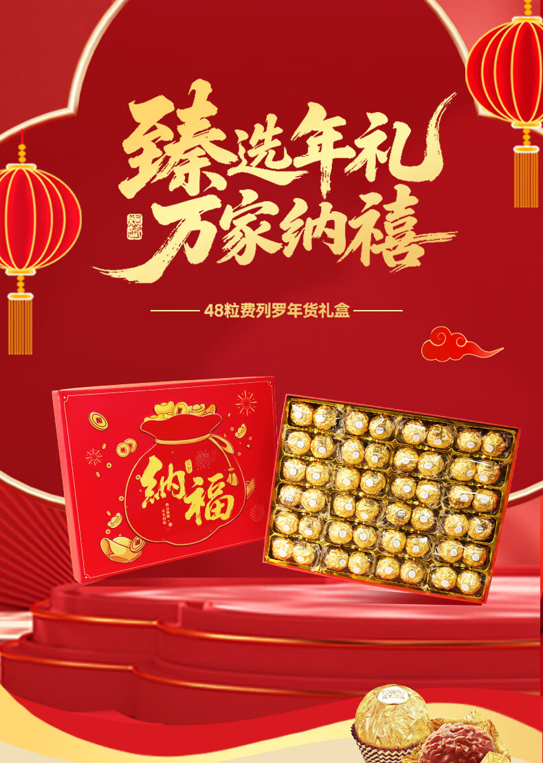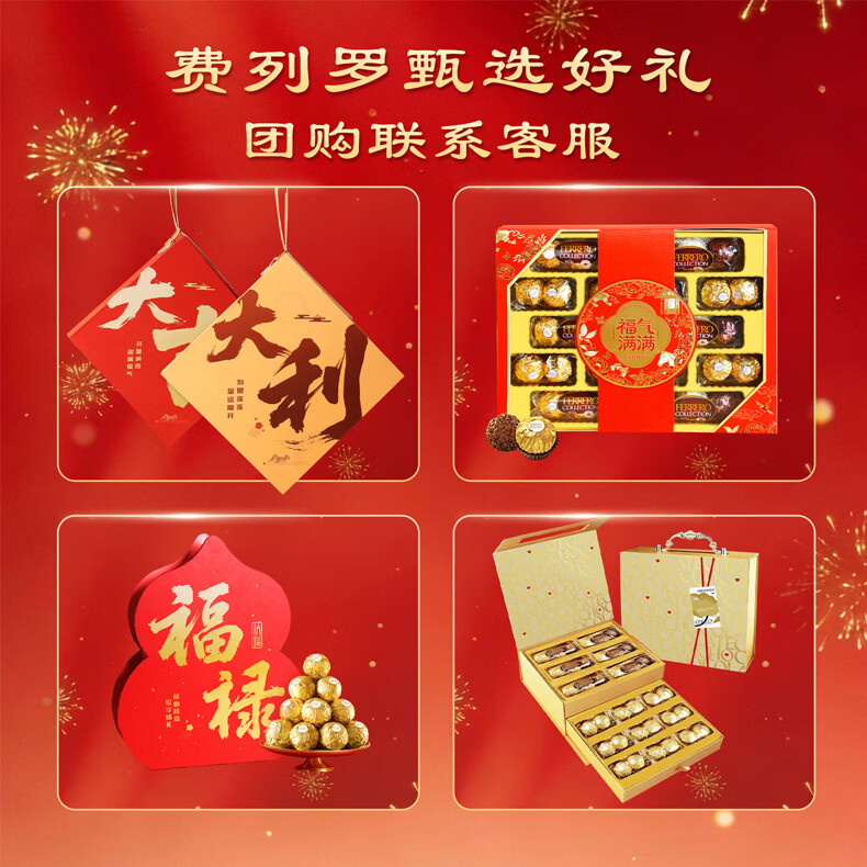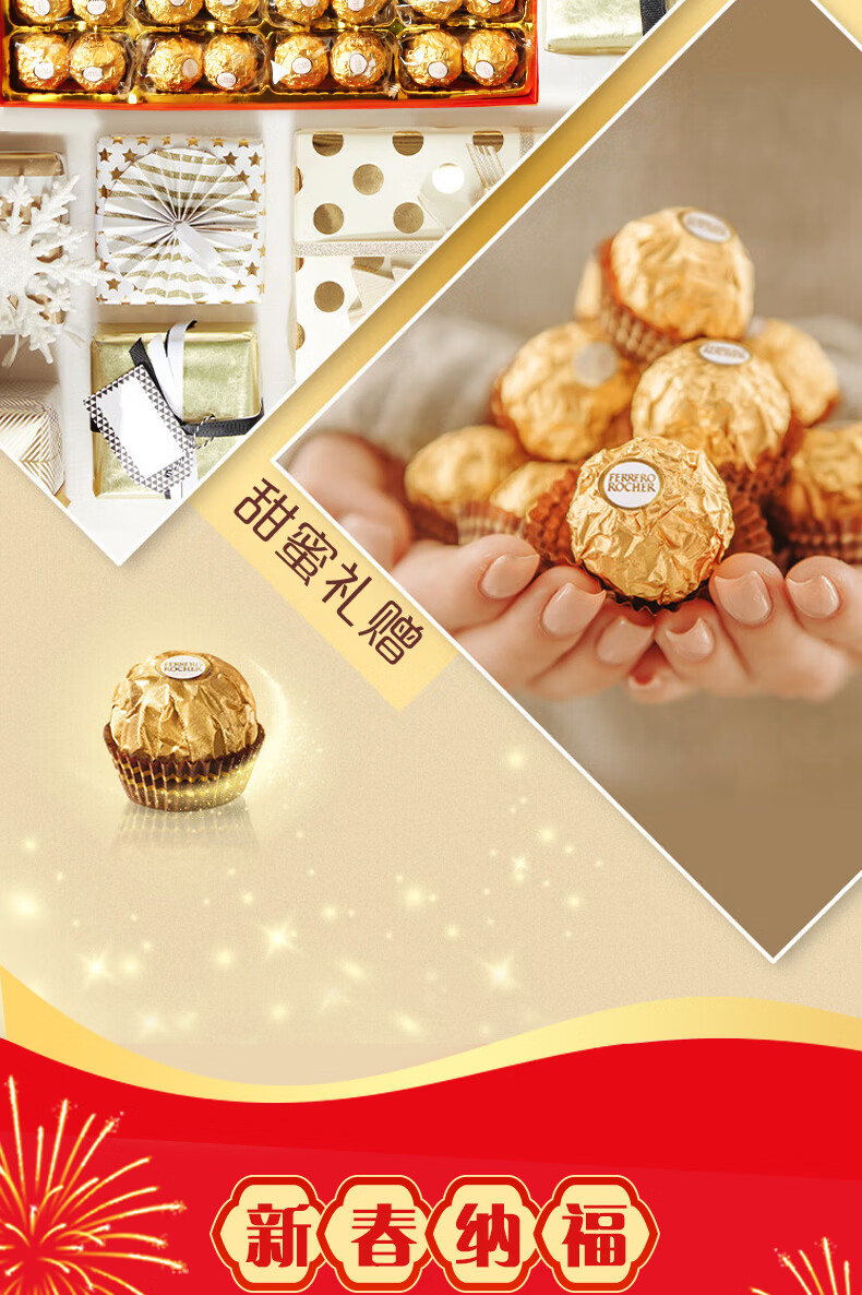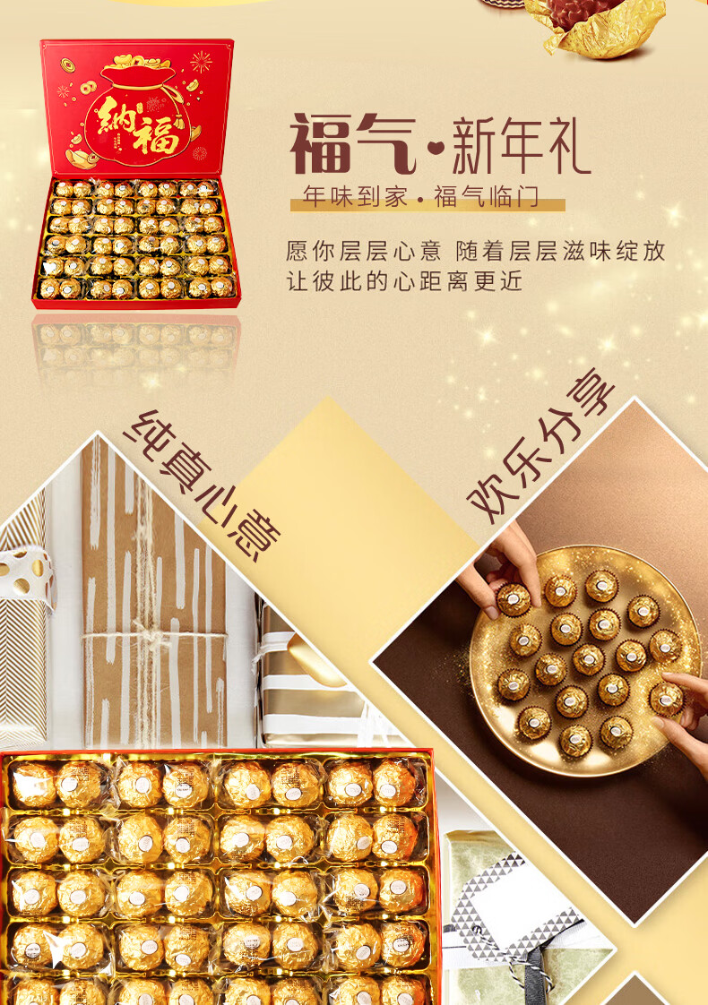 费列罗巧克力礼盒新年礼物年货礼盒春节送礼员工金莎团购伴手礼过年零食 【经典金色】48粒费列罗