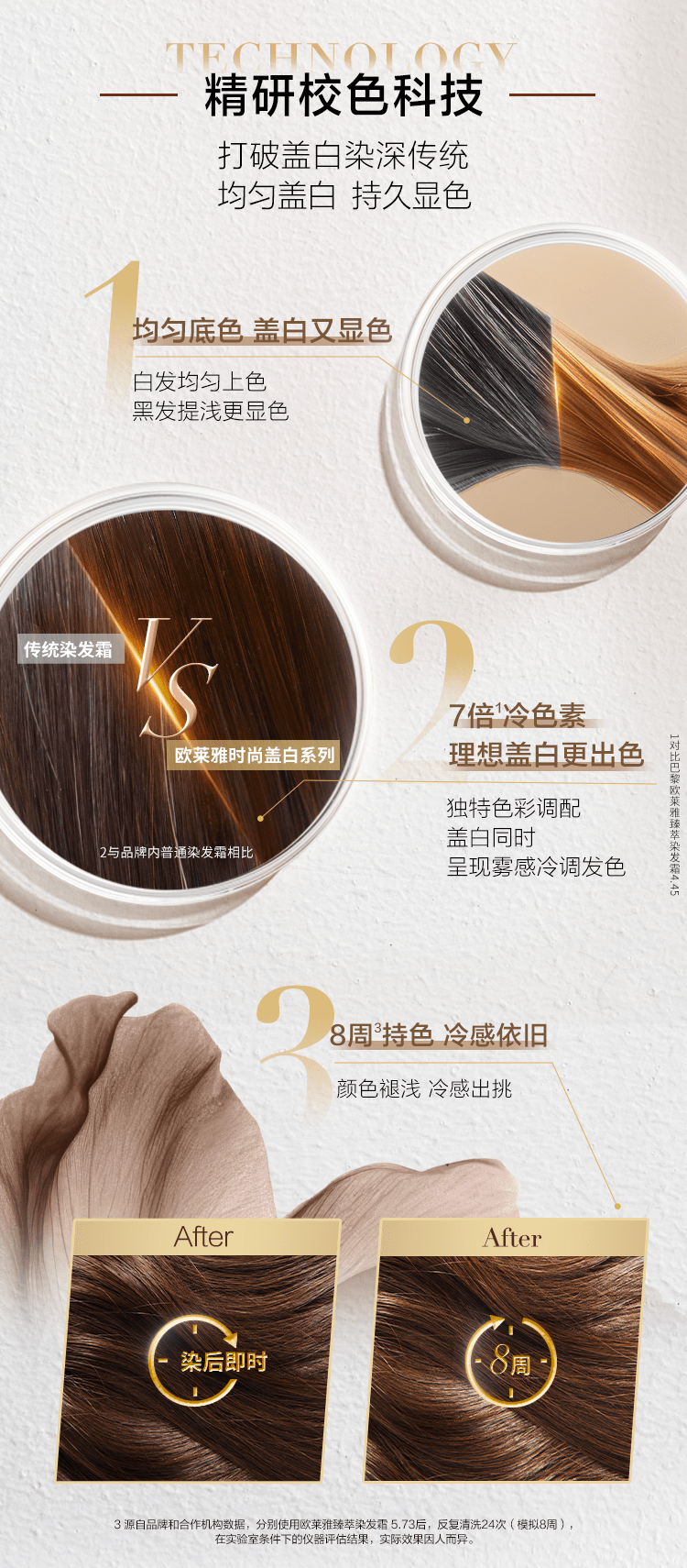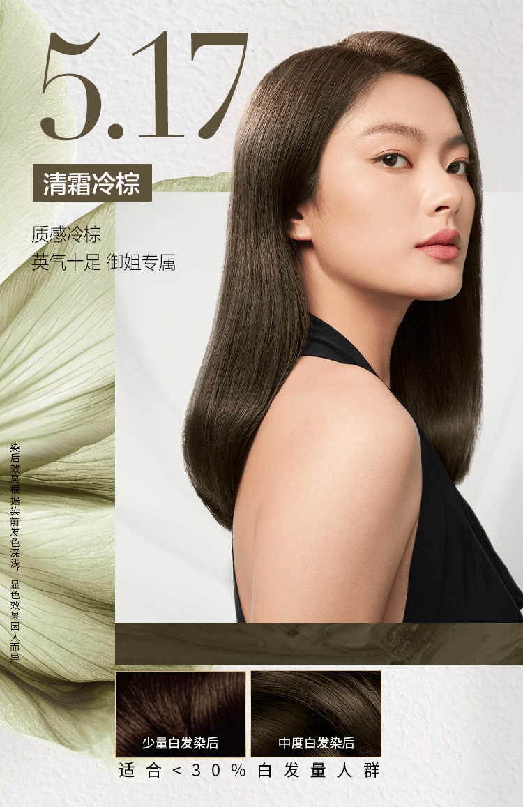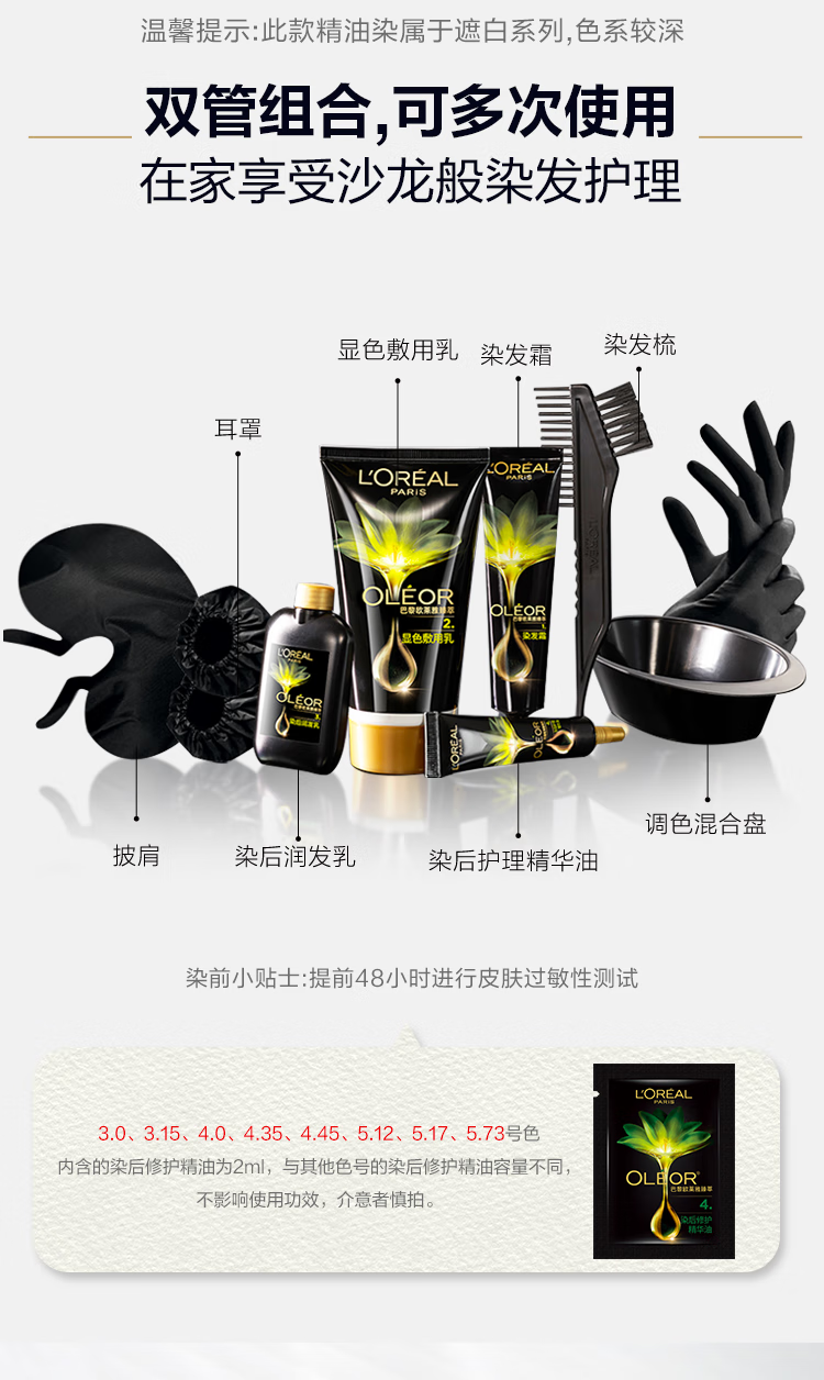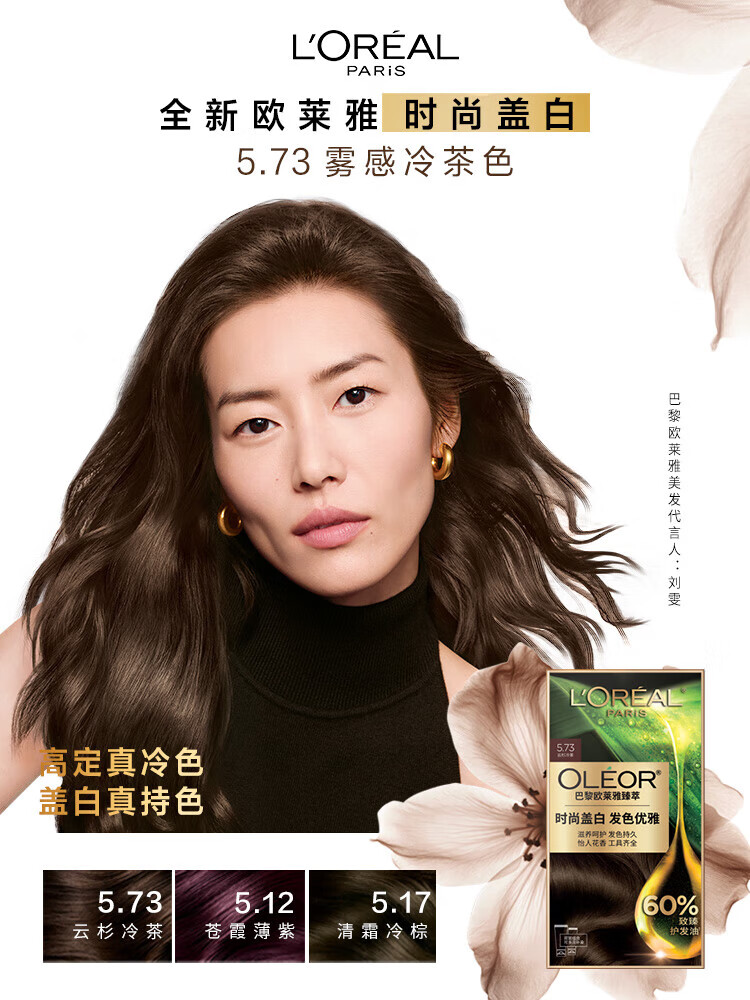 欧莱雅雾感冷茶色臻萃染发剂植萃精华油遮盖白发植物染发膏5.73云杉冷茶