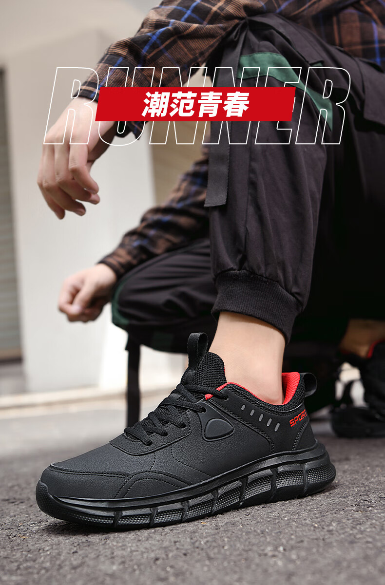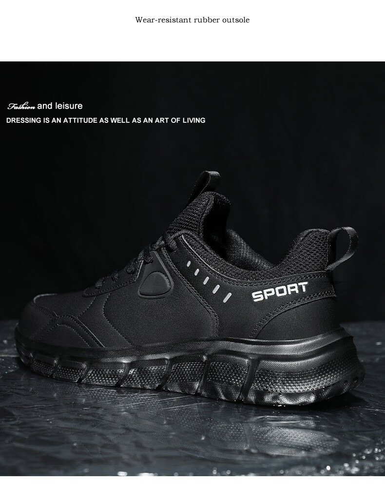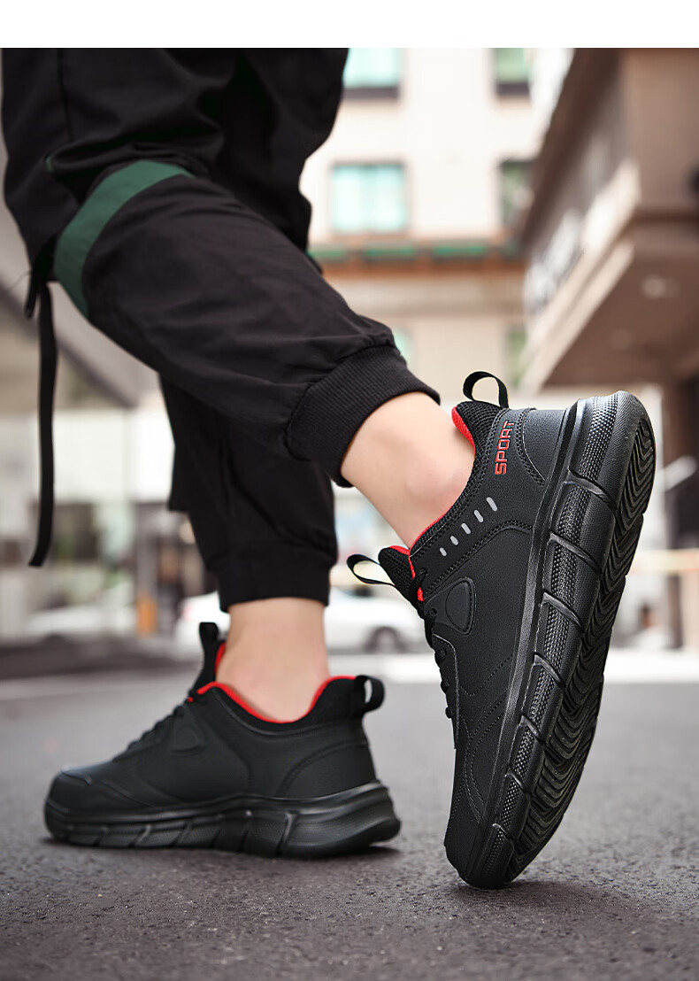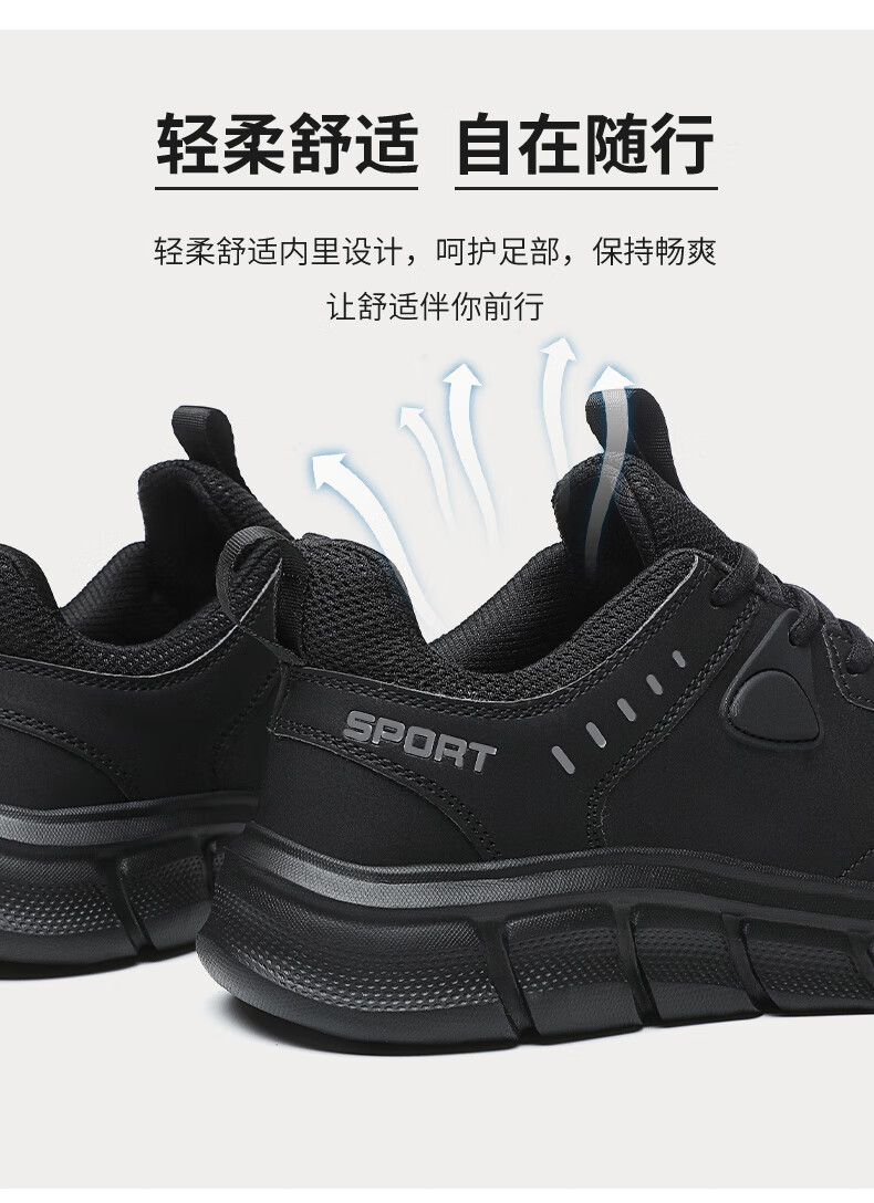 足力健老人鞋春季中老年散步鞋轻便爸爸鞋休闲鞋运动鞋男鞋 02K黑色40