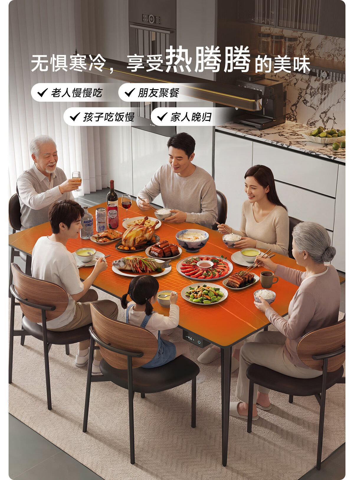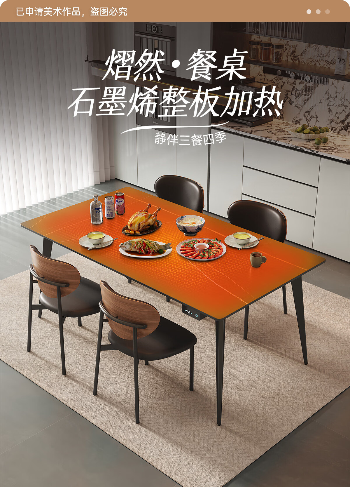 帕沙曼办公桌子岩板餐桌石墨烯加热暖菜家用极简轻奢长方形饭桌椅 6471Y 石墨烯加热餐桌(6471Y) 140cm *80cm*75cm