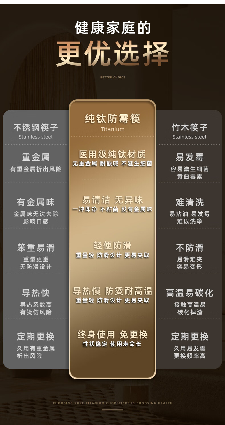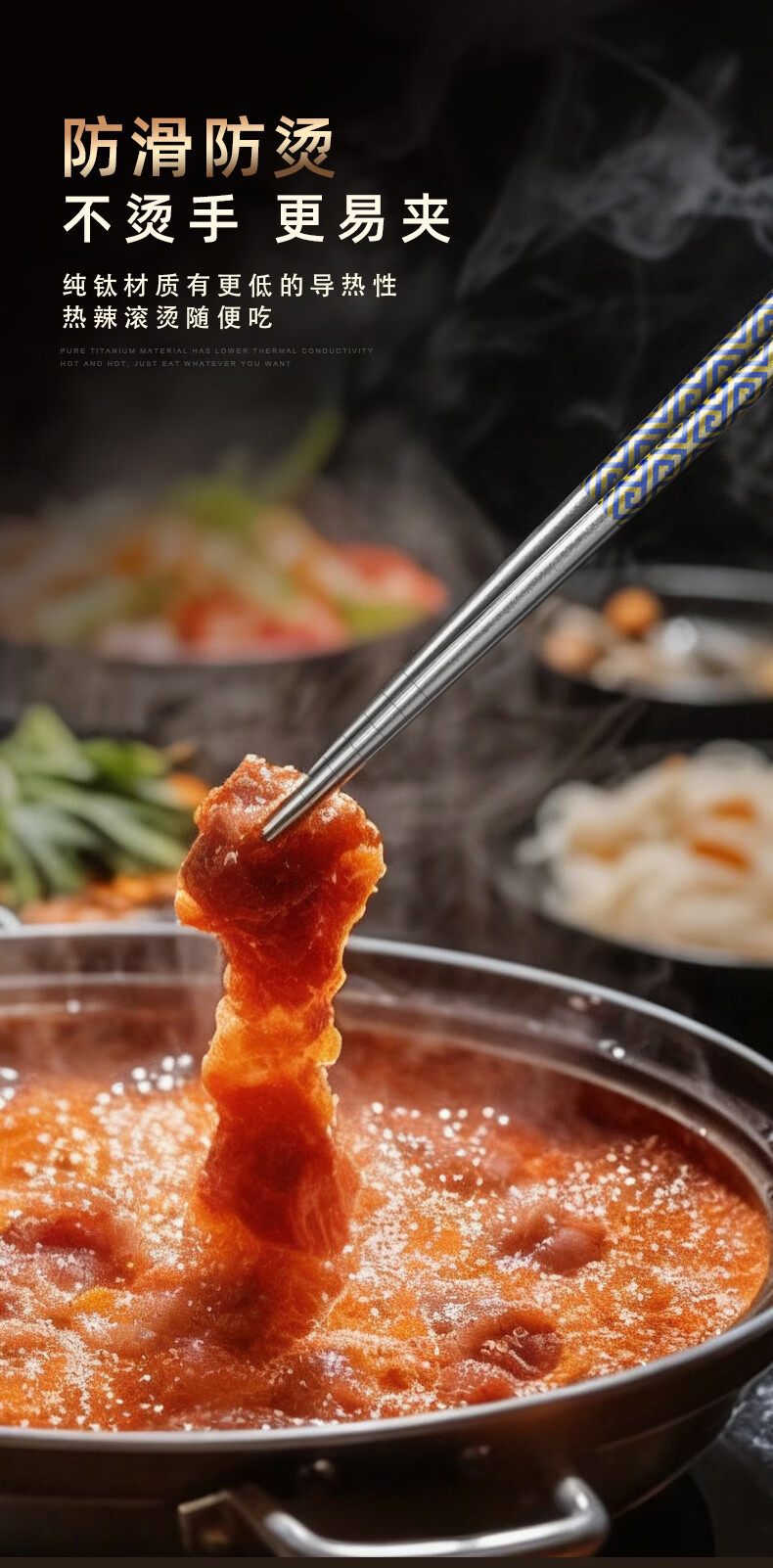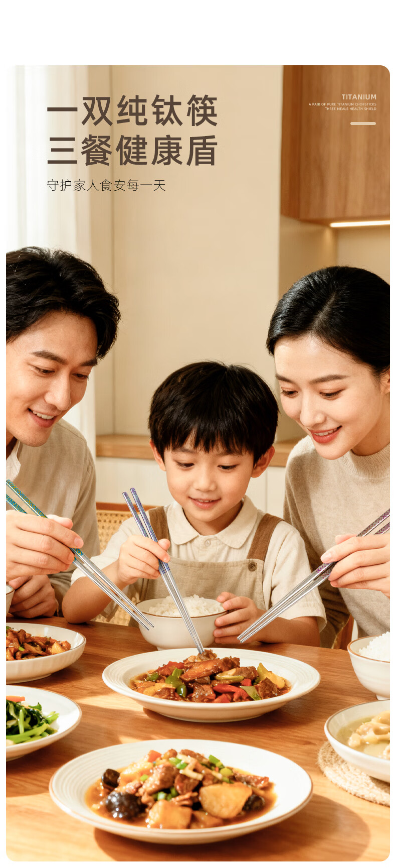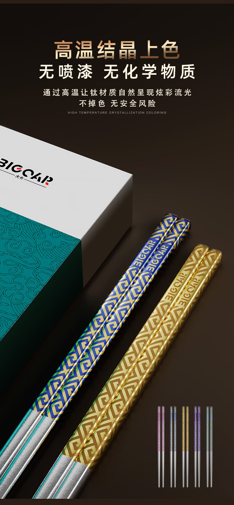 大卡纯钛筷子抗菌防霉高级筷子套装家用高档钛质筷子健康金属筷防滑筷 彩色纯钛筷子礼盒装 紫金青 3双