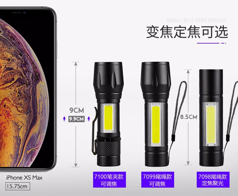 Aic超亮手电筒强光充电户外聚光远射小型便携迷你家用多功能超长续航 旗舰款【COB高亮侧灯】