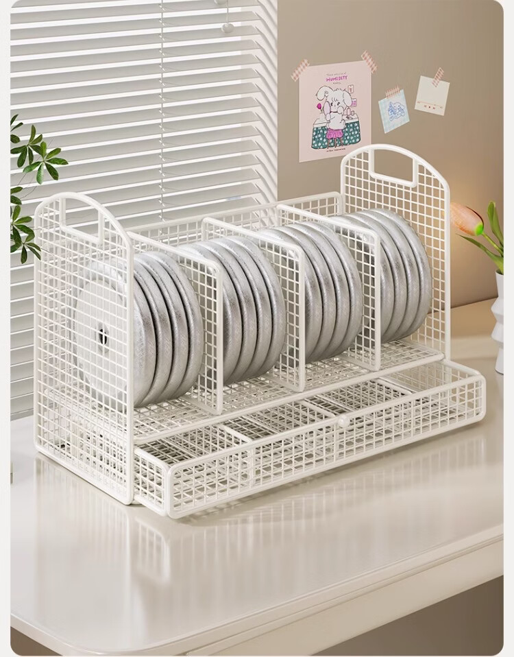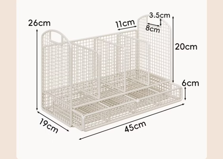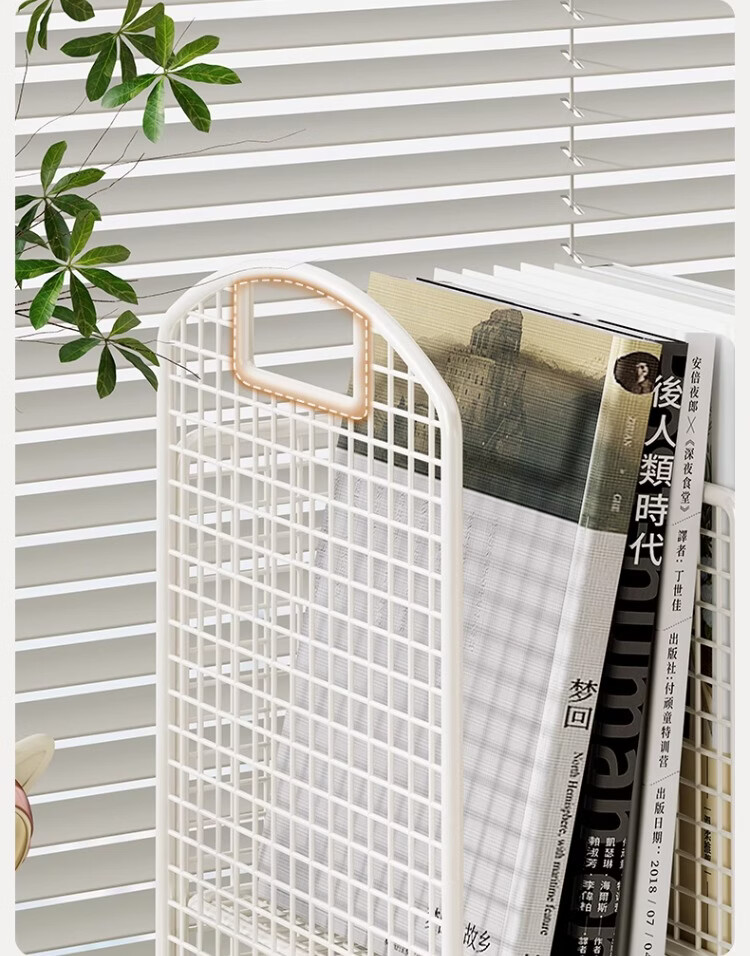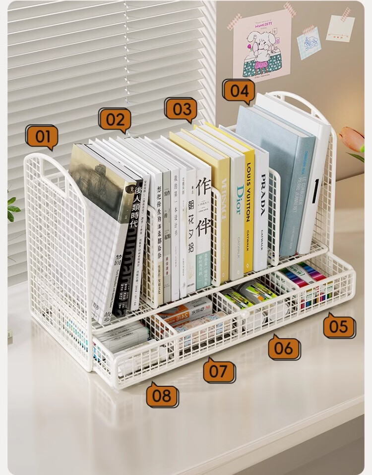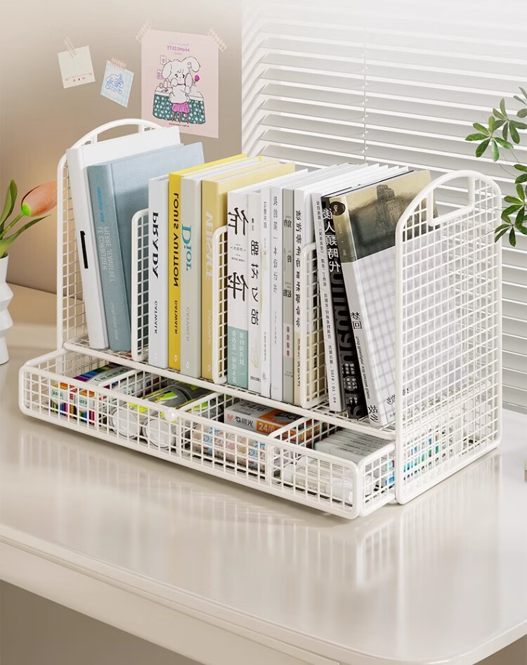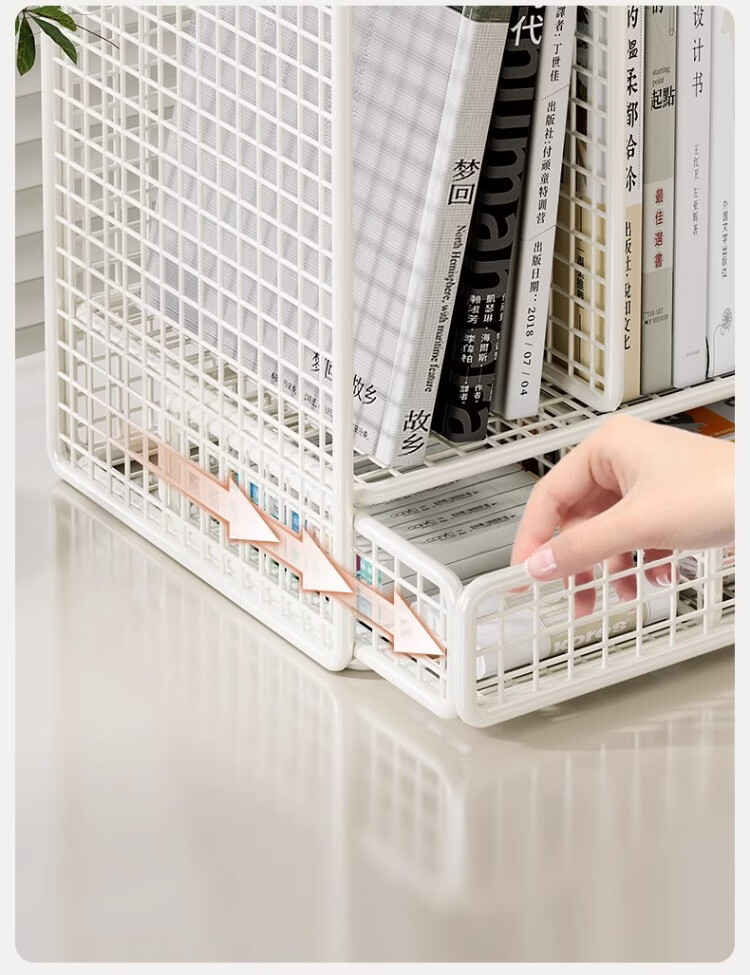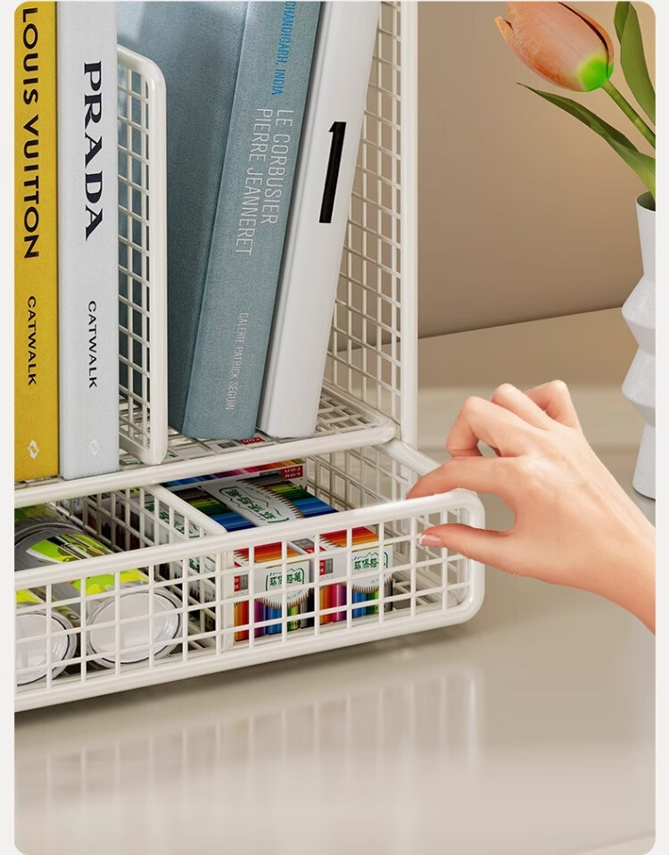 尔思家桌面置物架文件收纳架高级感办公室书立架档案架桌上多层铁艺书架 珍珠白-抽屉书立架-四格