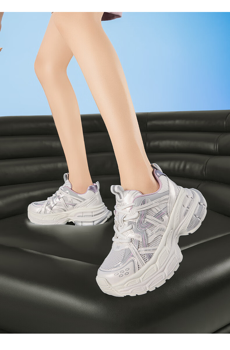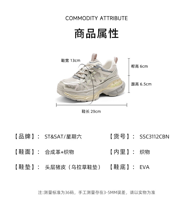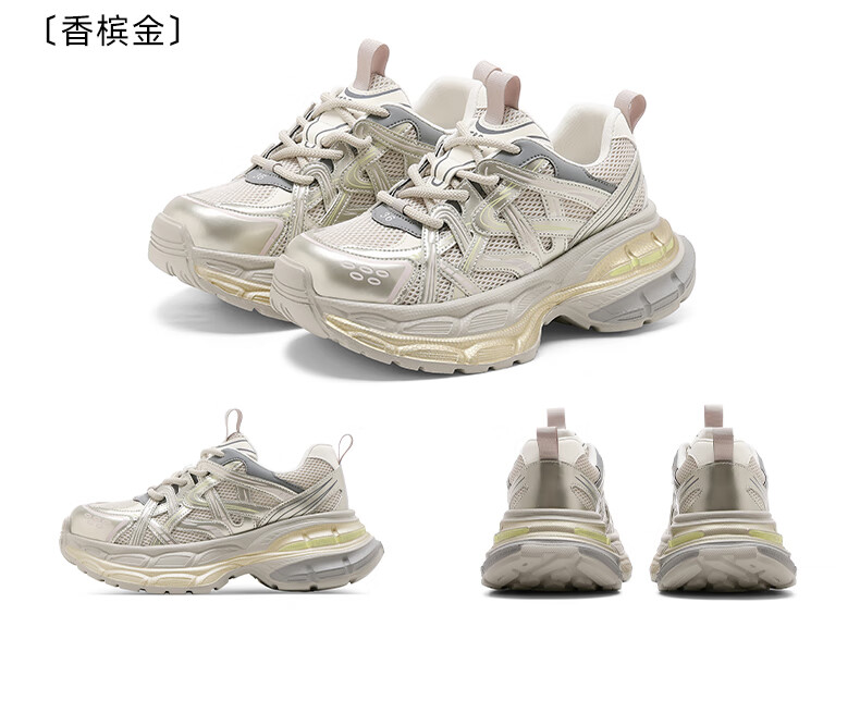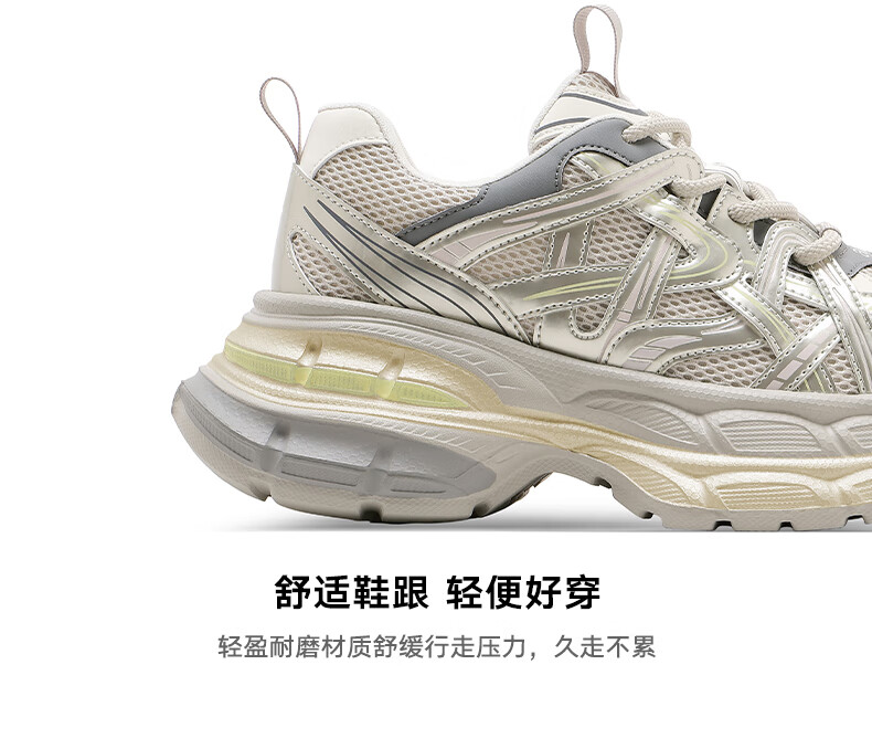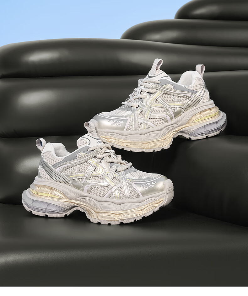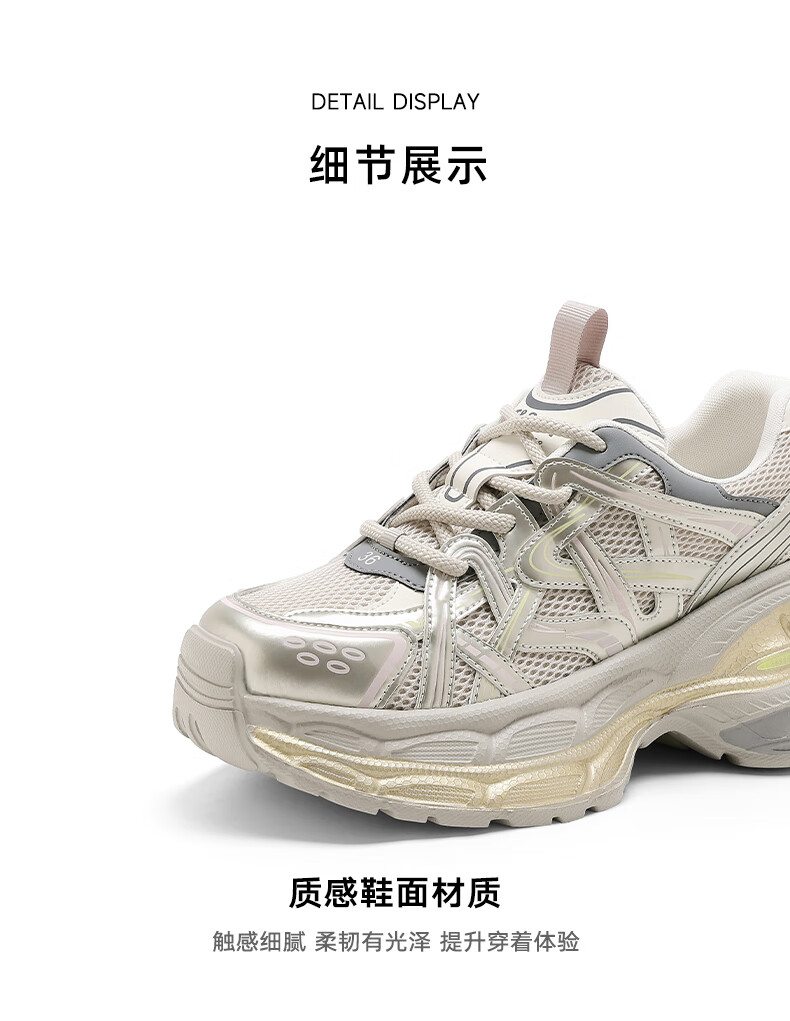 星期六爆款潮酷厚底老爹鞋女2025秋季新款小个子增高设计感休闲鞋 香槟色 35
