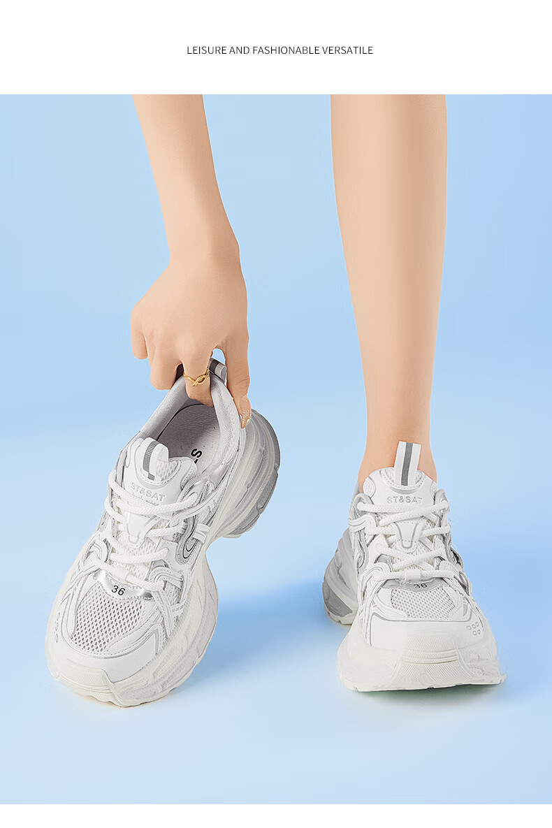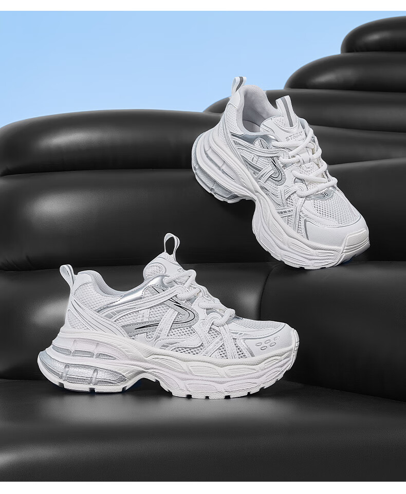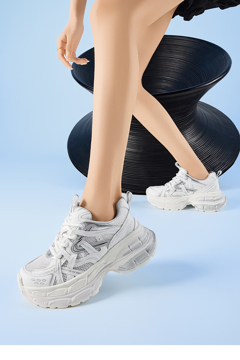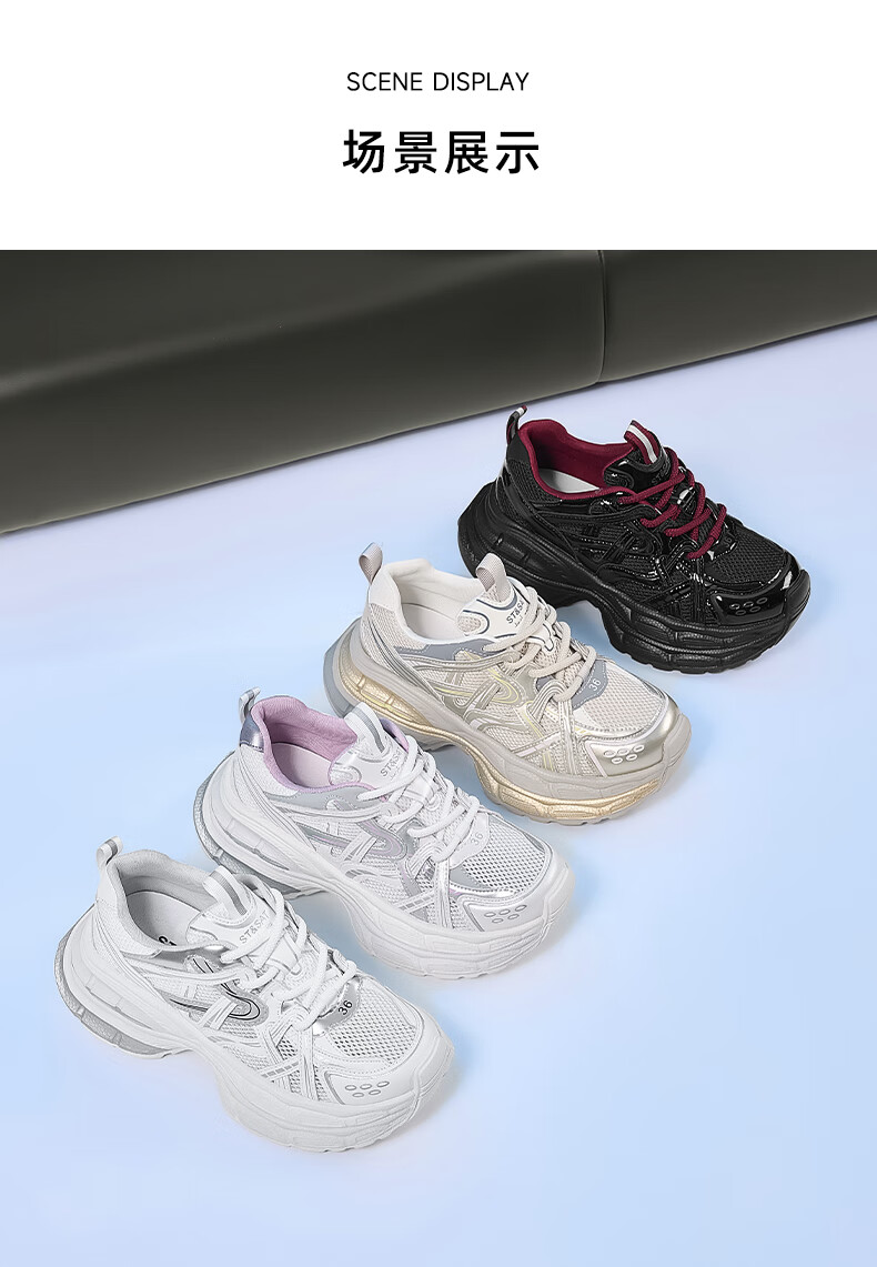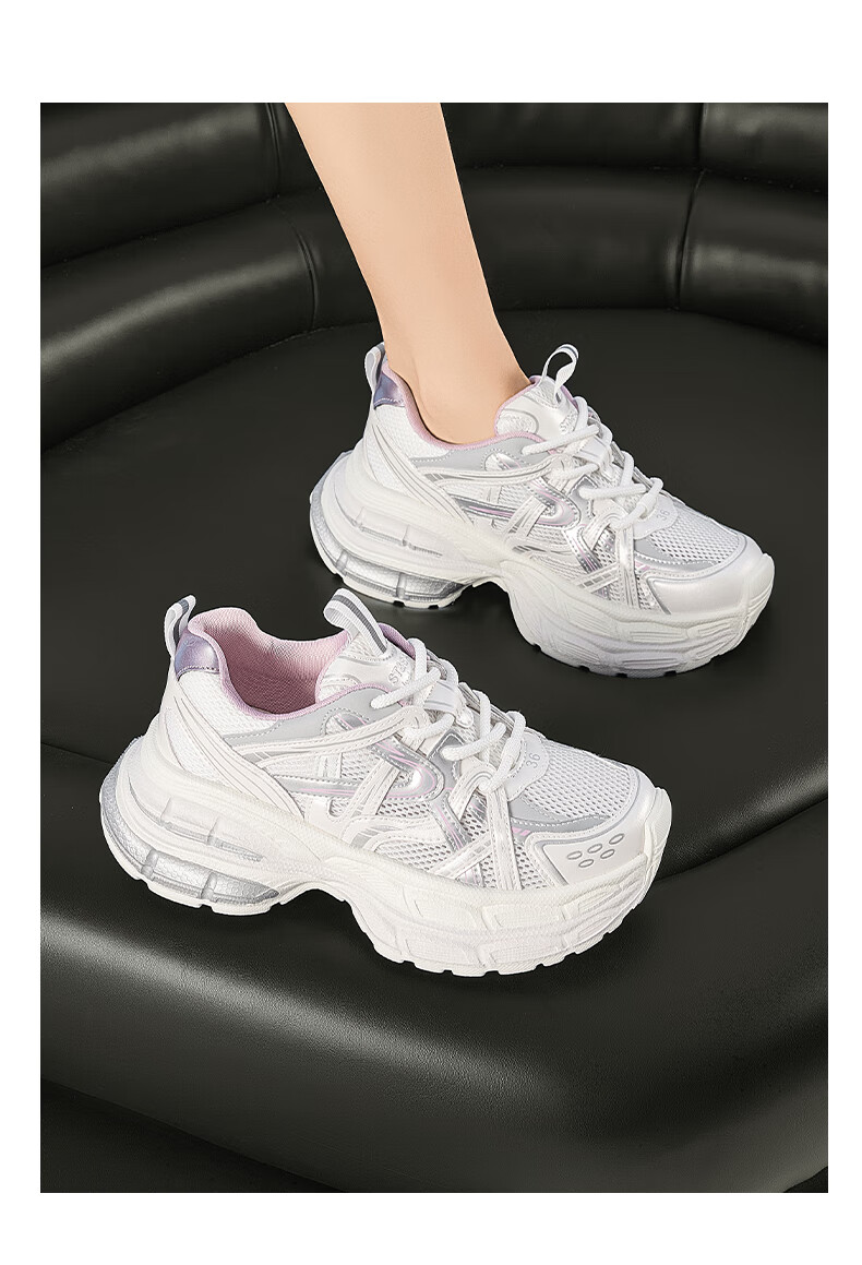 星期六爆款潮酷厚底老爹鞋女2025秋季新款小个子增高设计感休闲鞋 香槟色 35