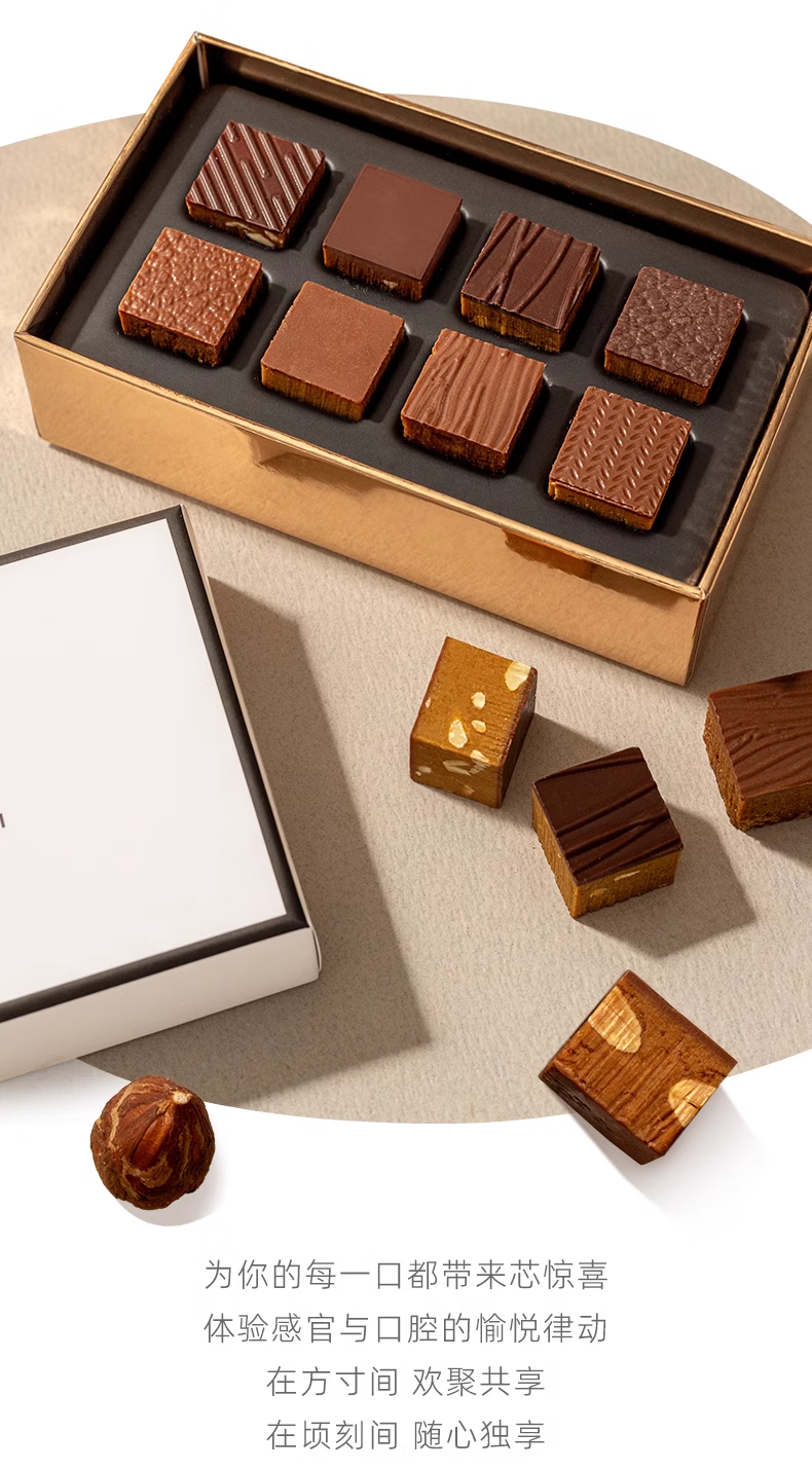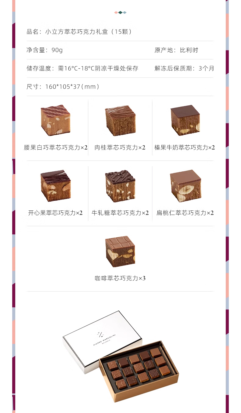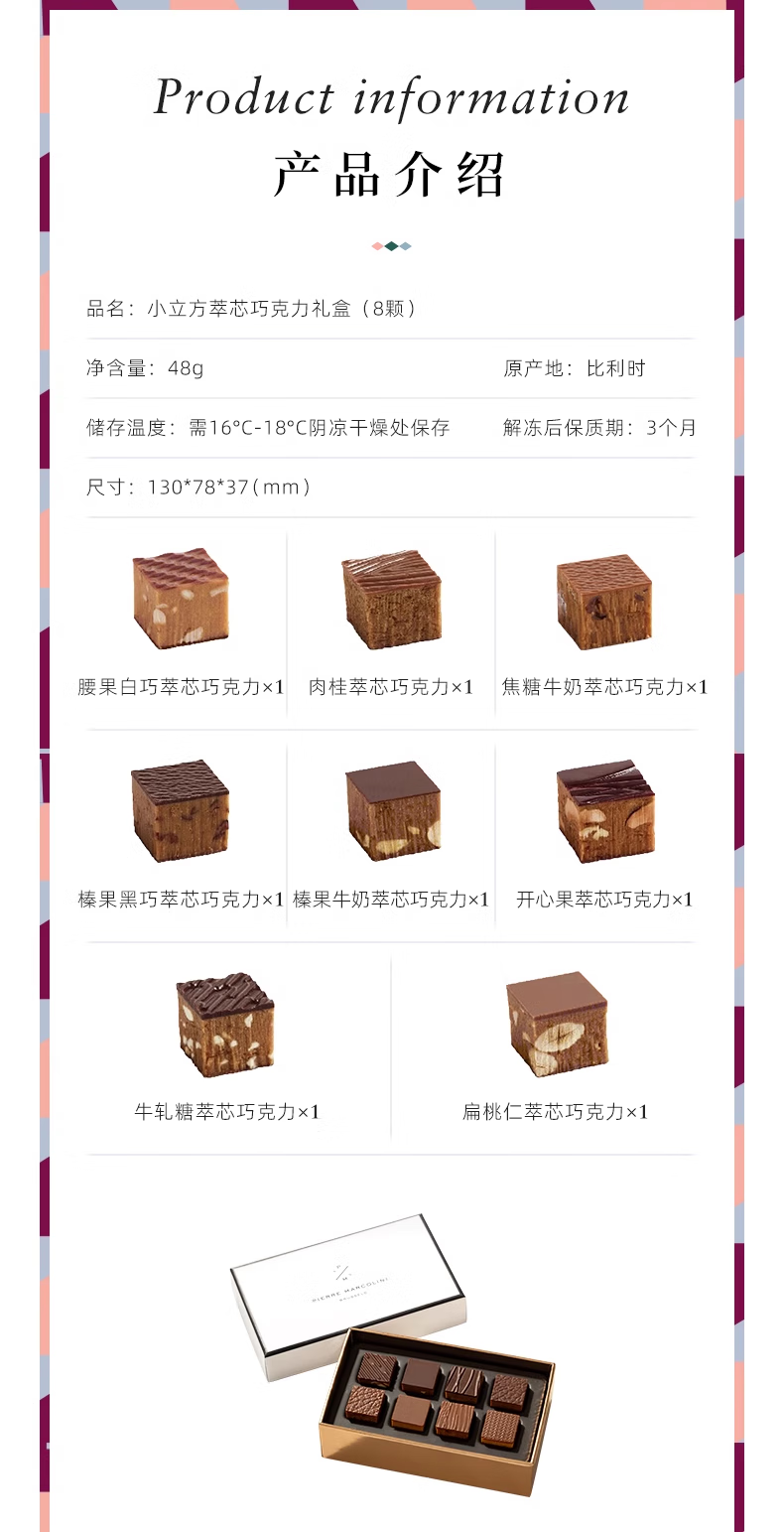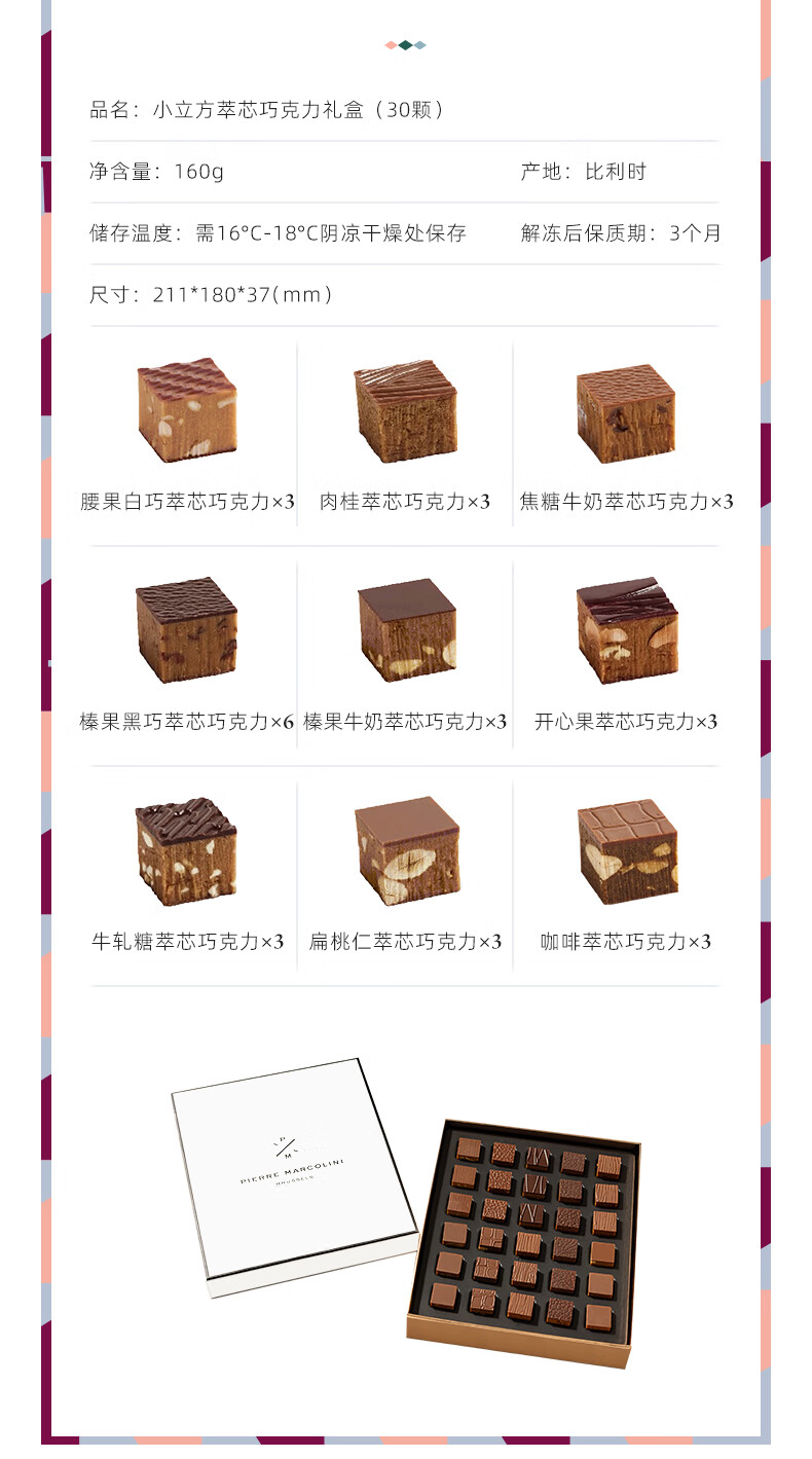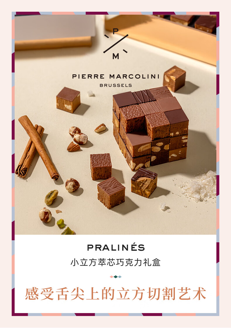 皮尔马可里尼比利时巧克力小立方萃芯坚果混合黑巧克力高端礼盒伴手礼节日礼物 小立方萃芯巧克力礼盒(8颗)