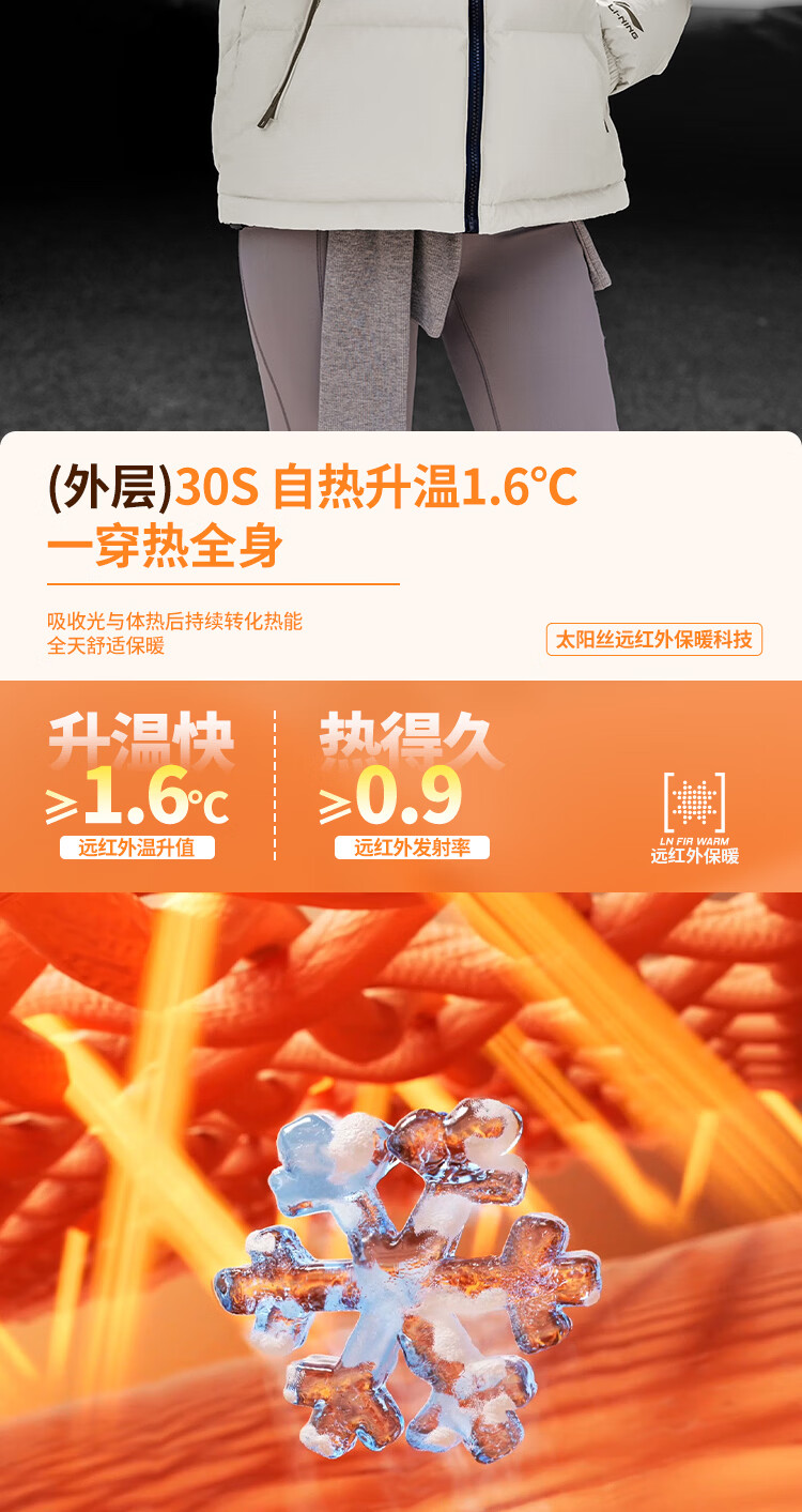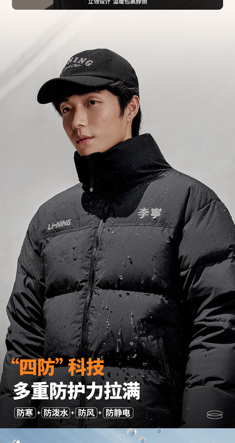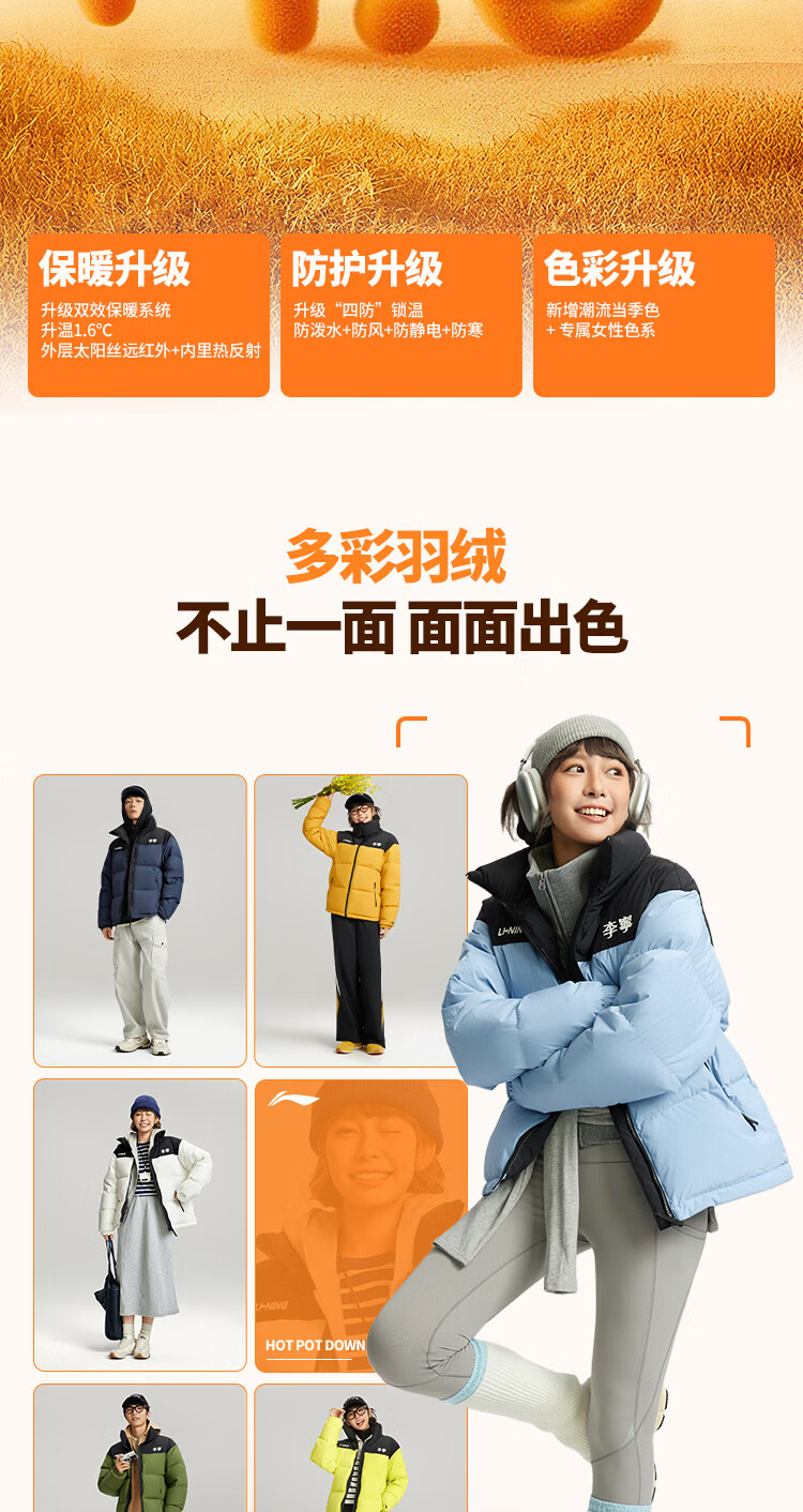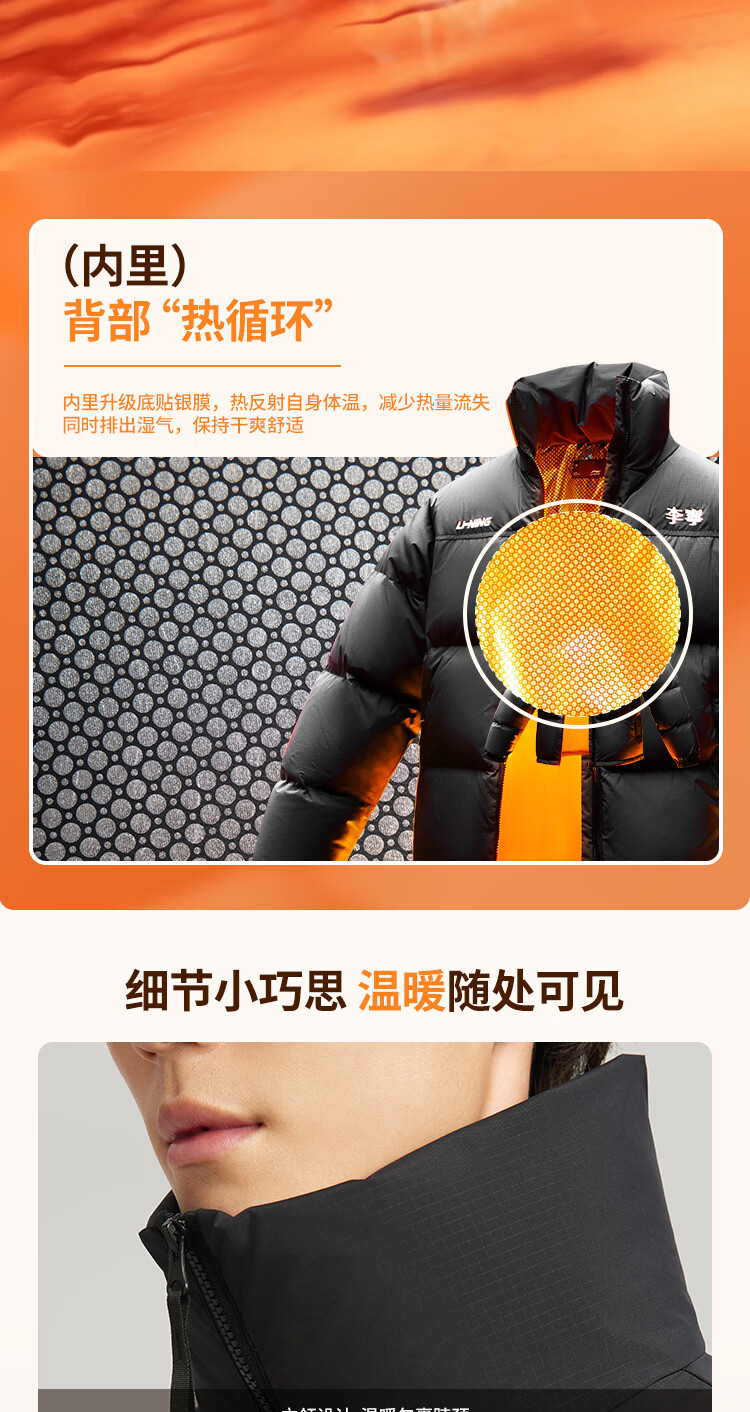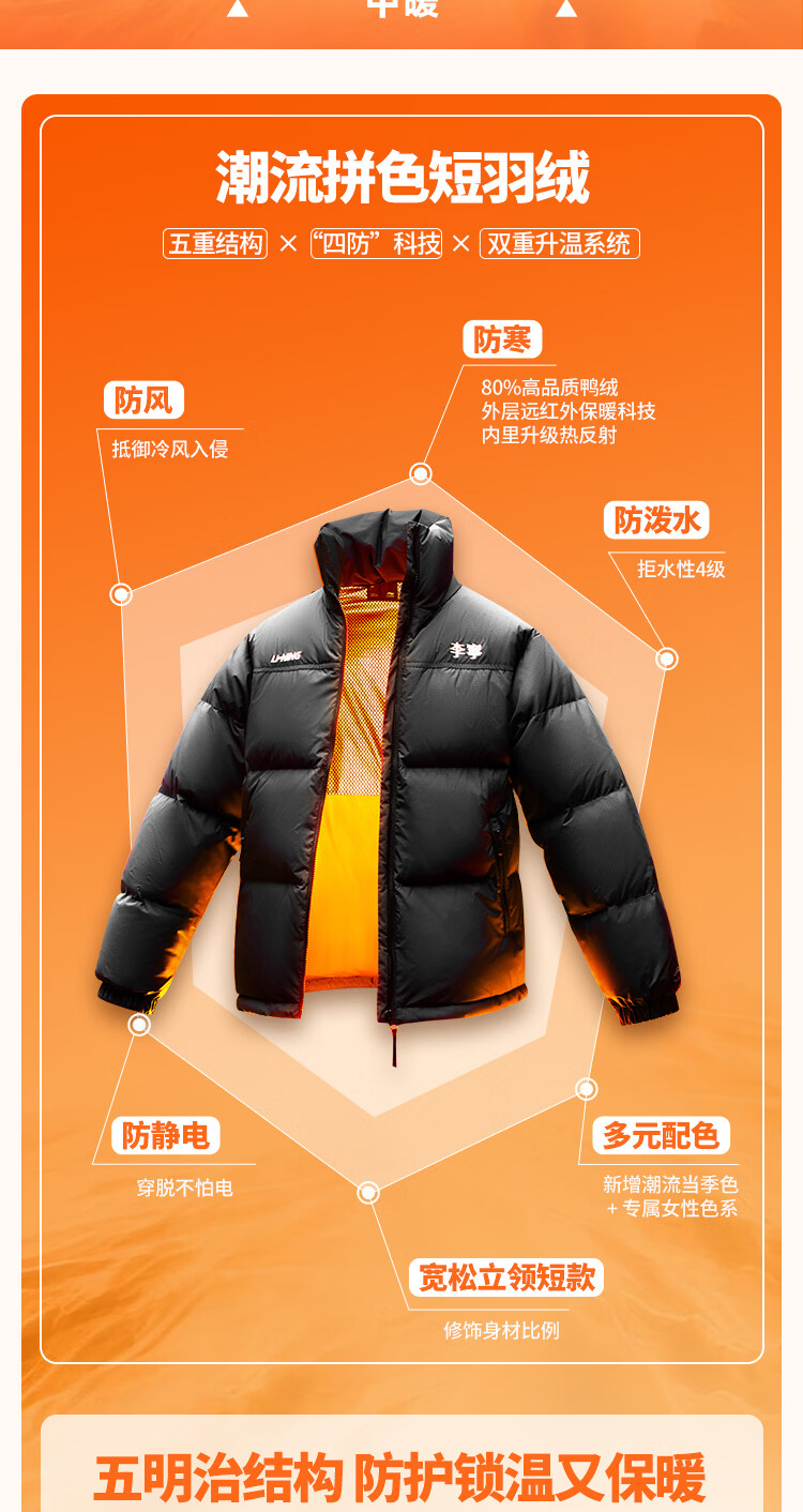 李宁火锅羽绒 新春丨男女同款防泼水防风宽松鸭绒短羽绒服AYMV431