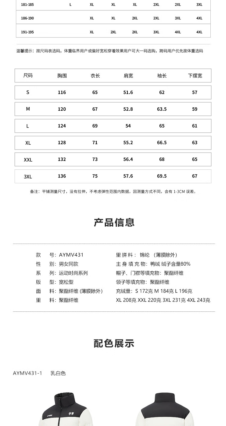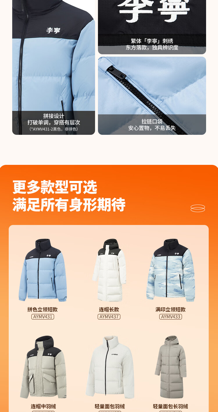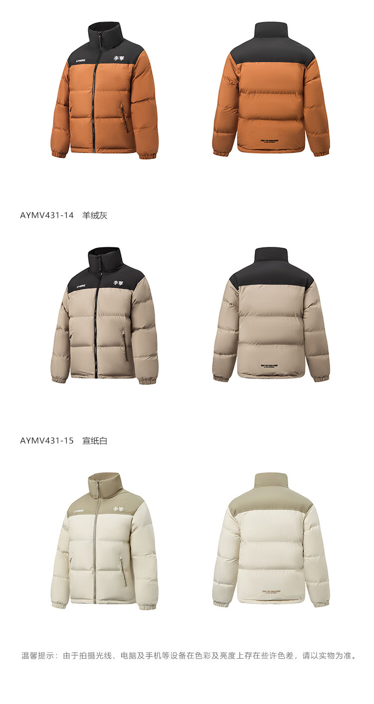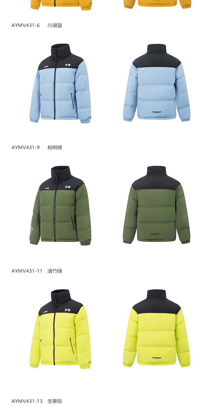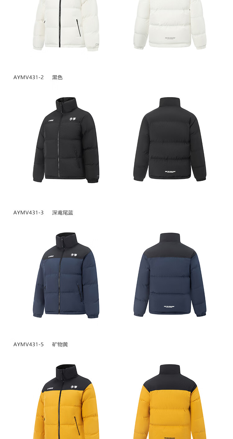 李宁火锅羽绒 新春丨男女同款防泼水防风宽松鸭绒短羽绒服AYMV431