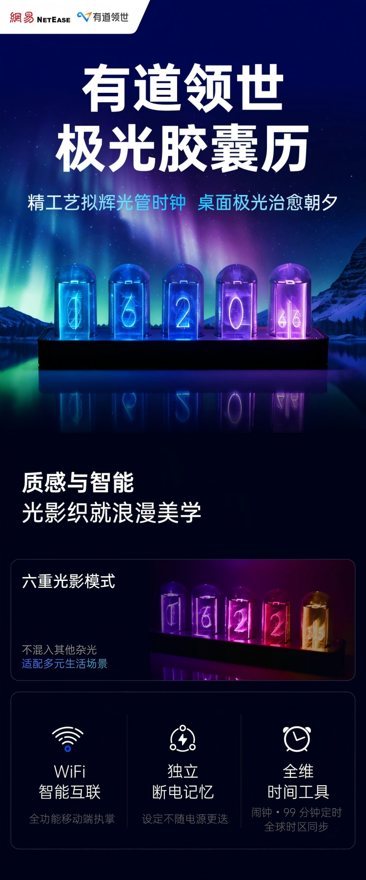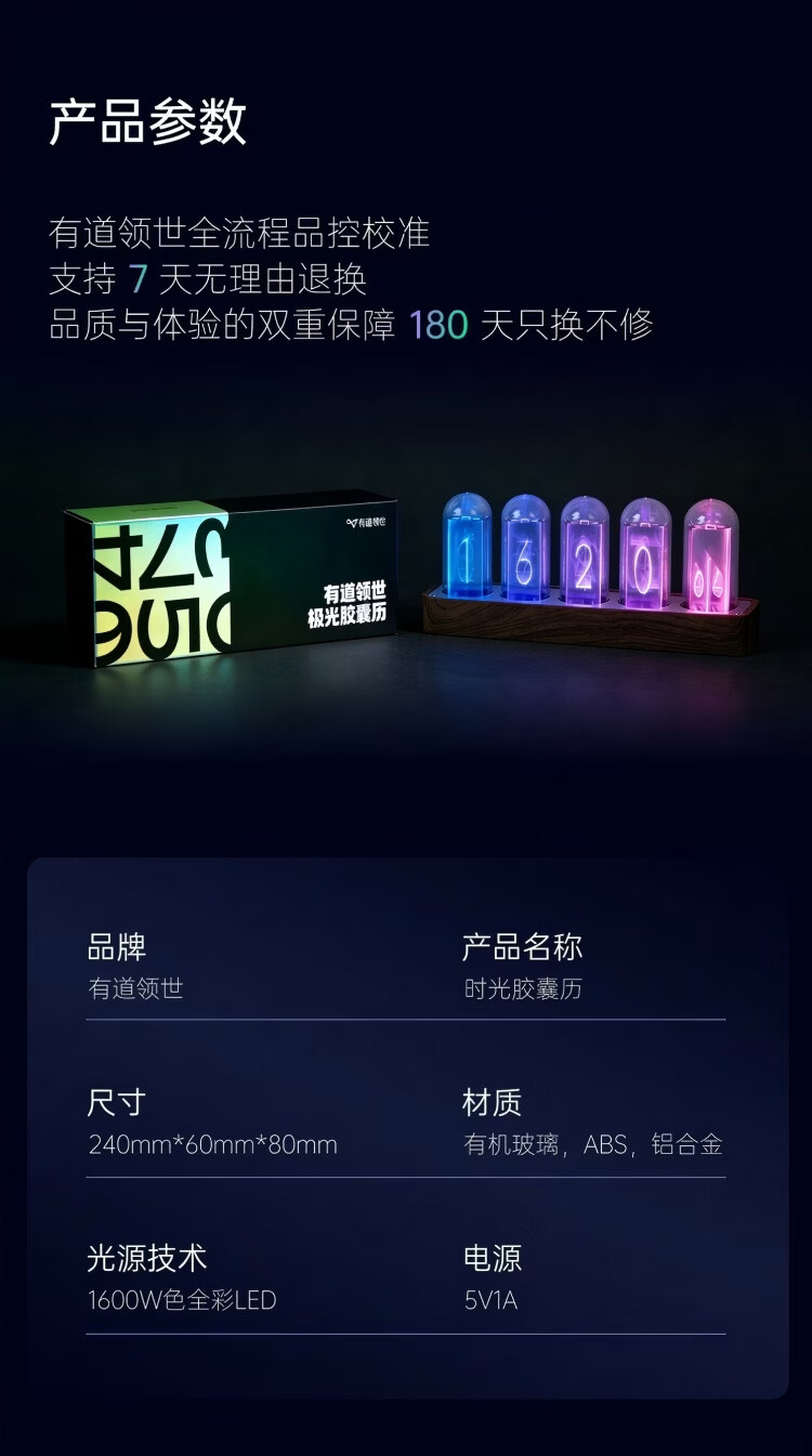 有道领世时光胶囊日历辉光管时钟