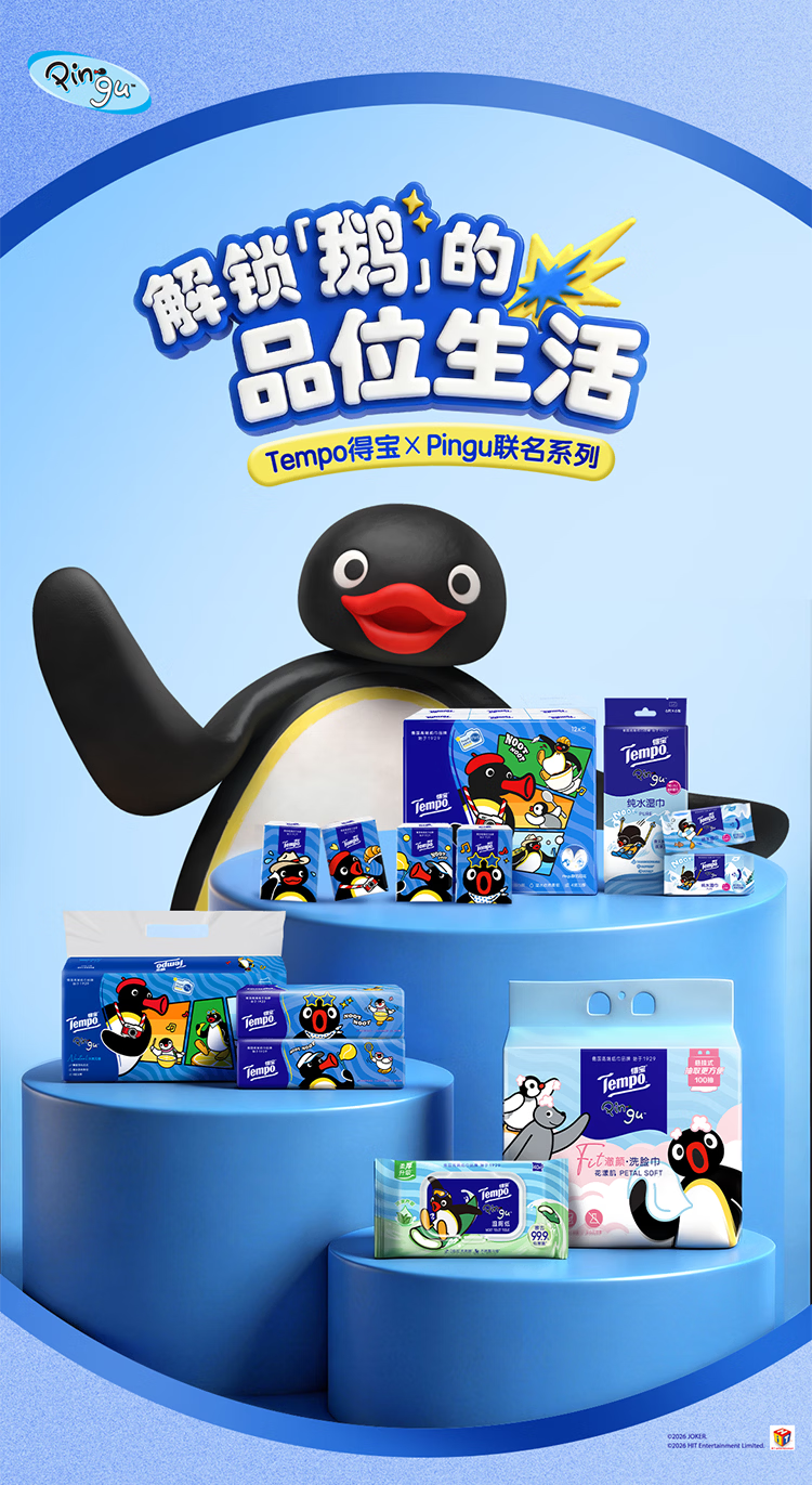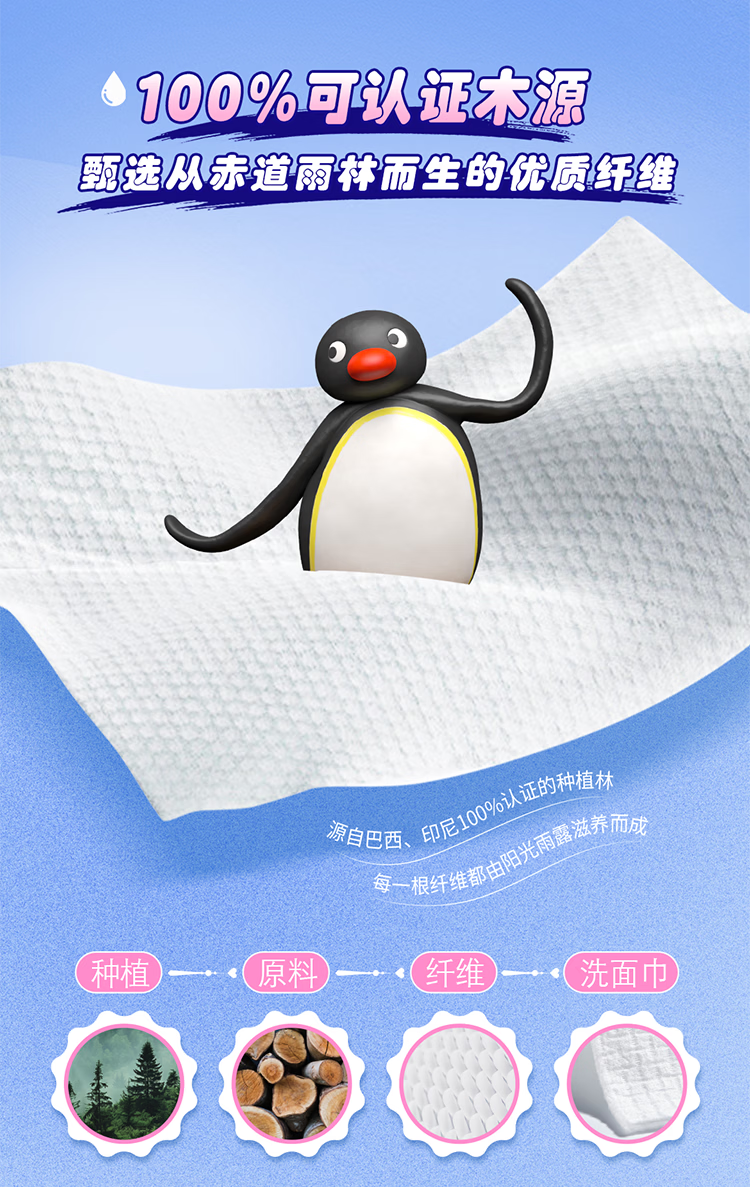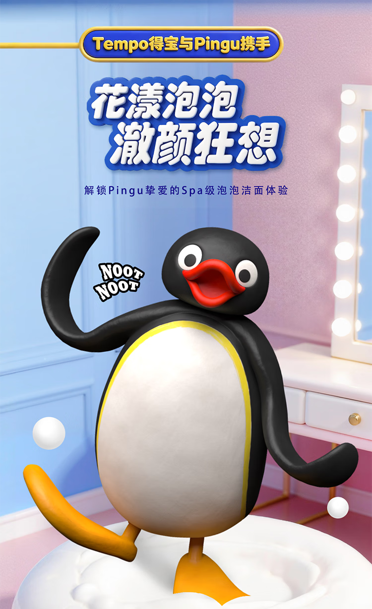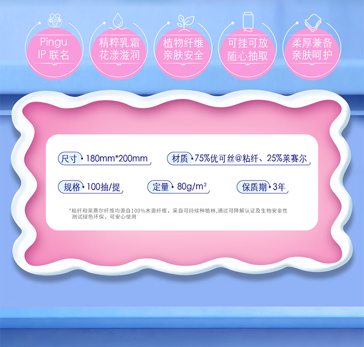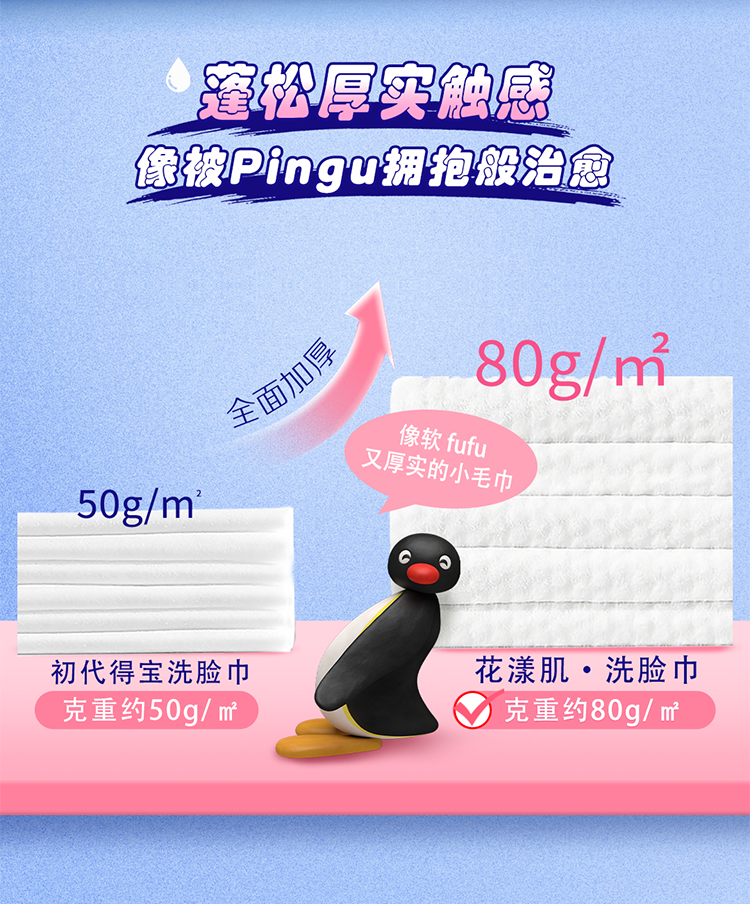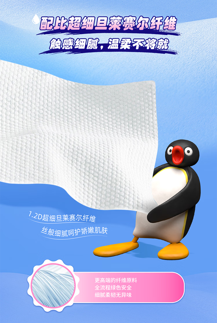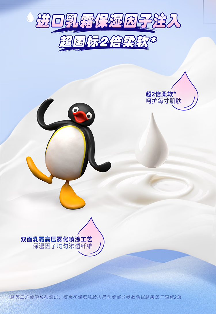 得宝(TEMPO)Pingu联名洗脸巾 100抽/提XL码珍珠纹乳霜绵柔巾 悬挂一次性