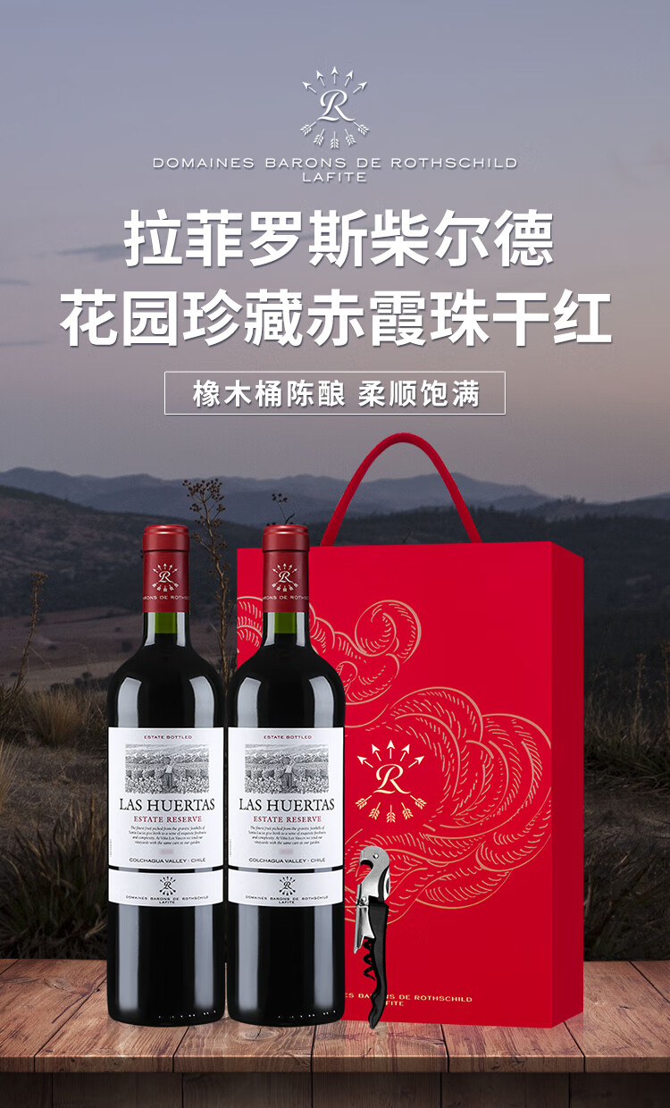 拉菲花园珍藏赤霞珠干红葡萄酒750ml*2支年货礼盒装马年送礼 进口红酒