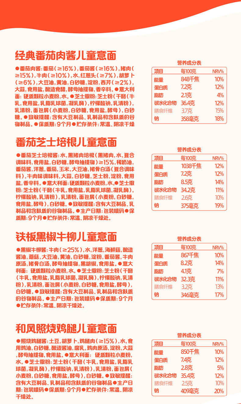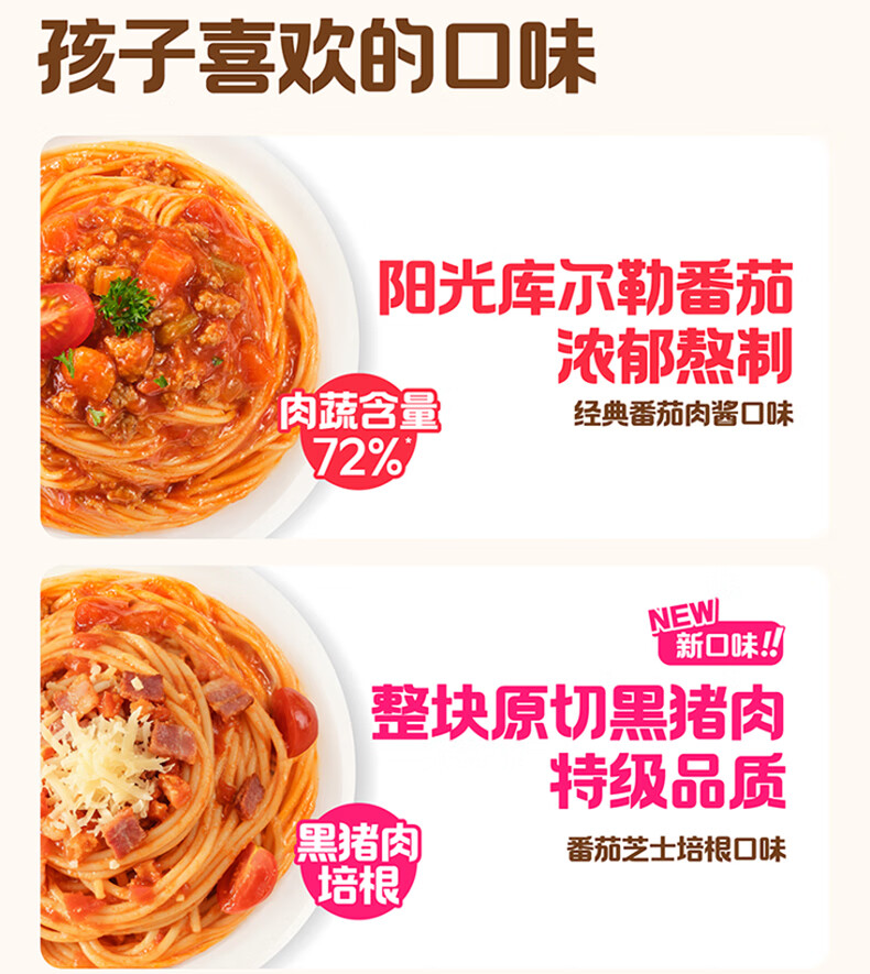 怡芽儿童意面番茄肉酱意大利面宝宝意面5分钟速食儿童早餐191.5g
