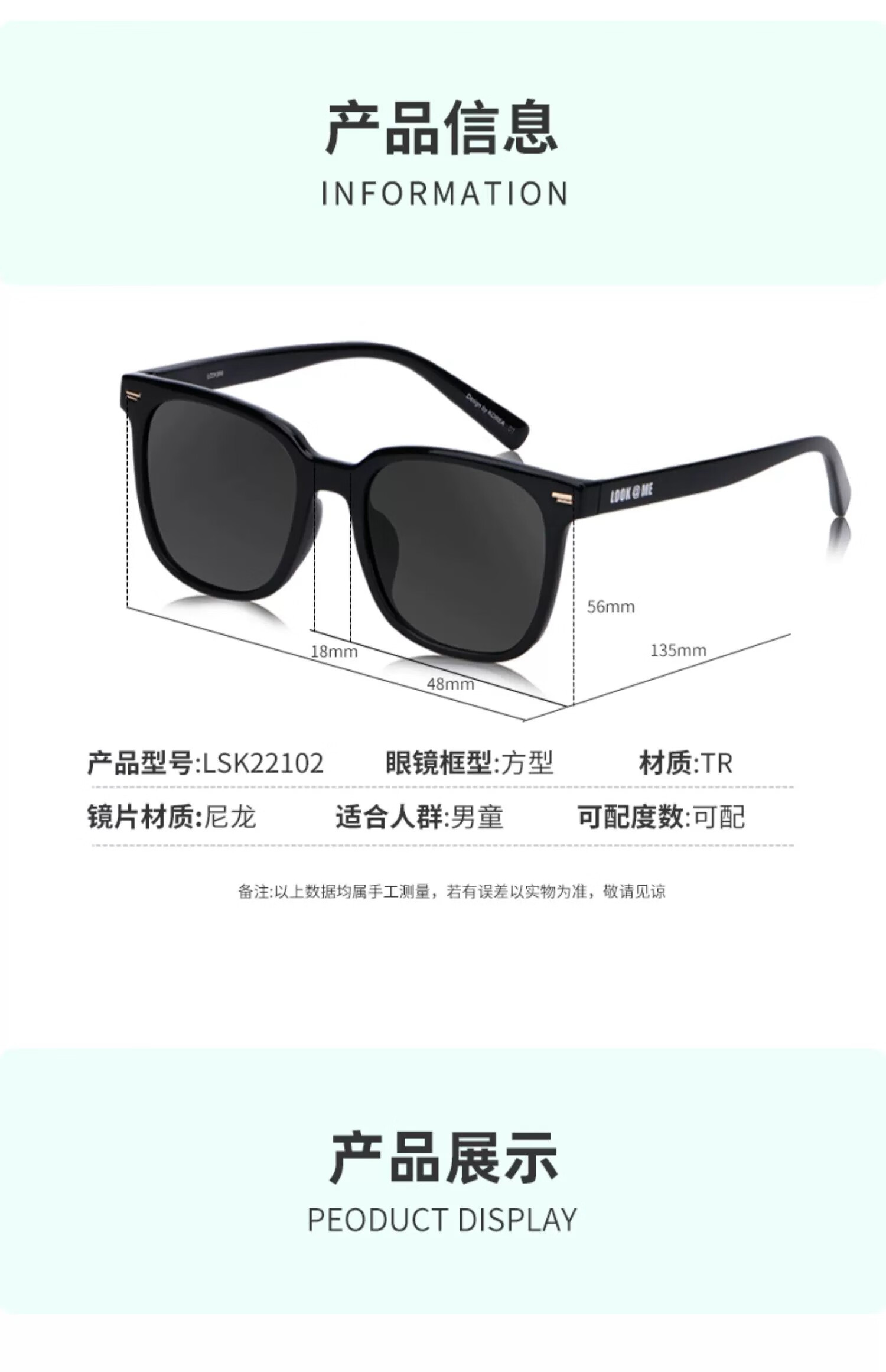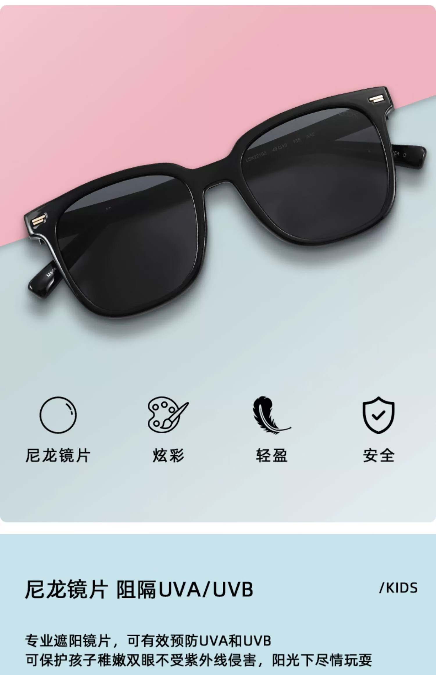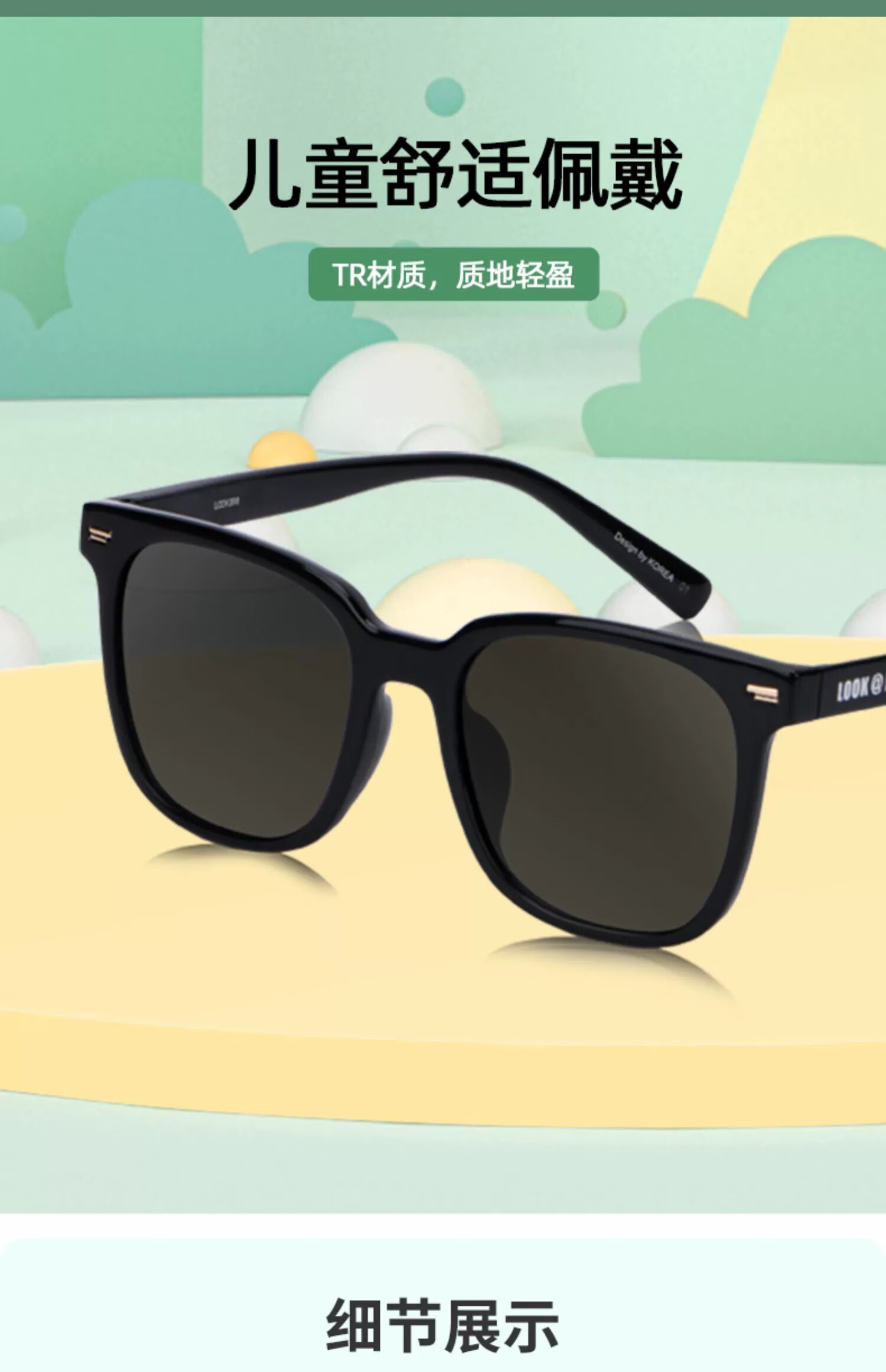 LOOK眼镜儿童款防晒墨镜新款高级感GM同款素颜方框超轻TR太阳镜夏开学