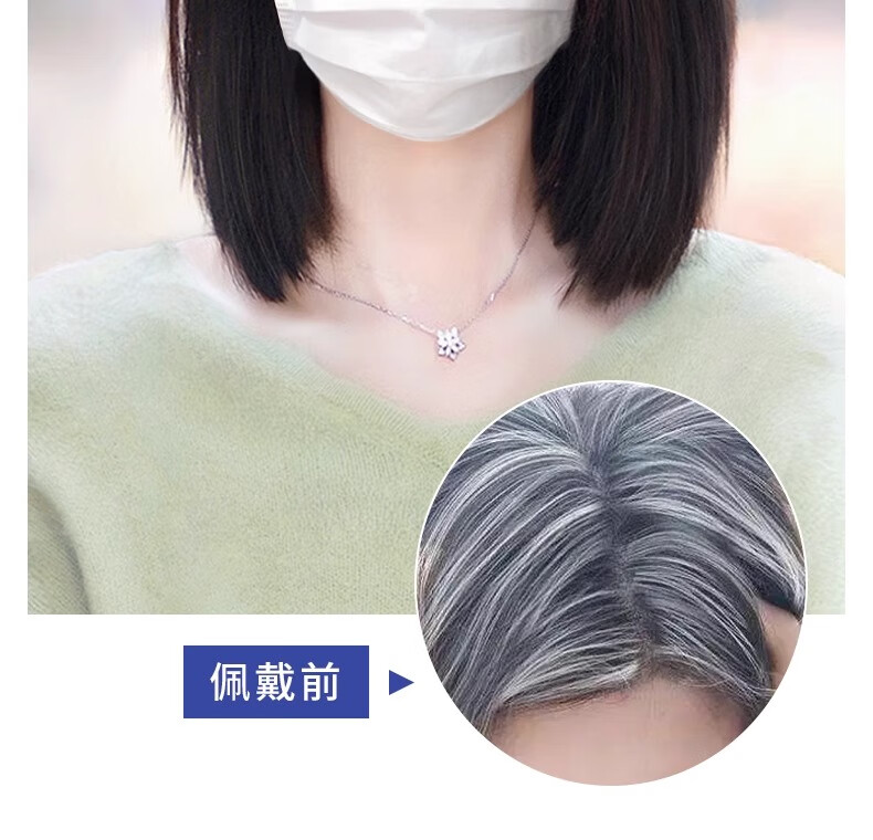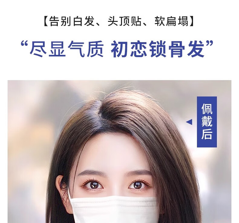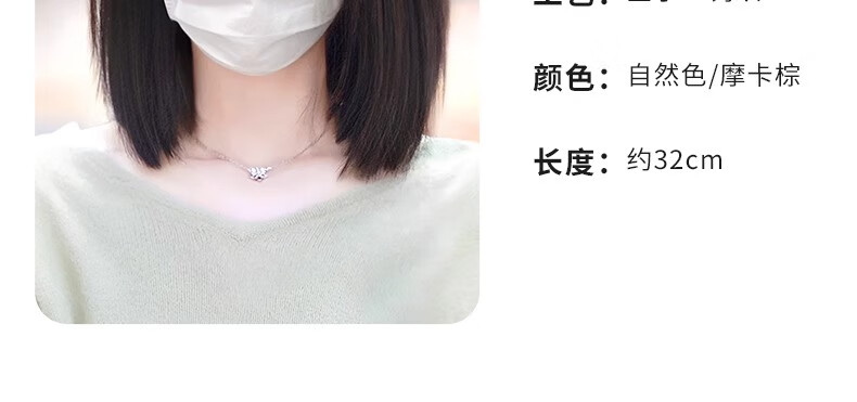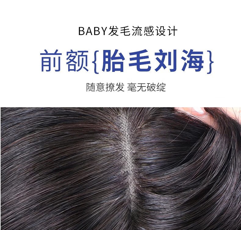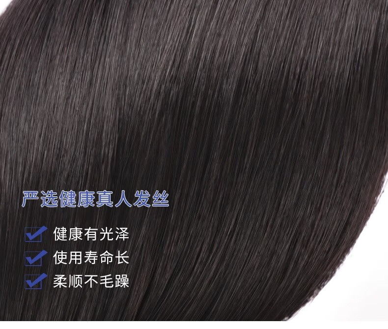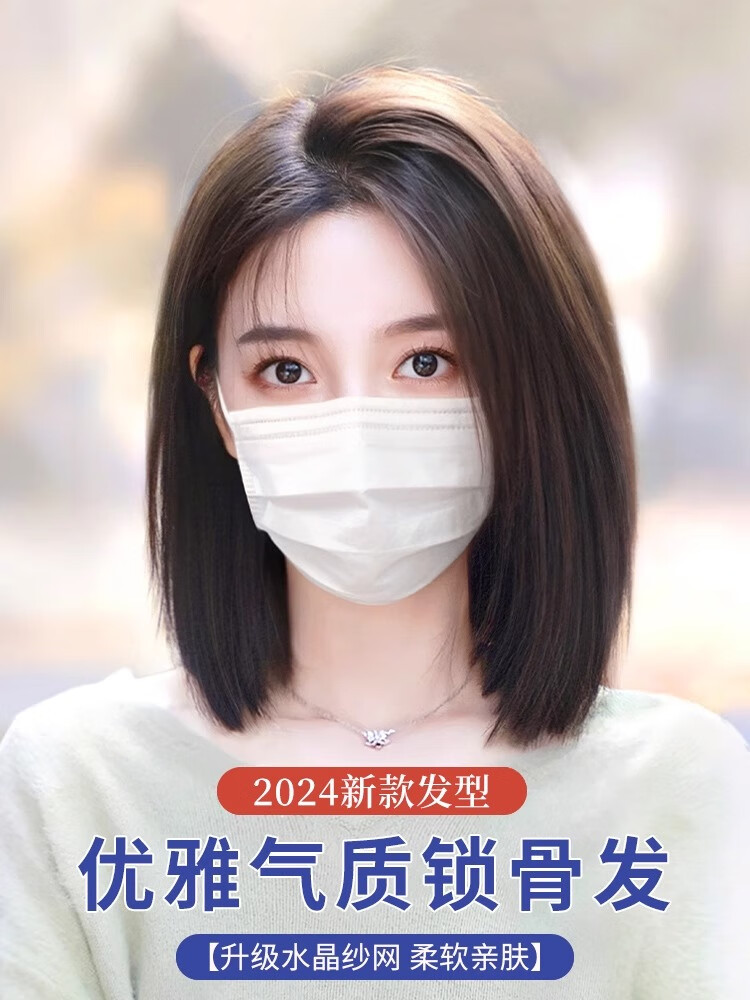 岚婷假发女全头套自然真发全真人发空气刘海减龄锁骨发无痕整顶假发套 主图款-斜分- 自然色 短发 32cm