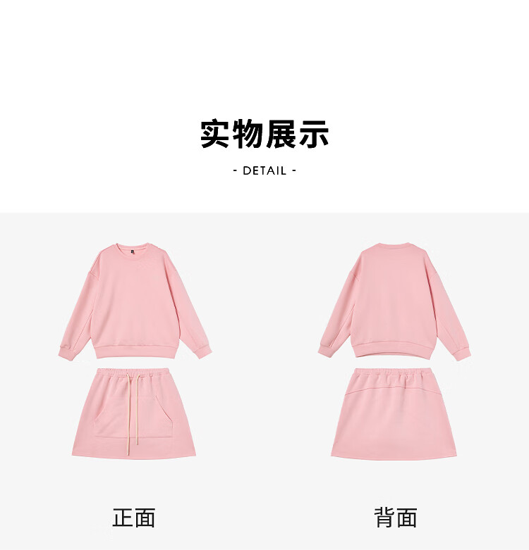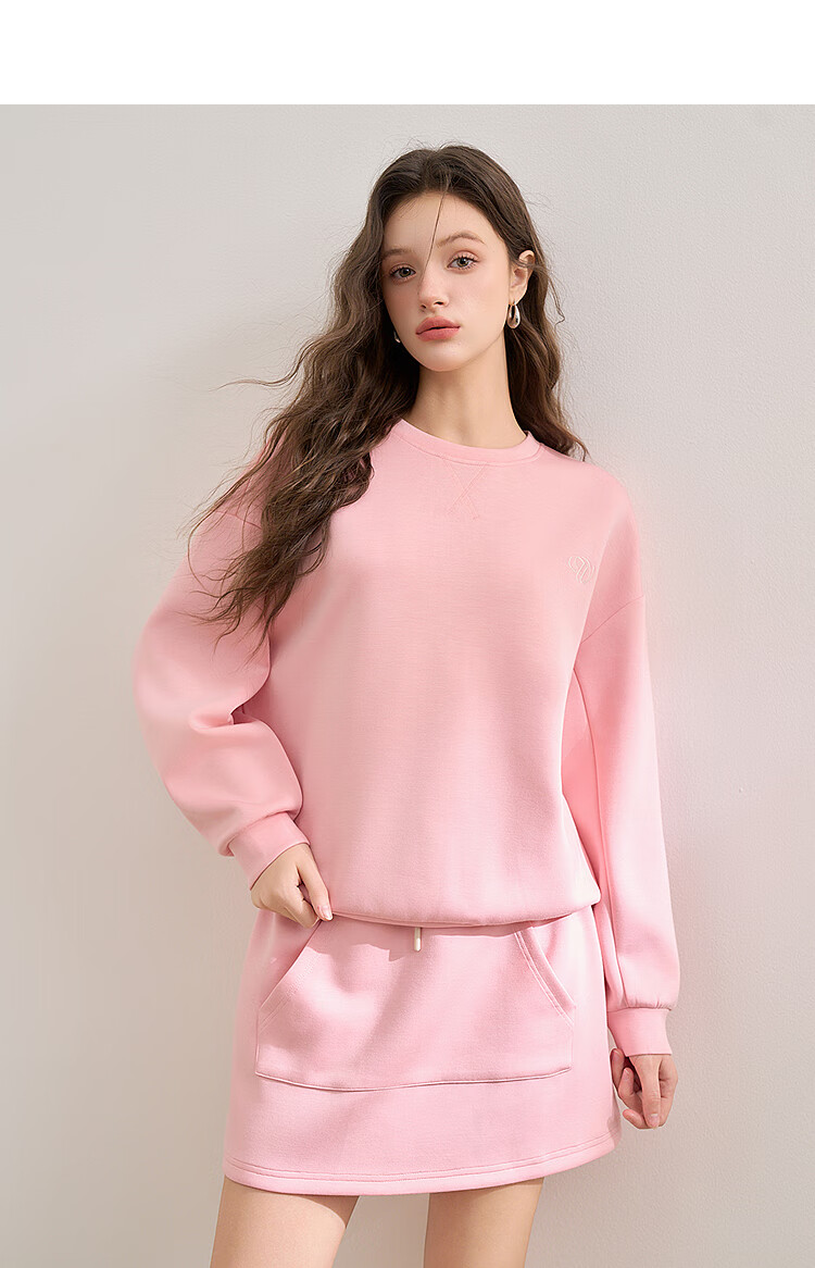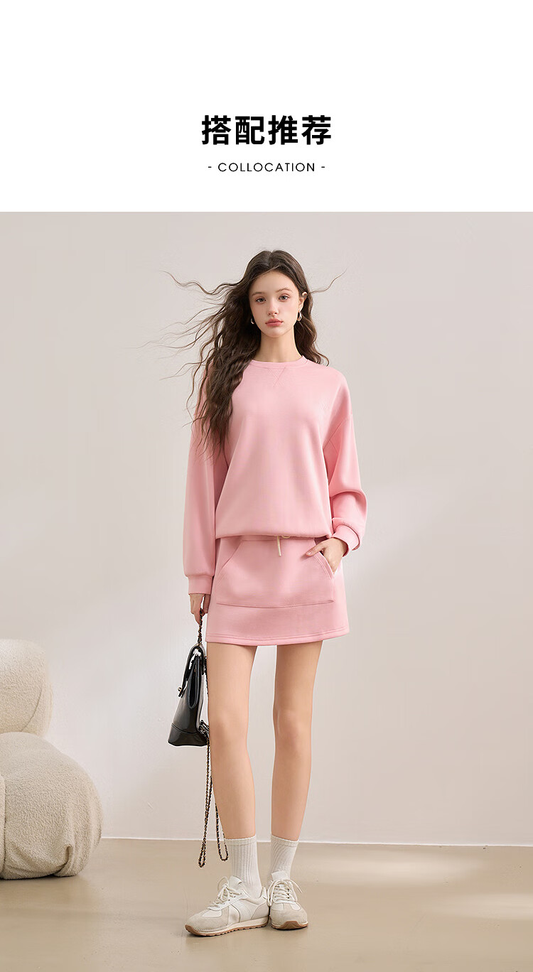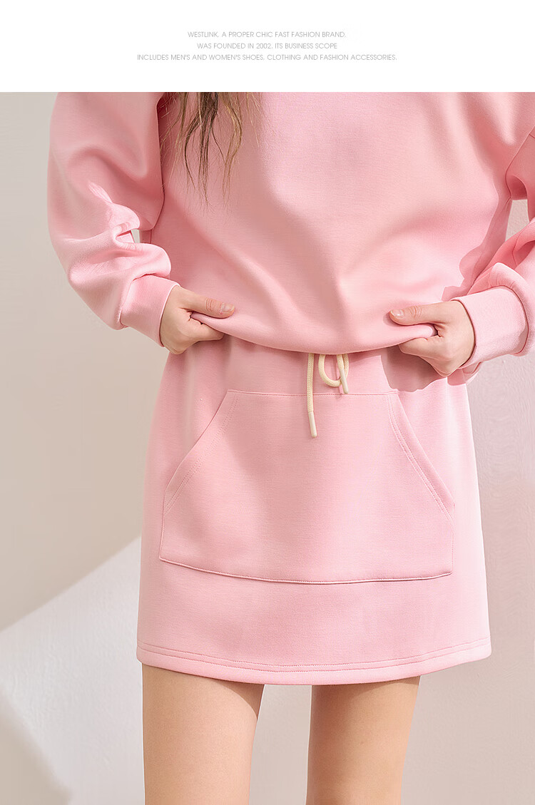 西遇XD短裙运动套装女2025年秋季新款圆领长袖宽松卫衣两件套 粉色 XL (170)