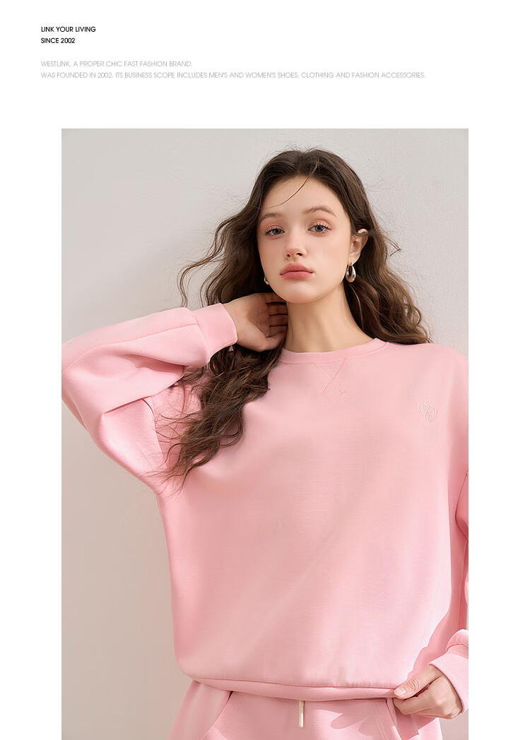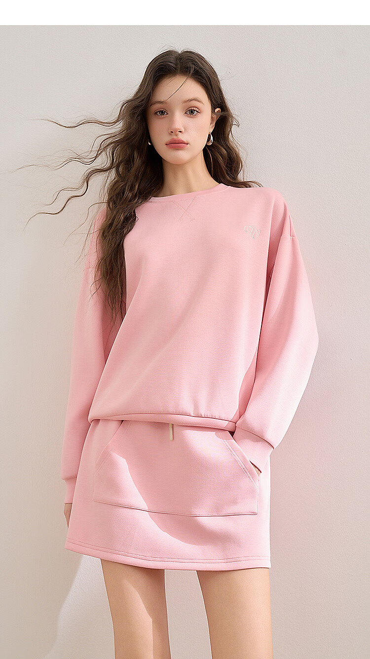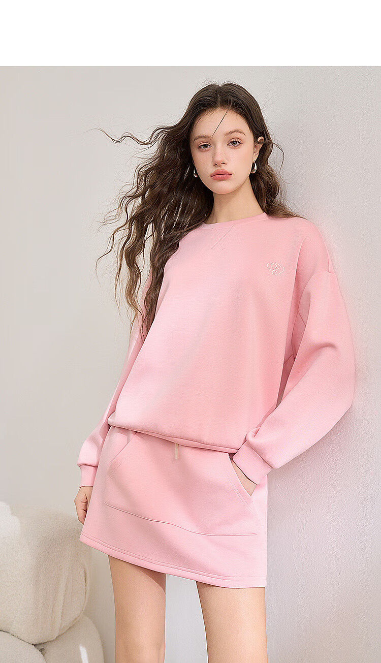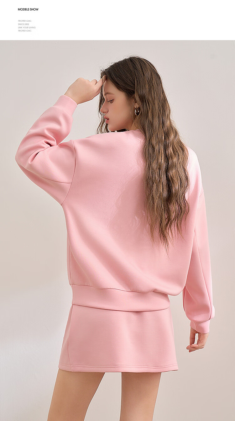西遇XD短裙运动套装女2025年秋季新款圆领长袖宽松卫衣两件套 粉色 XL (170)