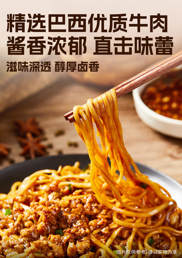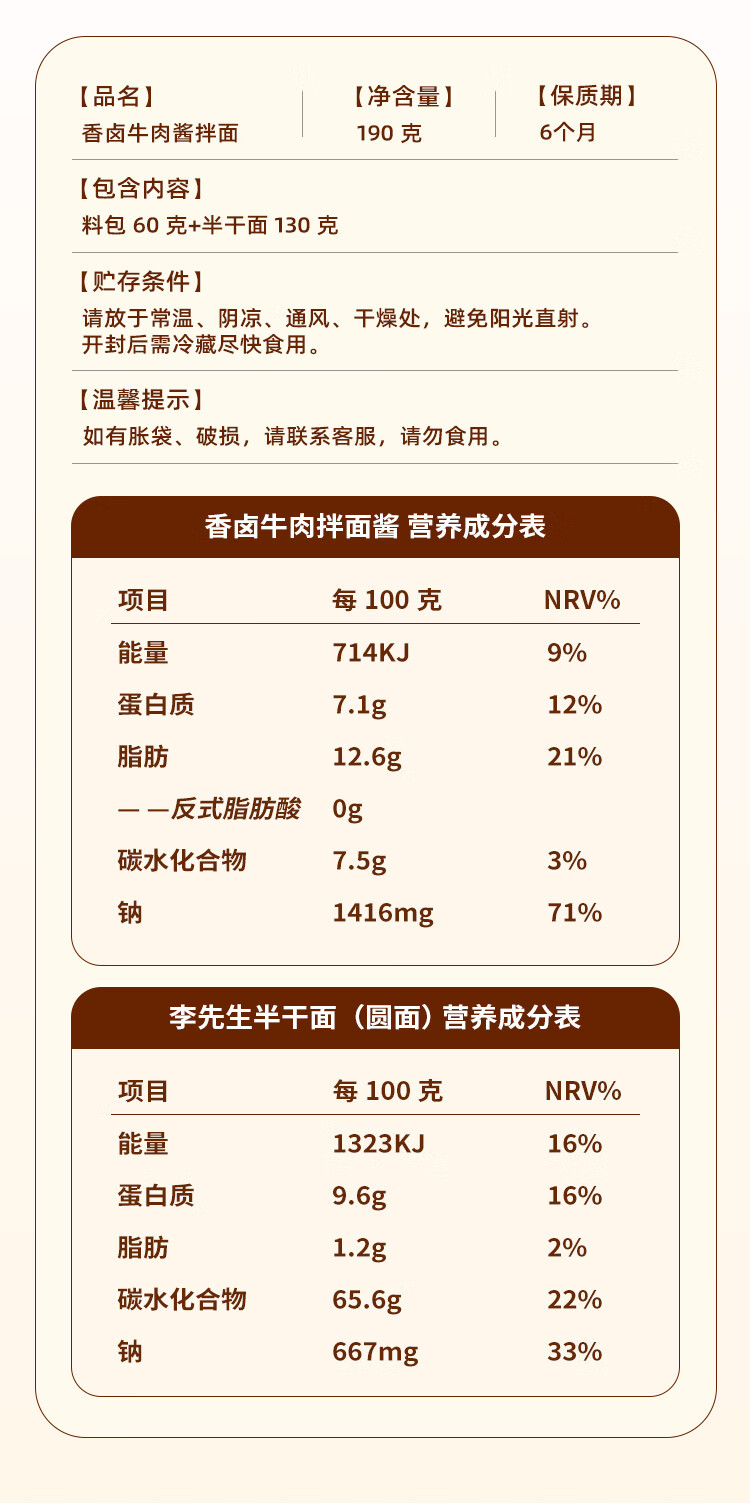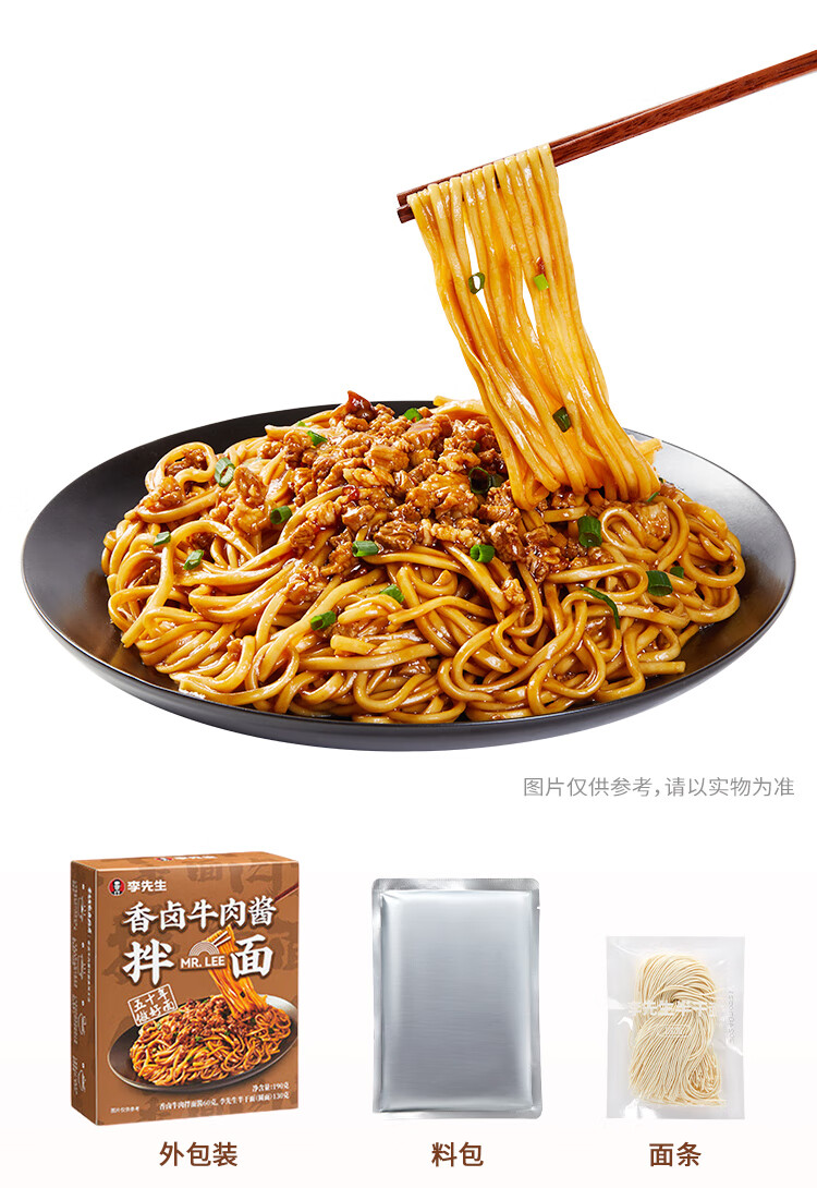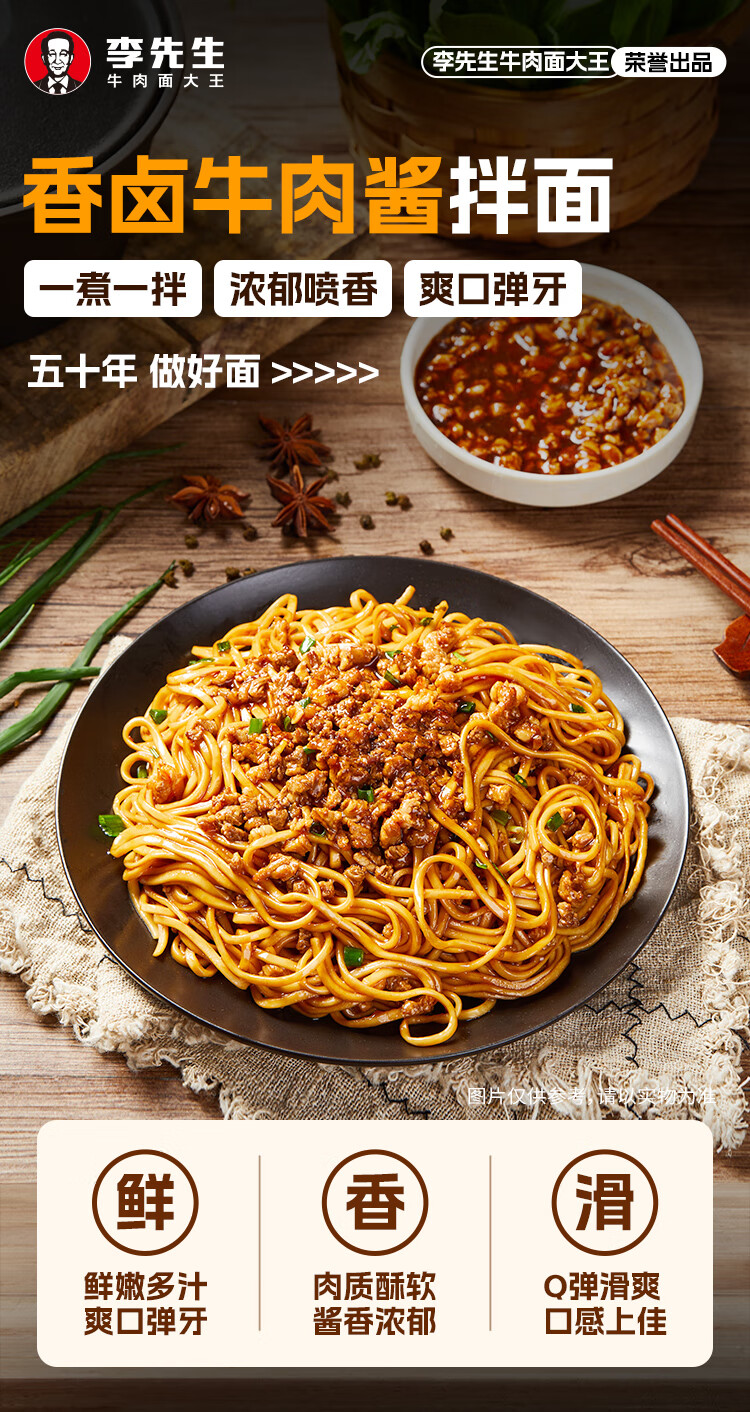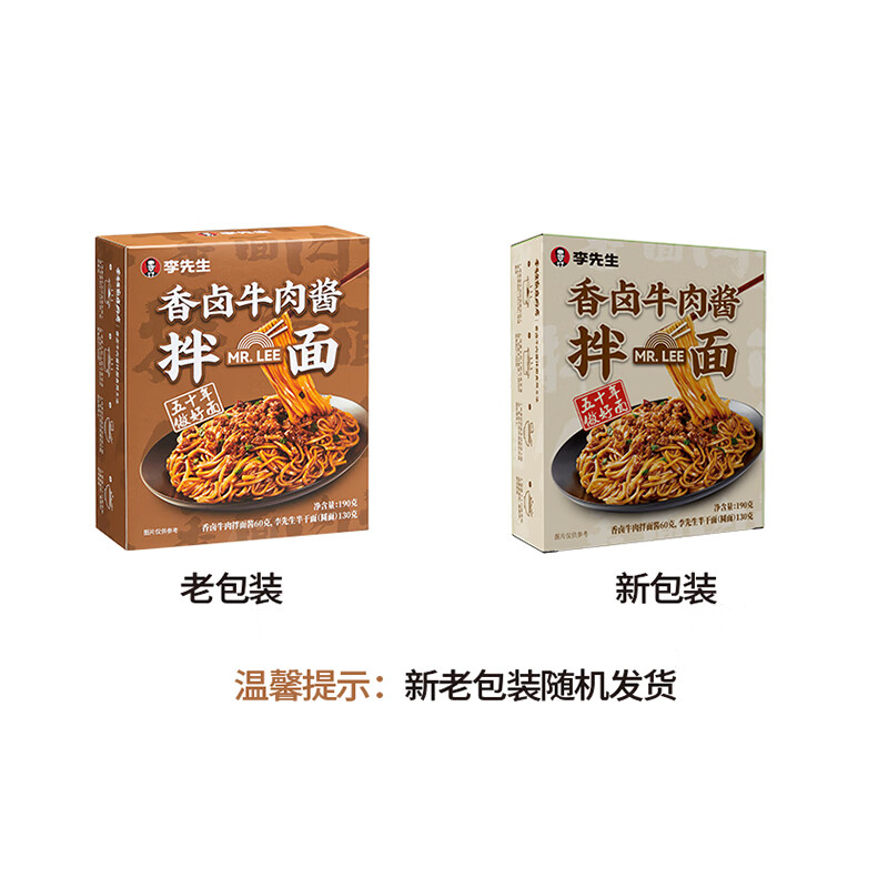 李先生香卤牛肉酱拌面 非油炸方便面 速食泡面190g/盒