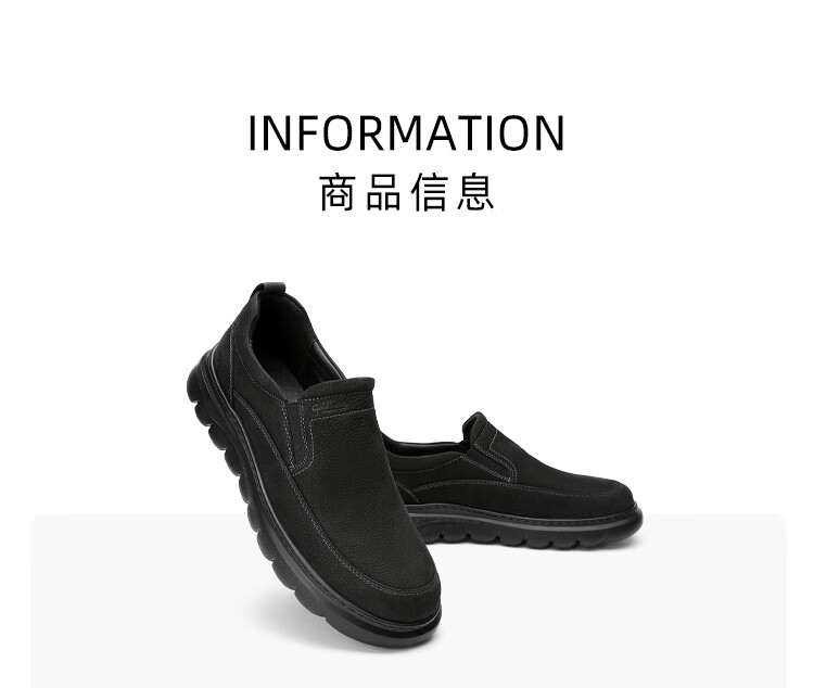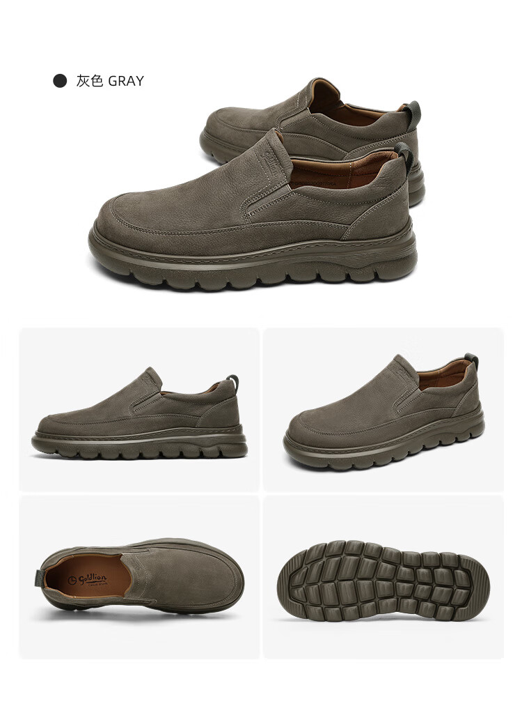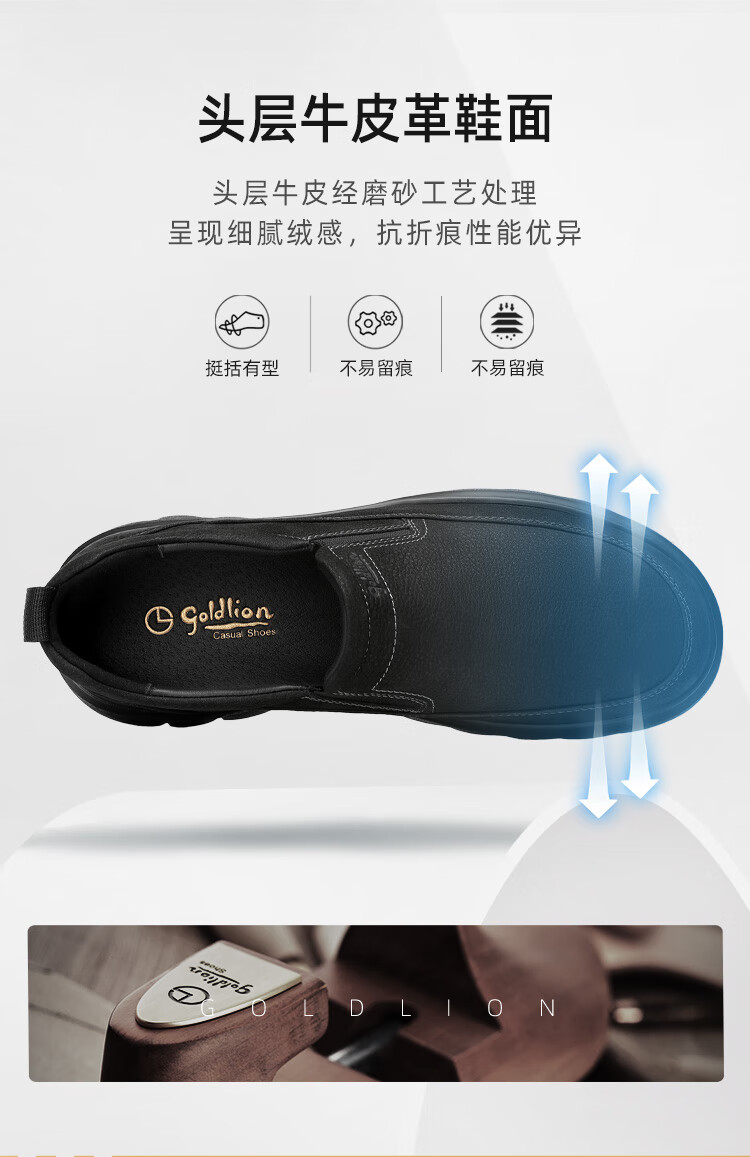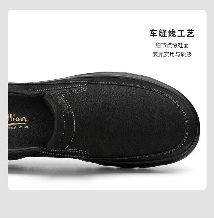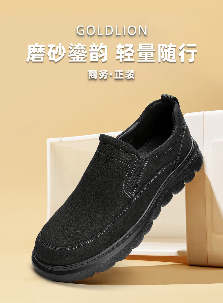 金利来(Goldlion)男鞋25年秋新品商务通勤磨砂牛皮套脚休闲鞋G508530091AAA黑色42