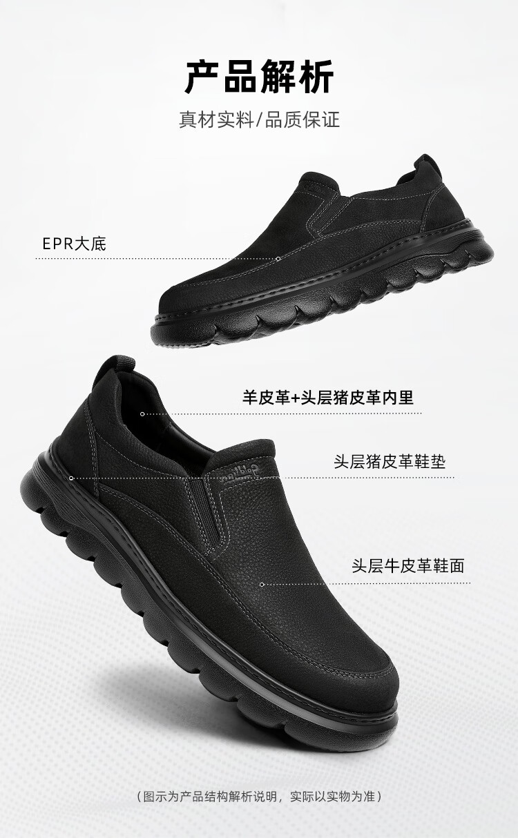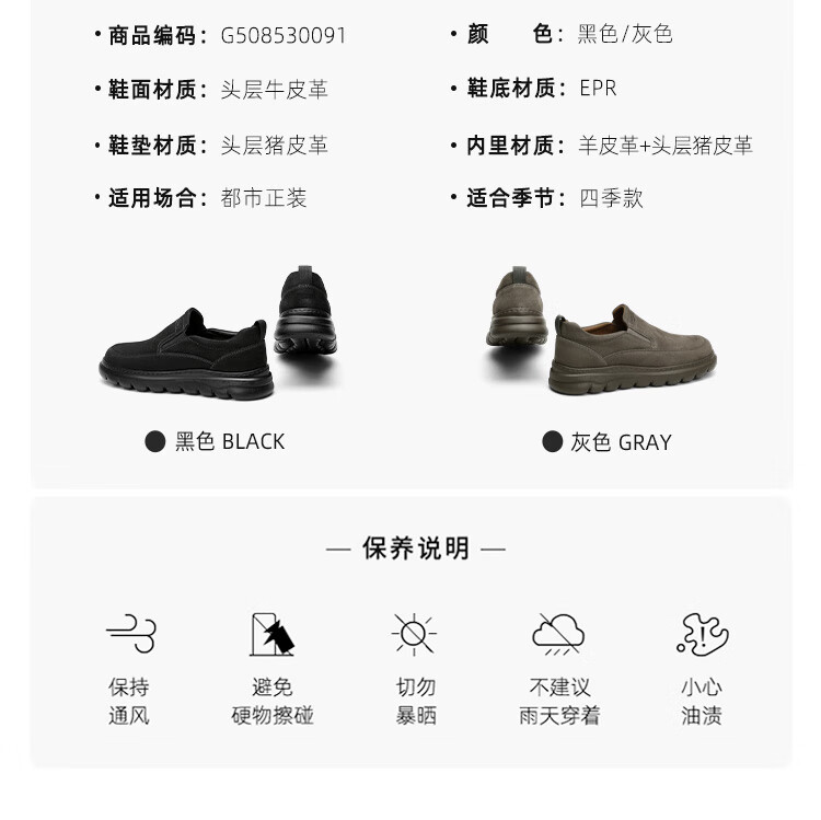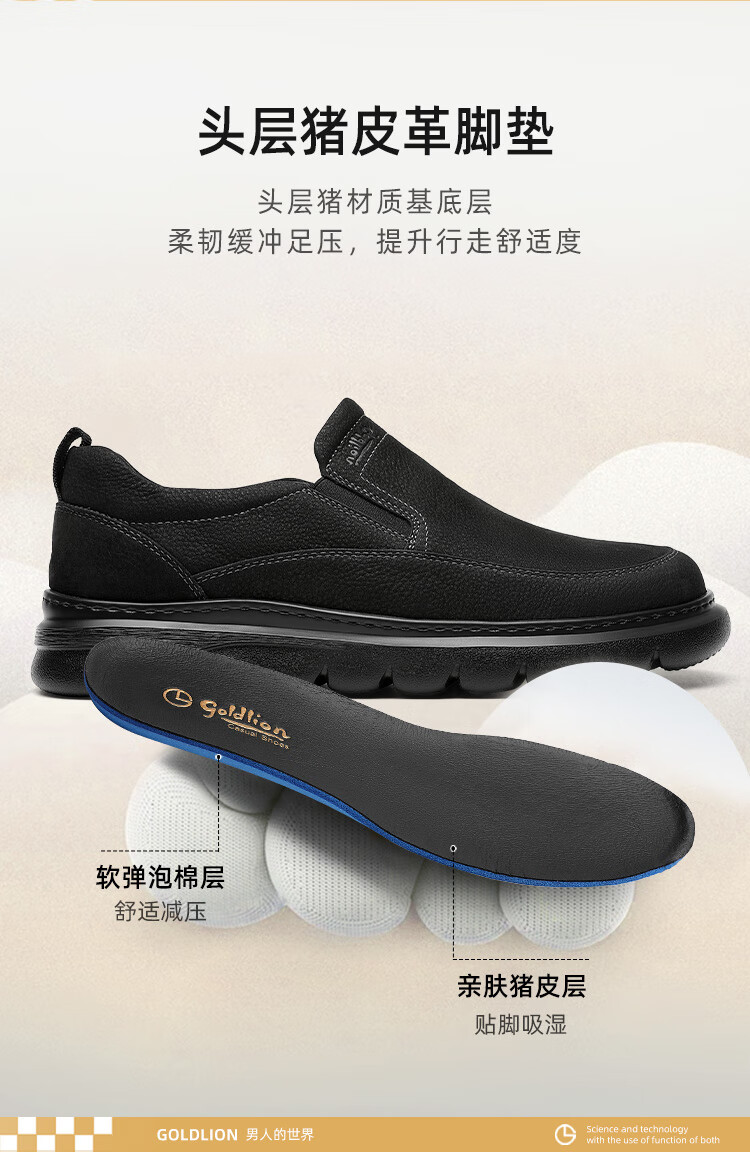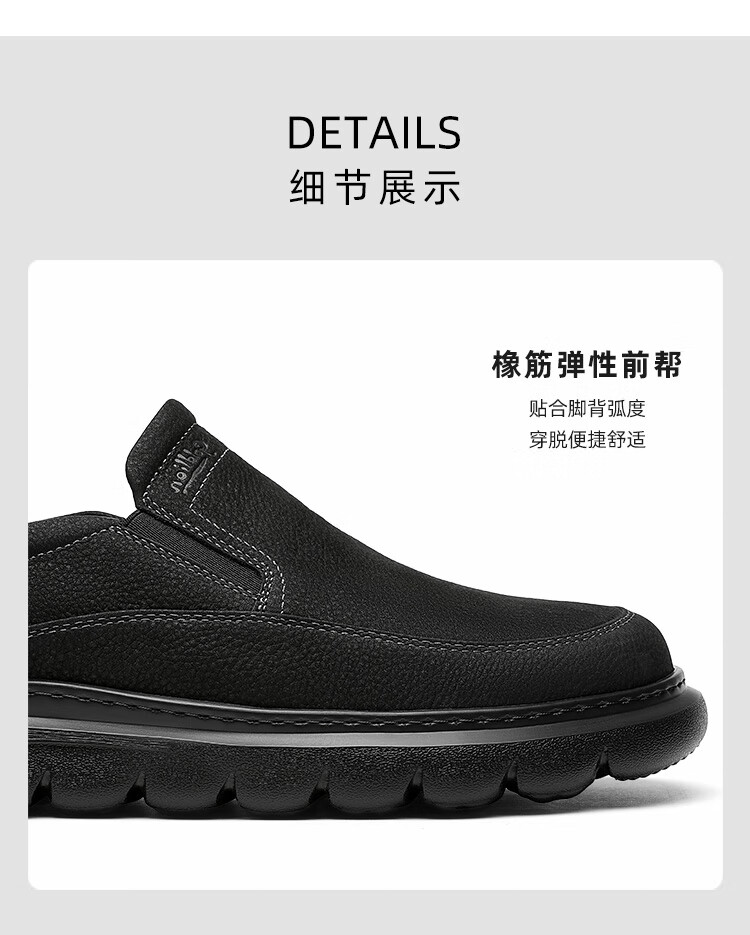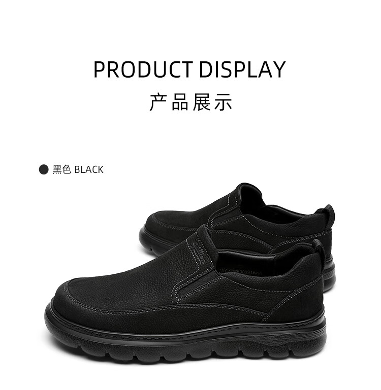 金利来(Goldlion)男鞋25年秋新品商务通勤磨砂牛皮套脚休闲鞋G508530091AAA黑色42