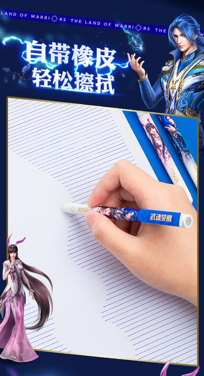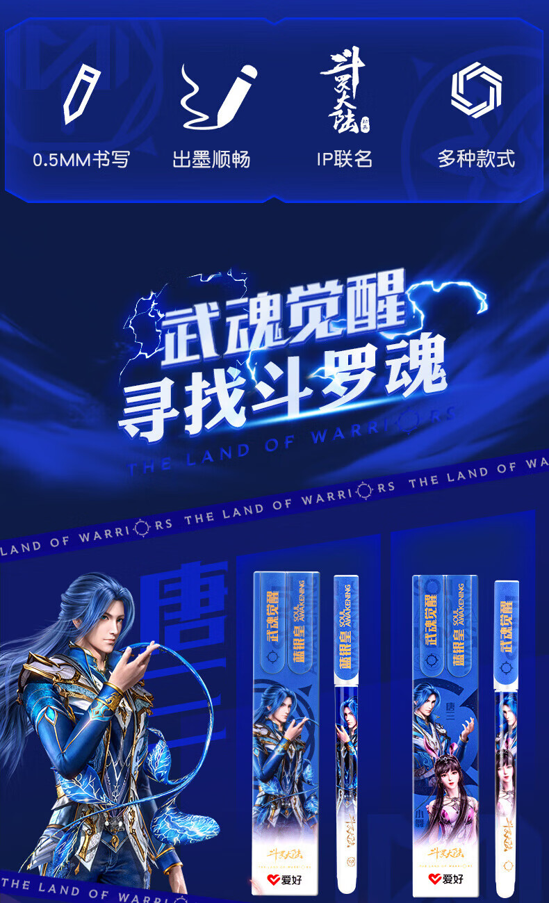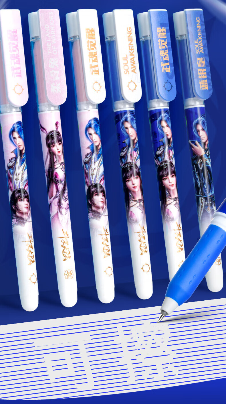 爱好(AIHAO)斗罗大陆可擦中性笔0.5mm全针管小学生刷题笔高颜值热可擦笔晶蓝色中性笔 【可擦晶蓝】每款各1盒共5盒10支