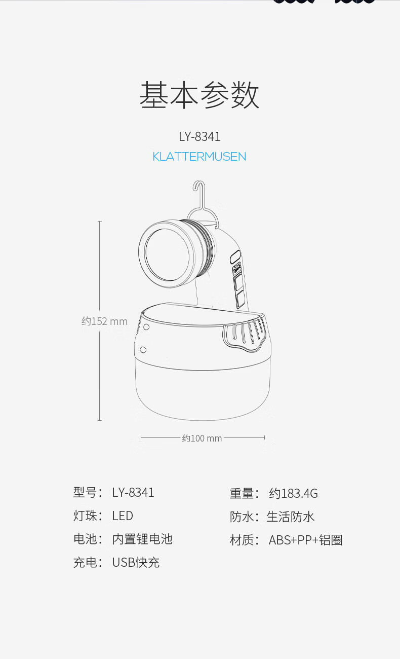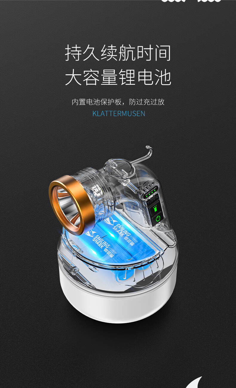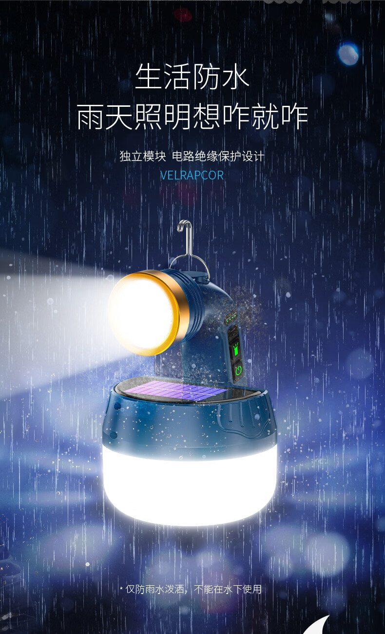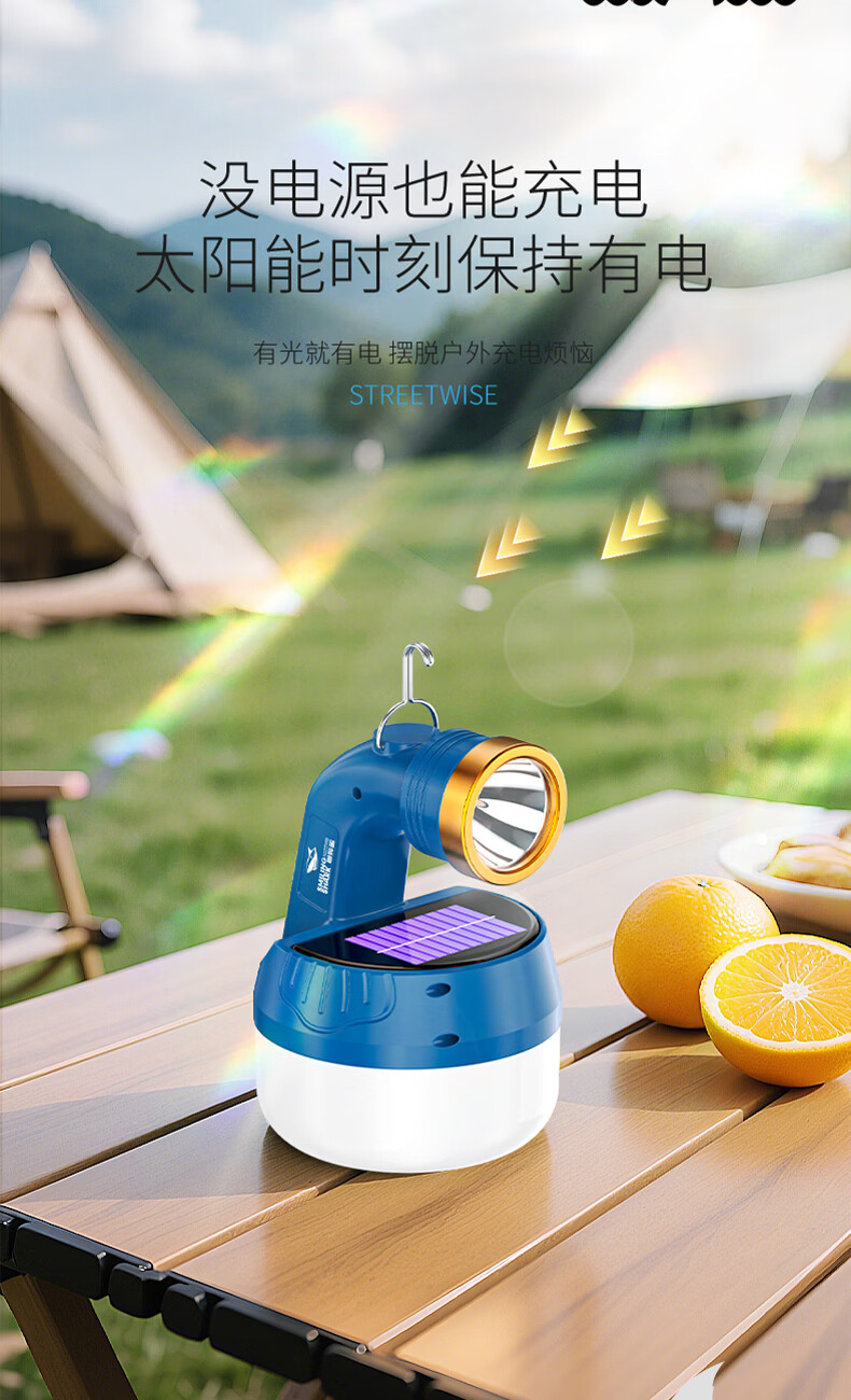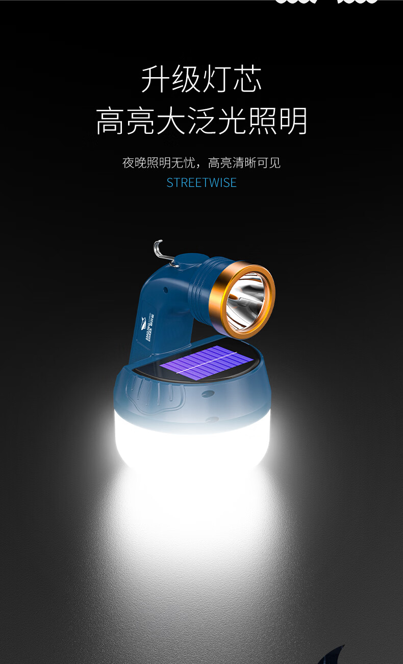 微笑鲨太阳能充电露营灯强光手提户外超亮长续航营地摆摊便携帐篷照明灯 可太阳能充电【蓝色款】泛光照明+挂钩