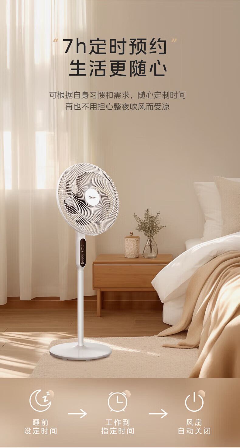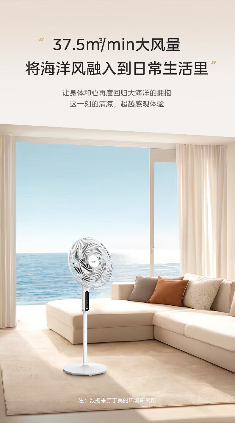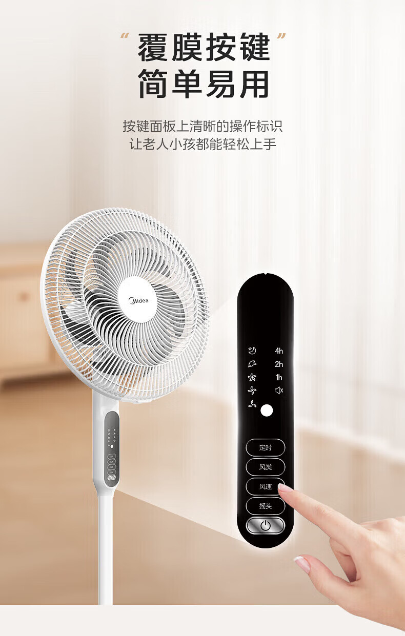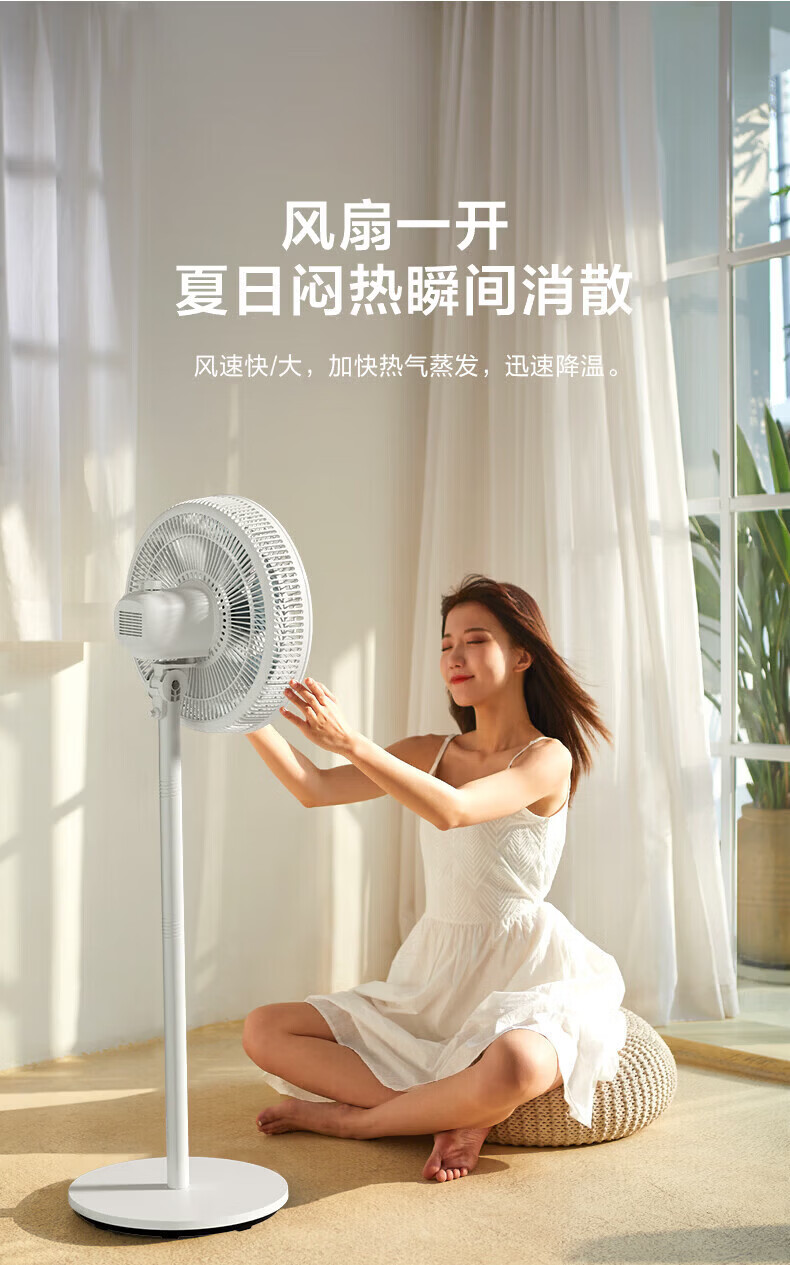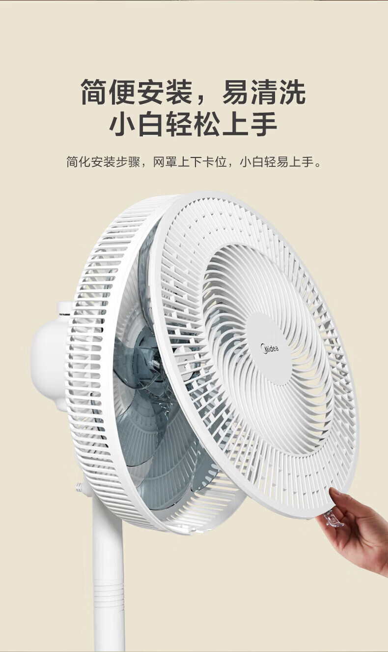 美的(Midea)落地扇电风扇家用立式超静音节能大风量强风电扇宿舍降温循环柔风自然风桌面台扇办公室卧室 白色【风大音轻 台地两用】