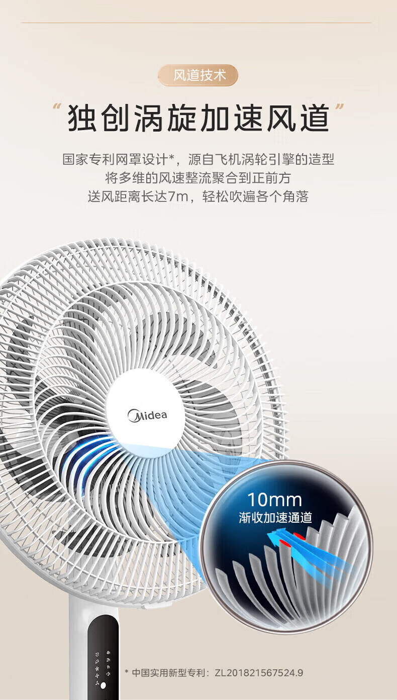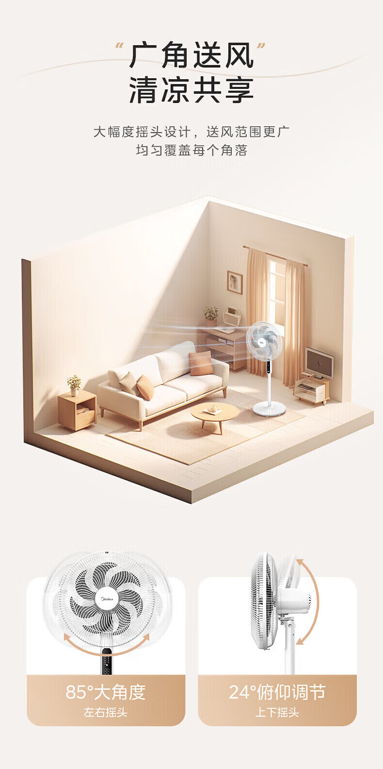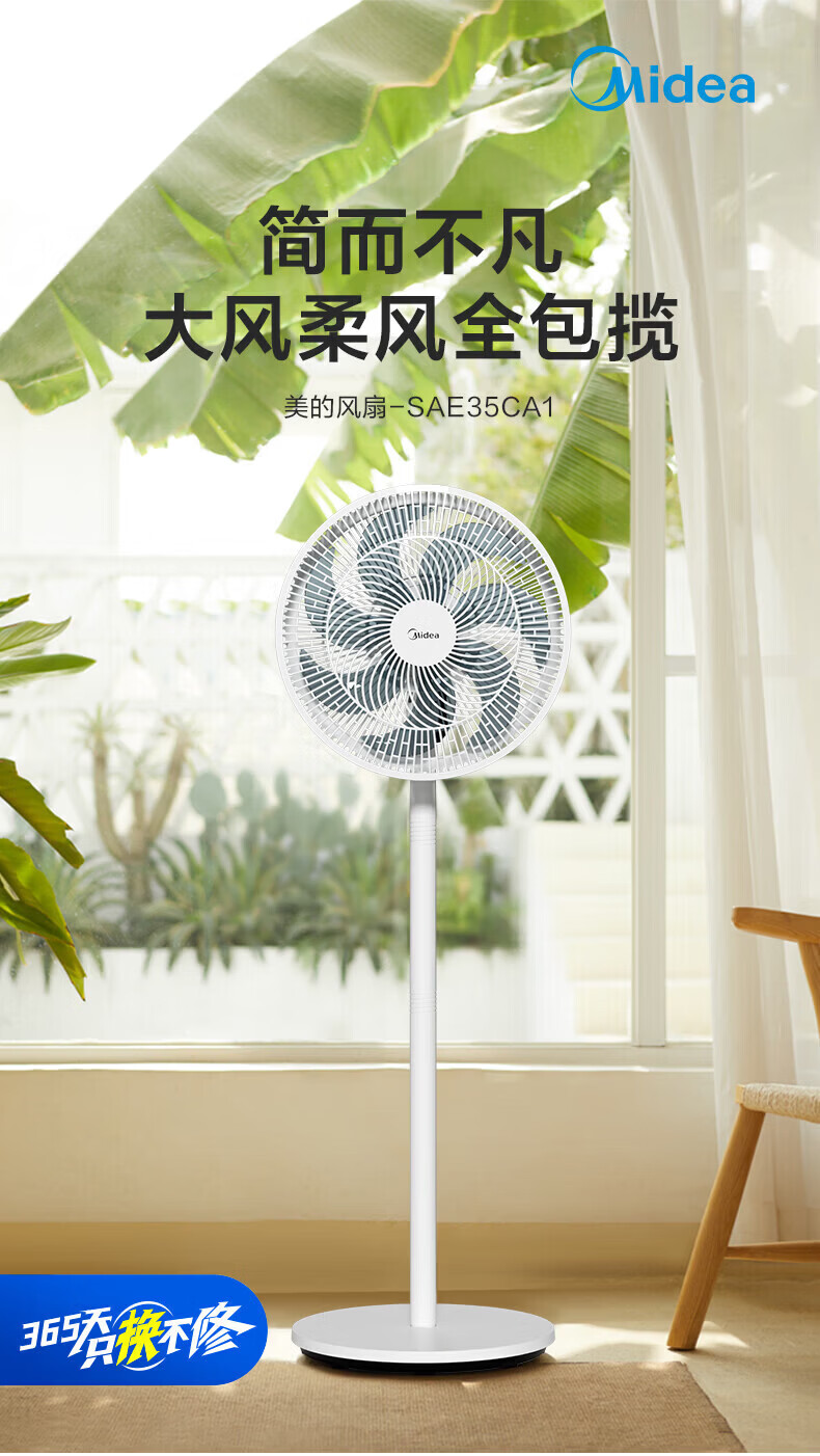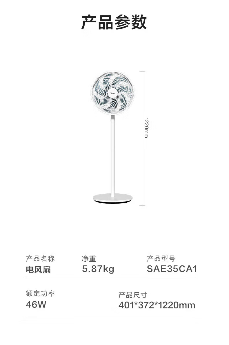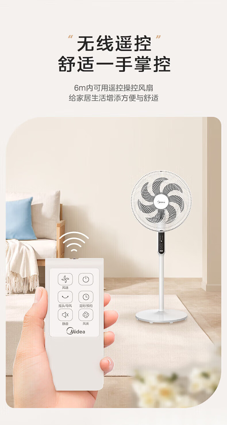 美的(Midea)落地扇电风扇家用立式超静音节能大风量强风电扇宿舍降温循环柔风自然风桌面台扇办公室卧室 白色【风大音轻 台地两用】