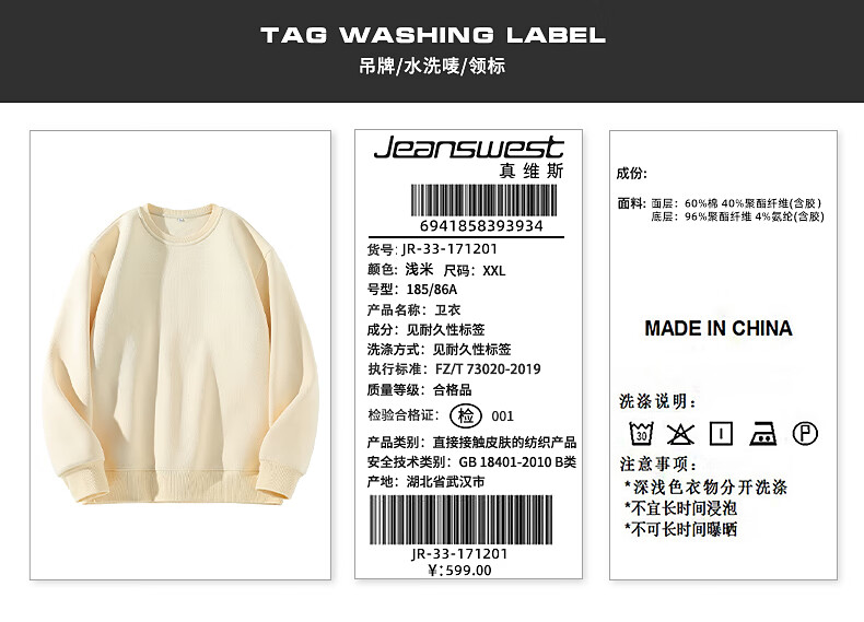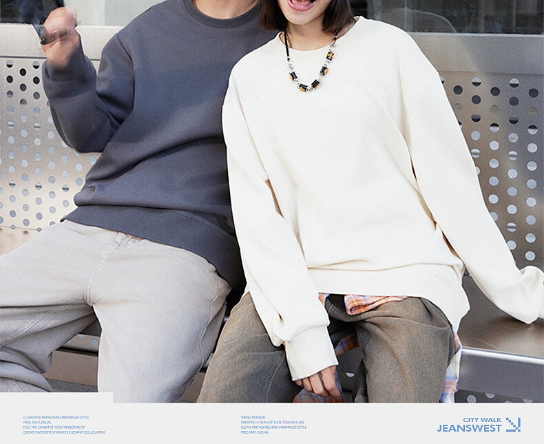 真维斯(Jeanswest)男士卫衣2025秋季新款青少年休闲时尚重磅款圆领无帽纯色薄外套 浅米#ZS纯色 M