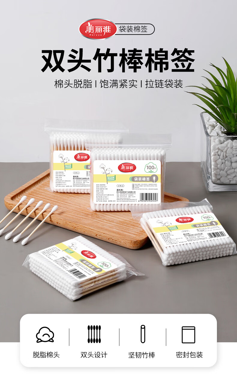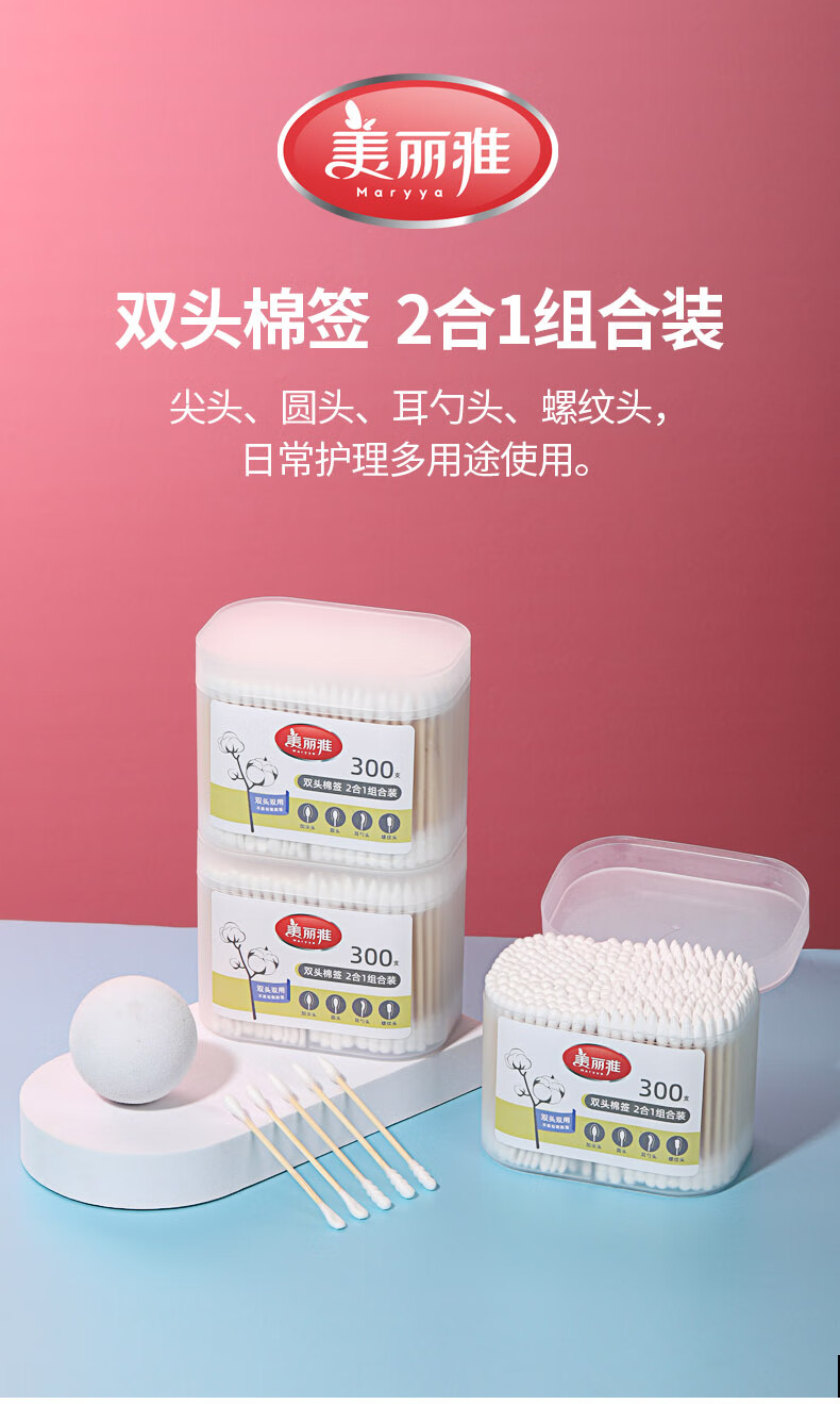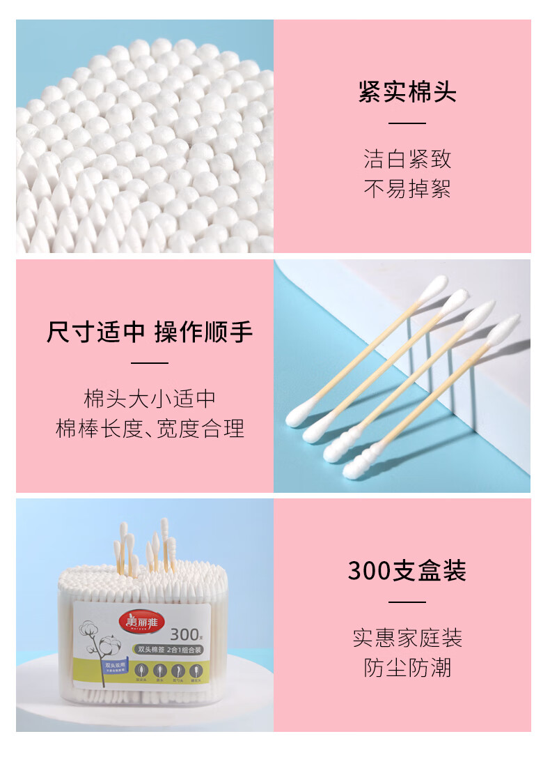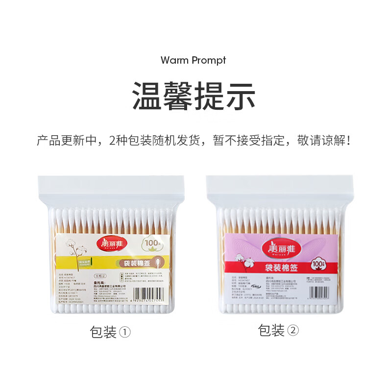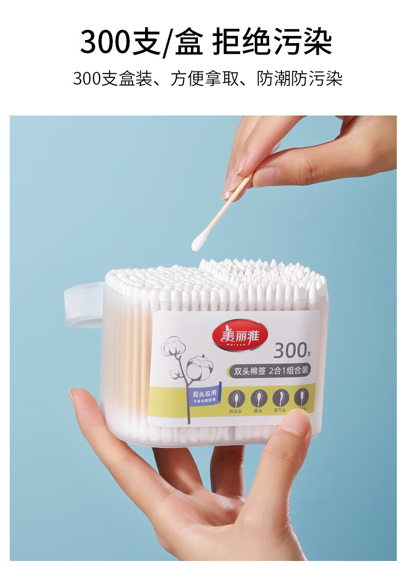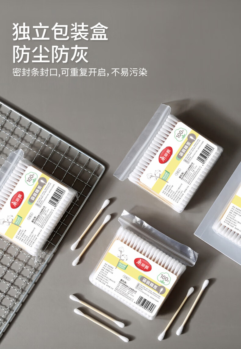 美丽雅一次性用品多功能清洁双头棉签化妆卸妆用棉签棒 【组合装】抗菌保鲜罩300只+棉签100只