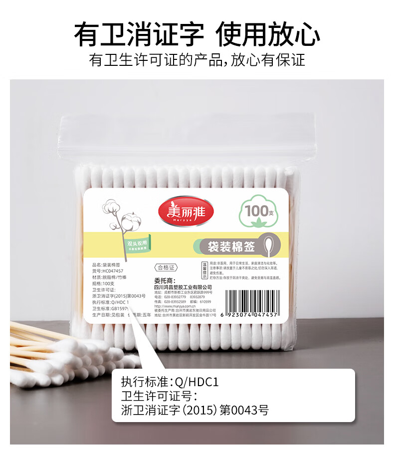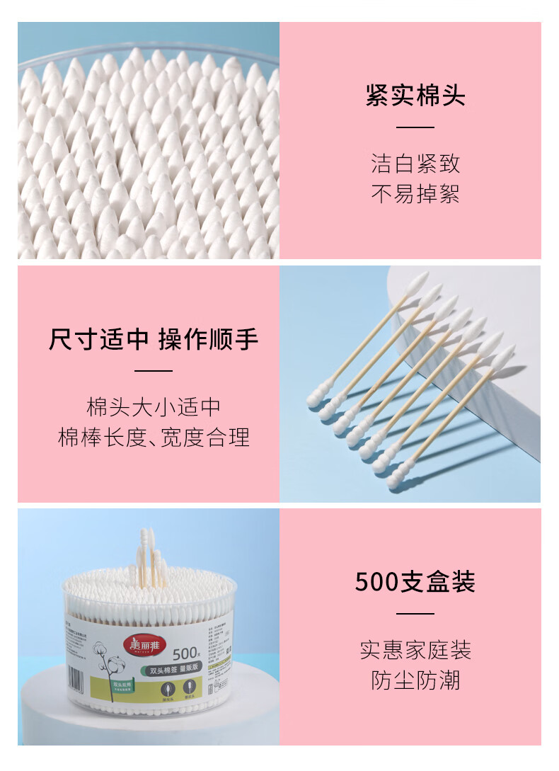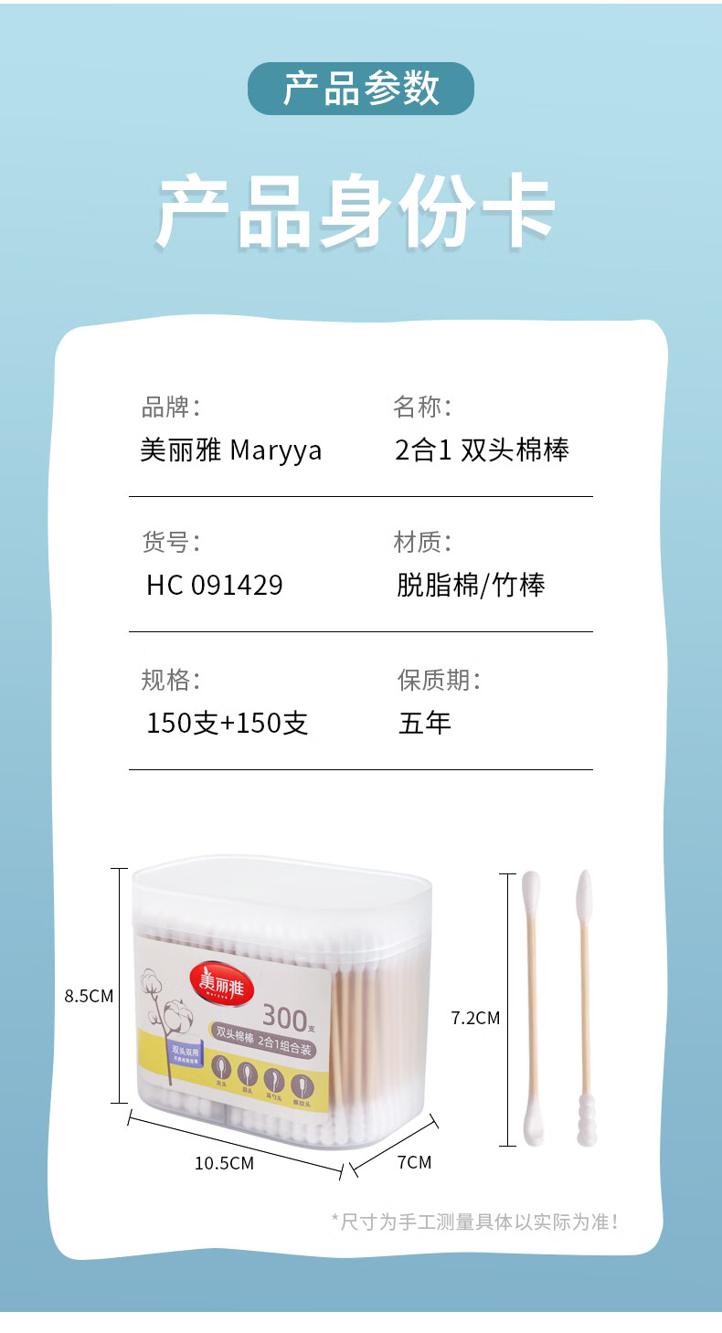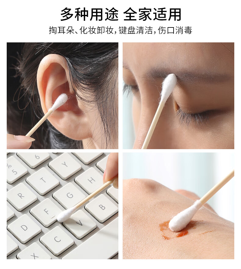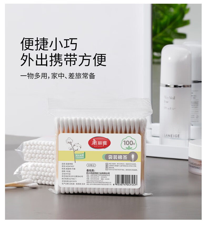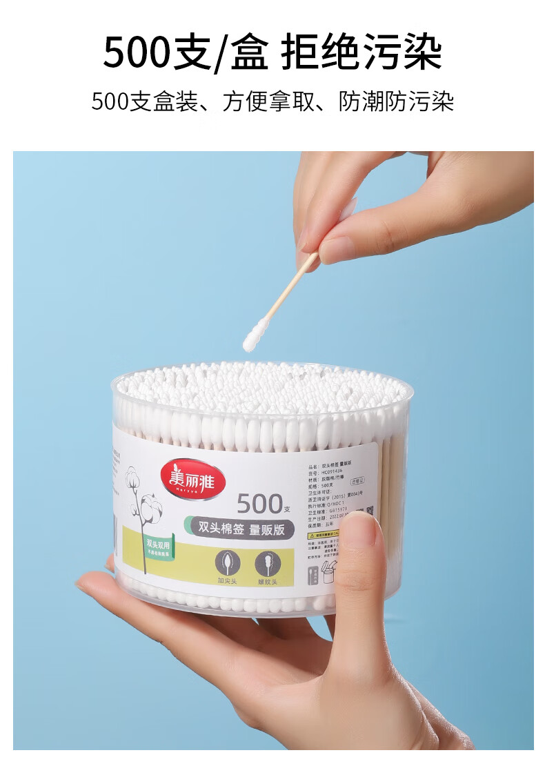美丽雅一次性用品多功能清洁双头棉签化妆卸妆用棉签棒 【组合装】抗菌保鲜罩300只+棉签100只