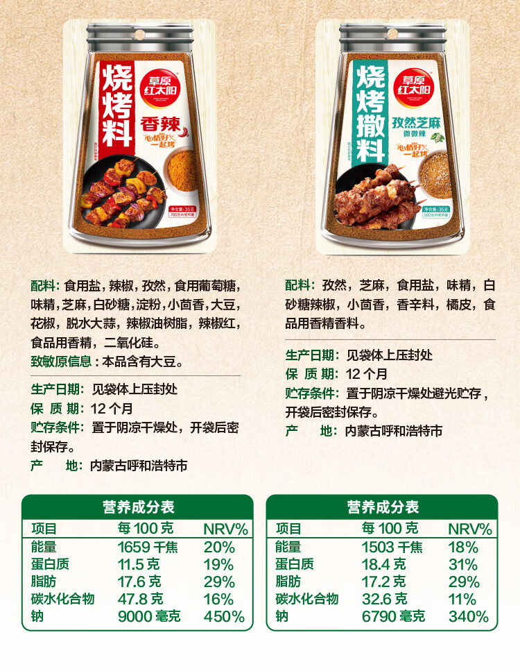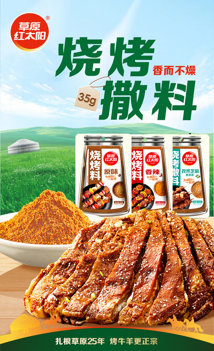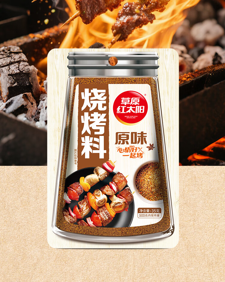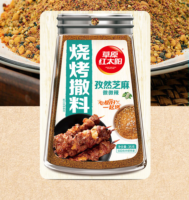 草原红太阳烧烤调料 家用烧烤料户外烤肉料烧烤撒料酱料火锅蘸料辣椒孜然35g 原味烧烤料*6袋